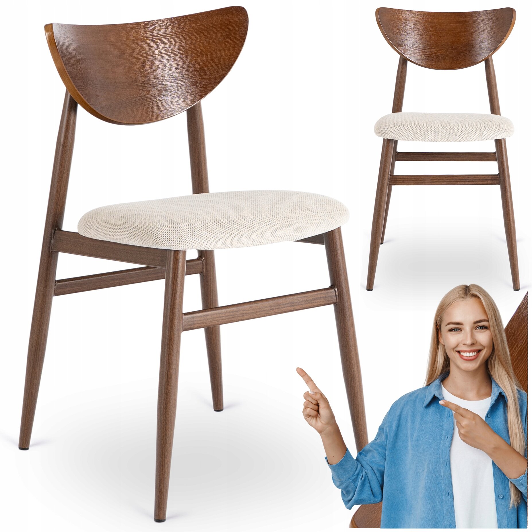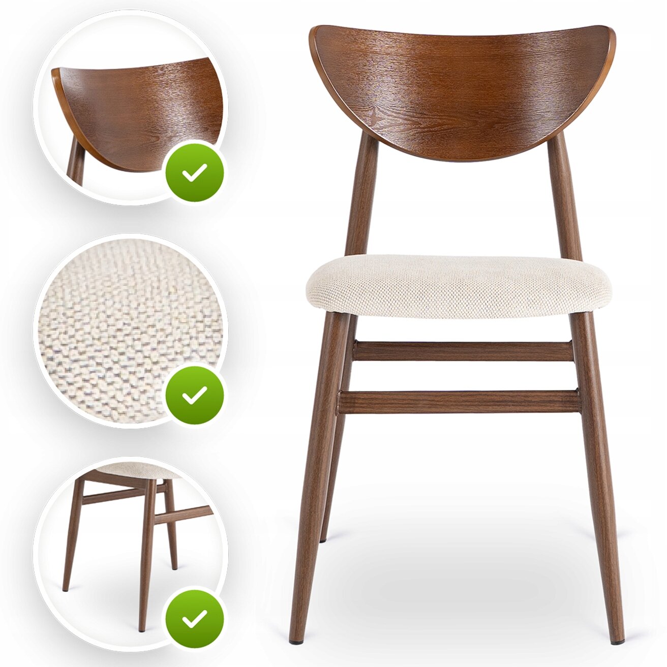 Krzesło Gięte Tapicerowane Do Kuchni Salonu Jadalni Kremowe Orzech BRAGA