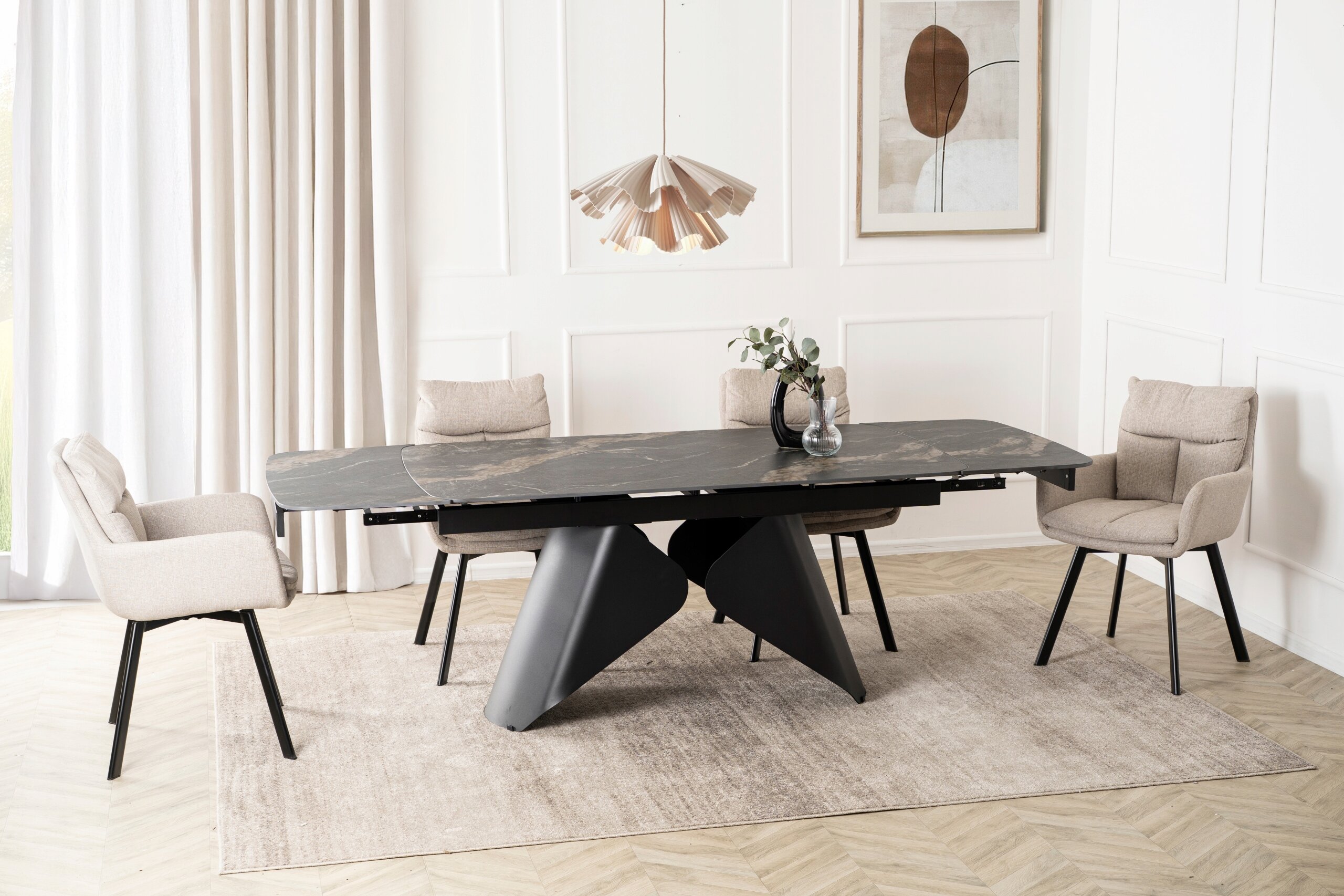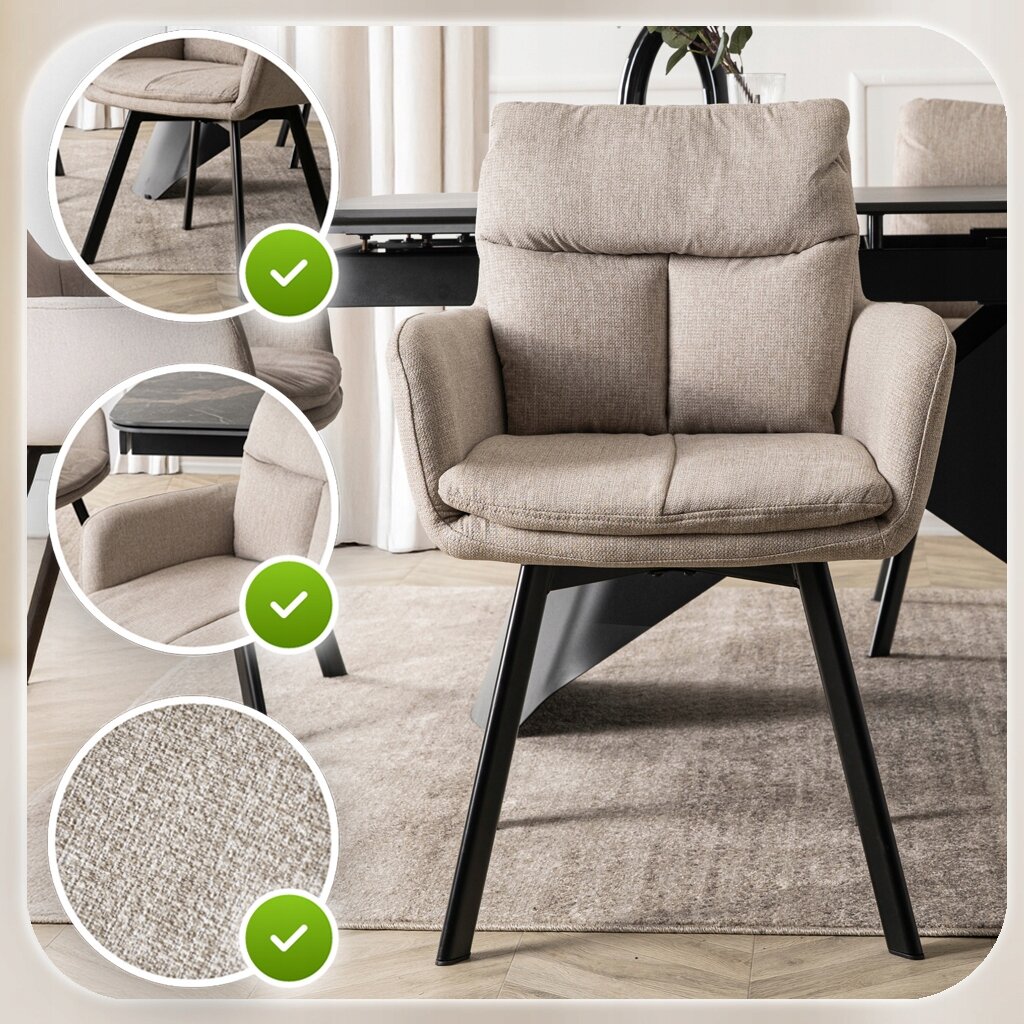 Tak – uniwersalny design i beżowa tapicerka sprawiają, że świetnie prezentuje się nie tylko w jadalni, ale także w biurze, salonie czy pokoju gościnnym.