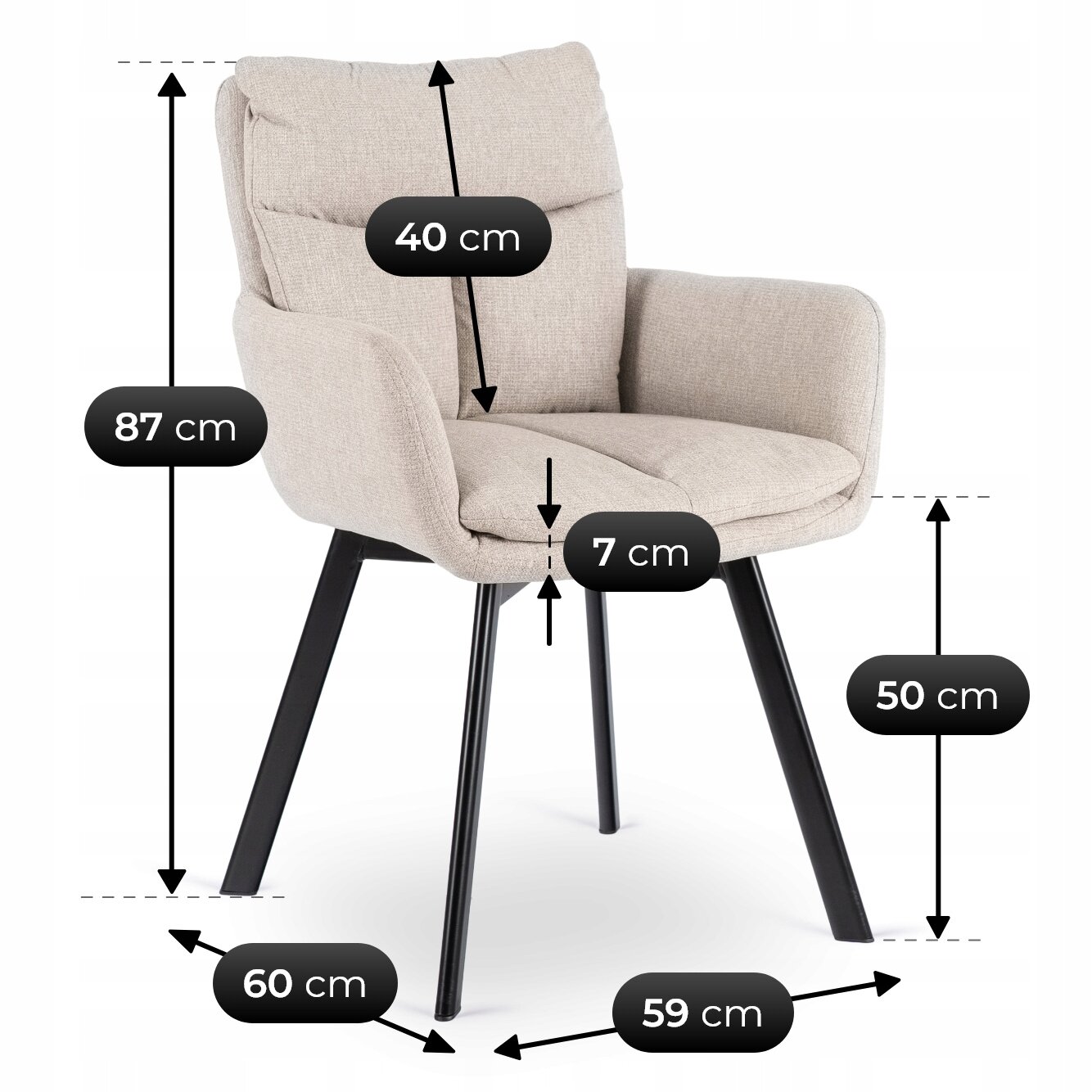 - Wysokość krzesła: 87 cm