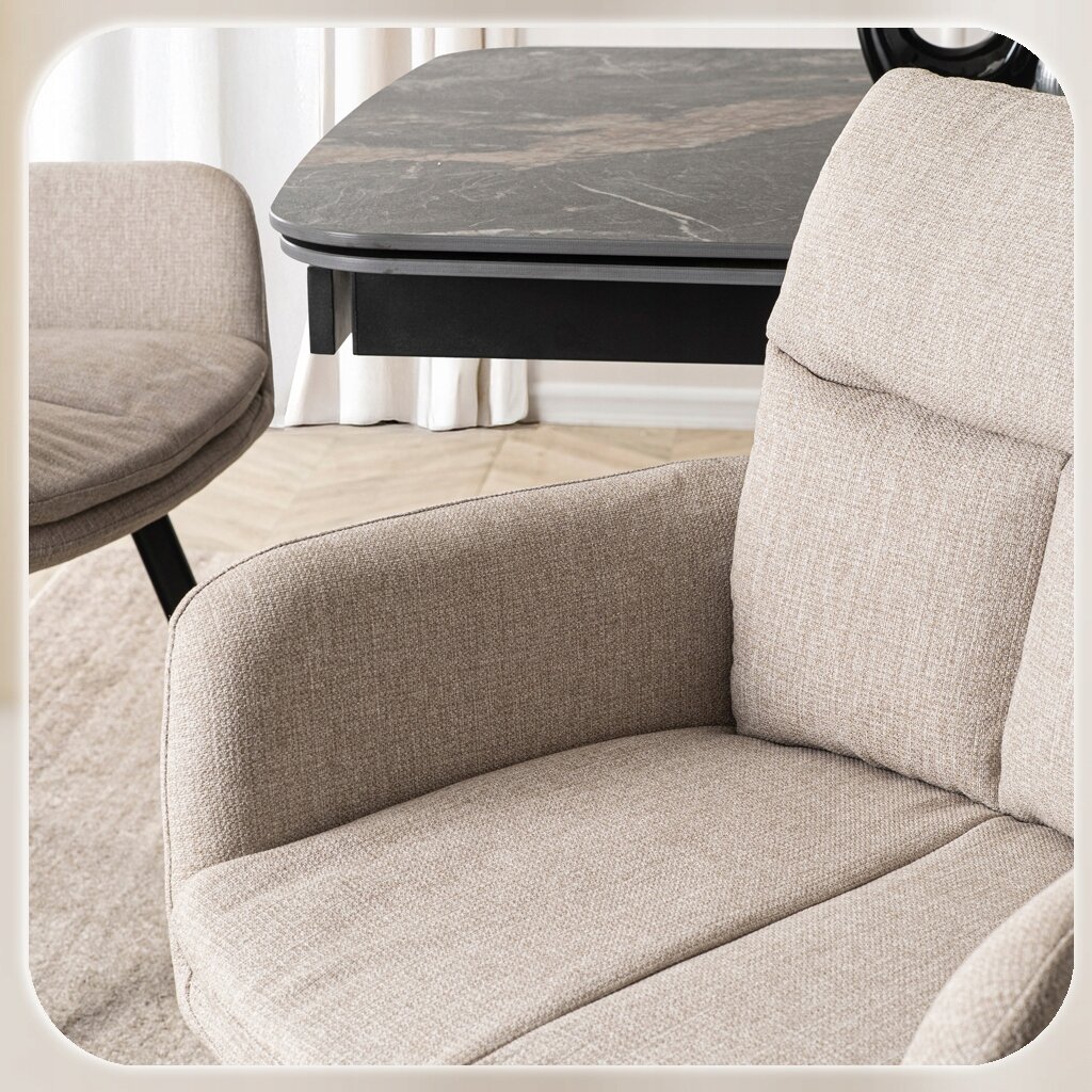 Krzesło Cortado w kolorze beżowym to elegancka propozycja łącząca nowoczesny design i komfort. Miękkie siedzisko, wyprofilowane oparcie z przeszyciami oraz funkcja obrotu 90° zapewniają wygodę i praktyczność. Idealne do jadalni, kuchni, salonu oraz przestrzeni komercyjnych.