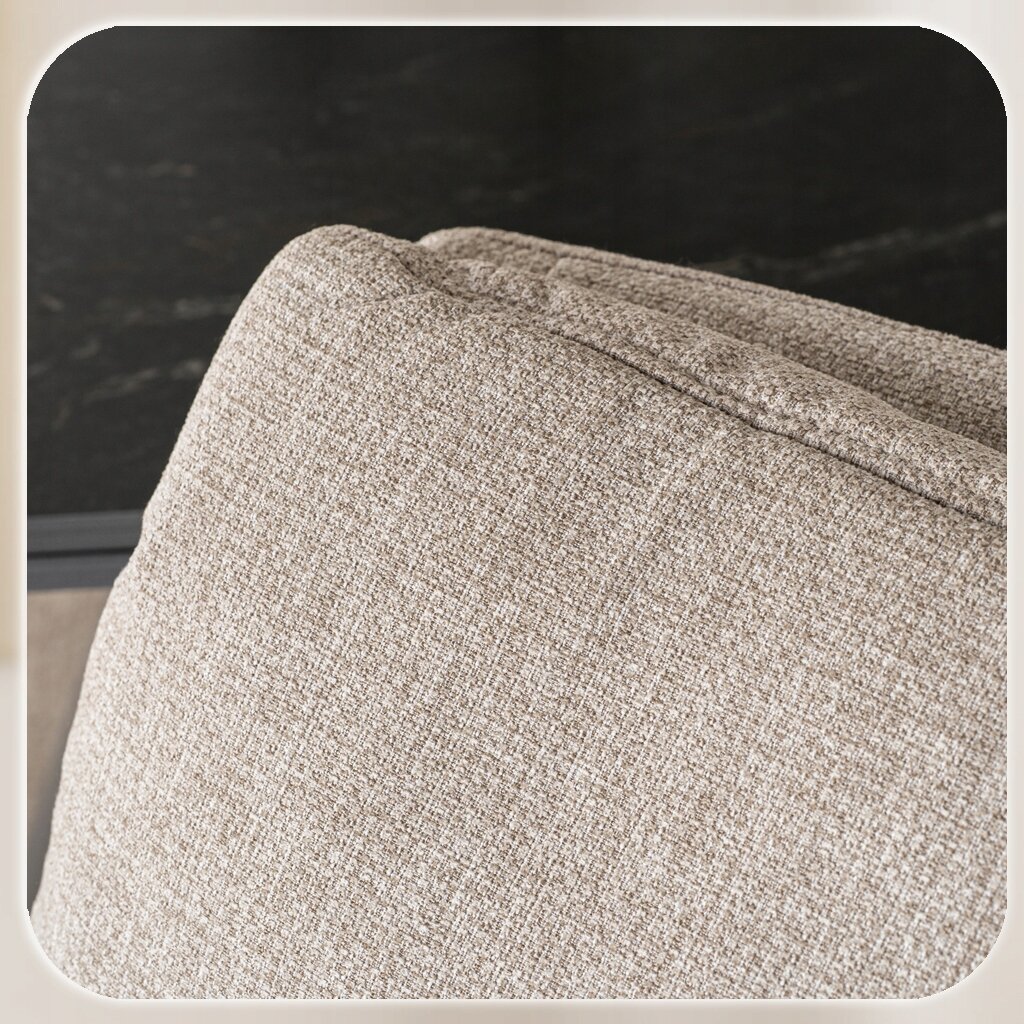 - Wysokiej jakości tkanina tapicerska – przyjemna w dotyku, trwała i łatwa w utrzymaniu czystości.