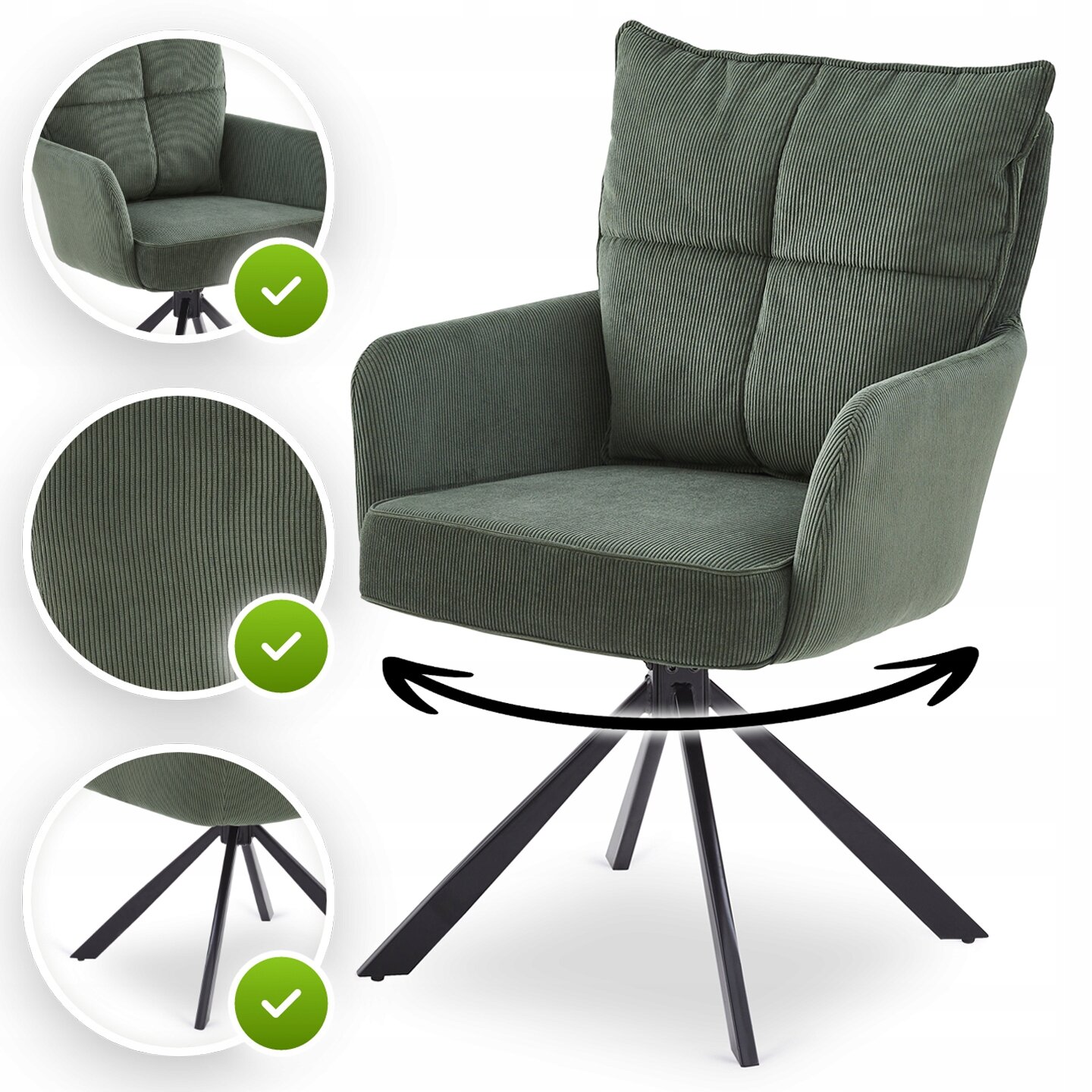 ✨ Krzesło Obrotowe Kubełkowe Tapicerowane Do Jadalni Sztruks Zielony CITY