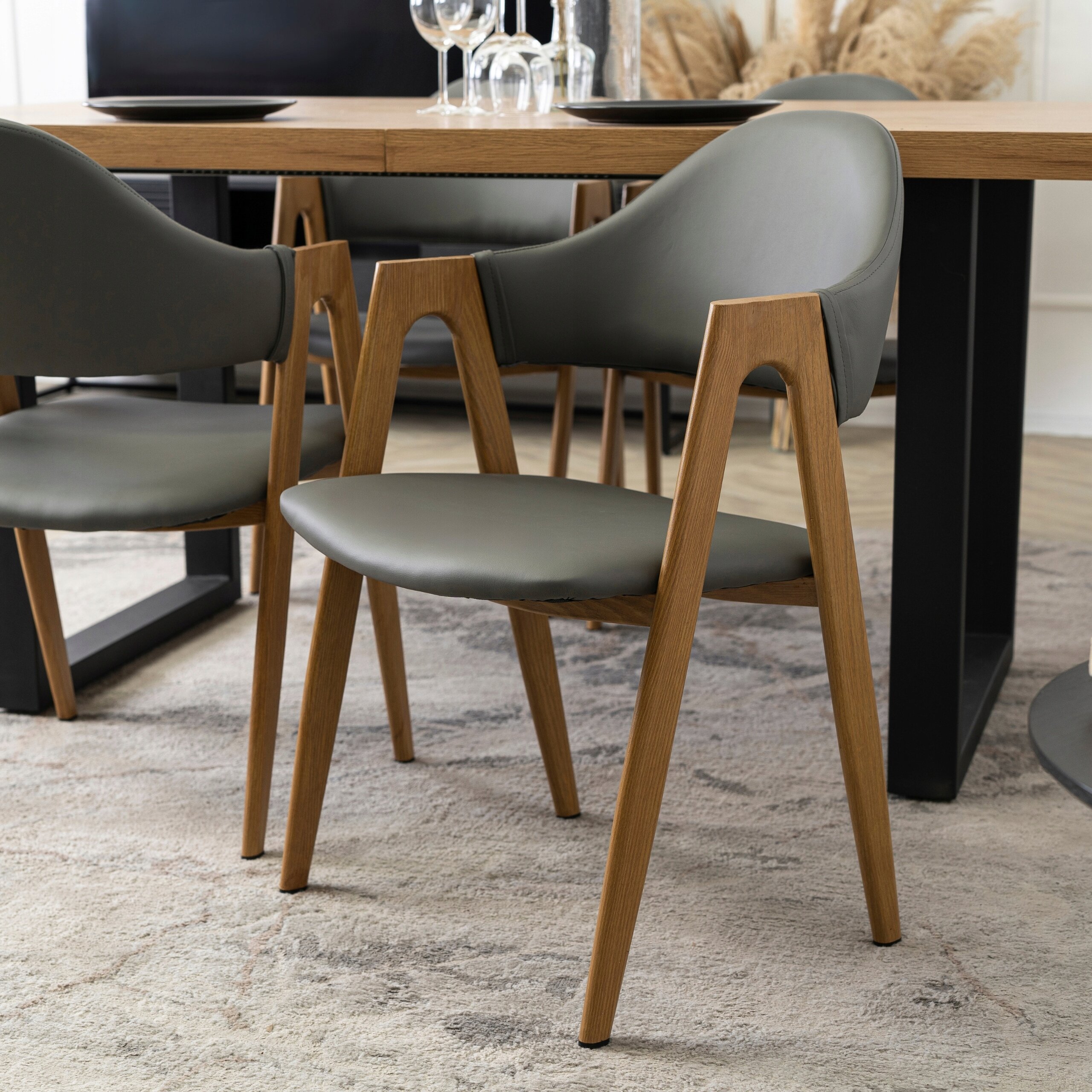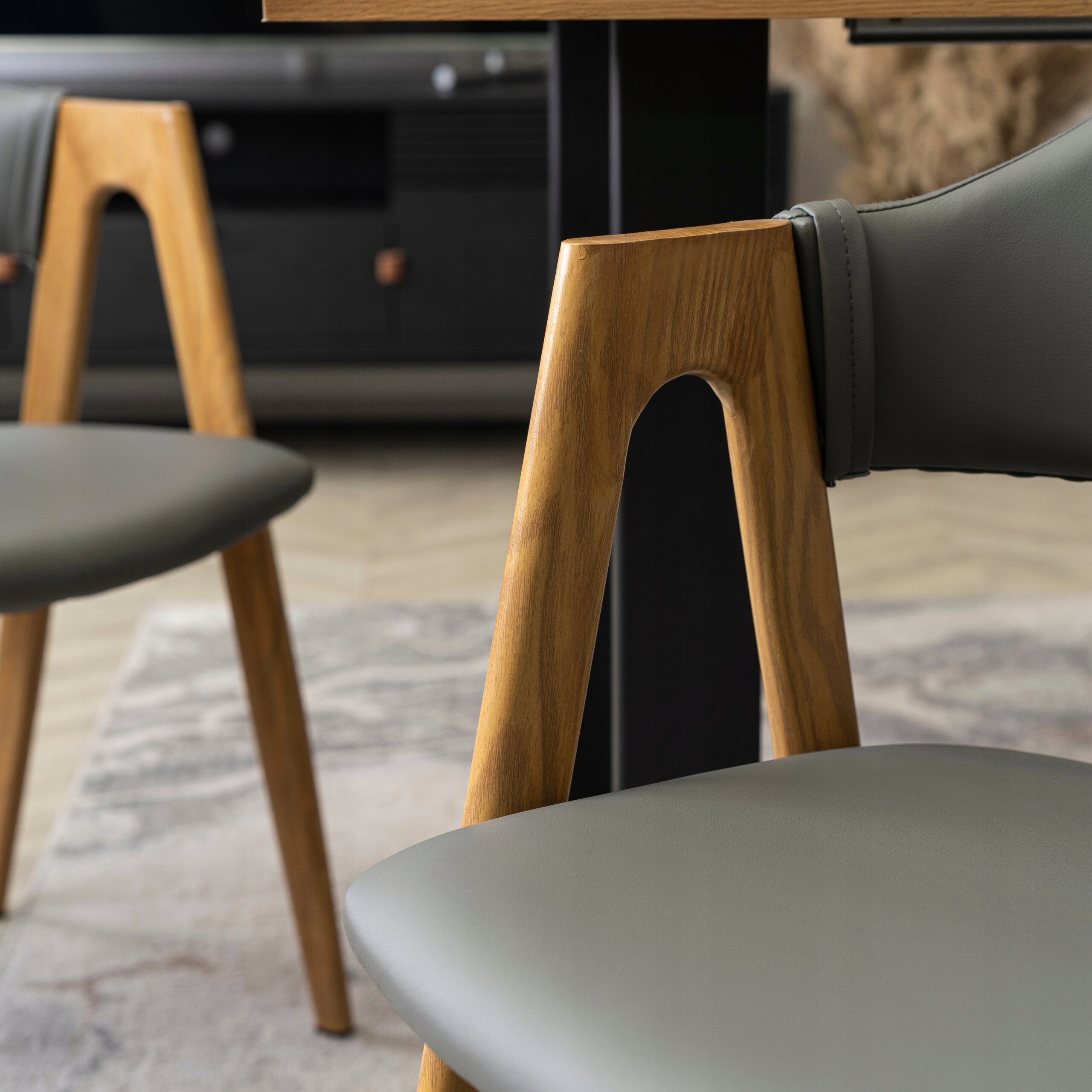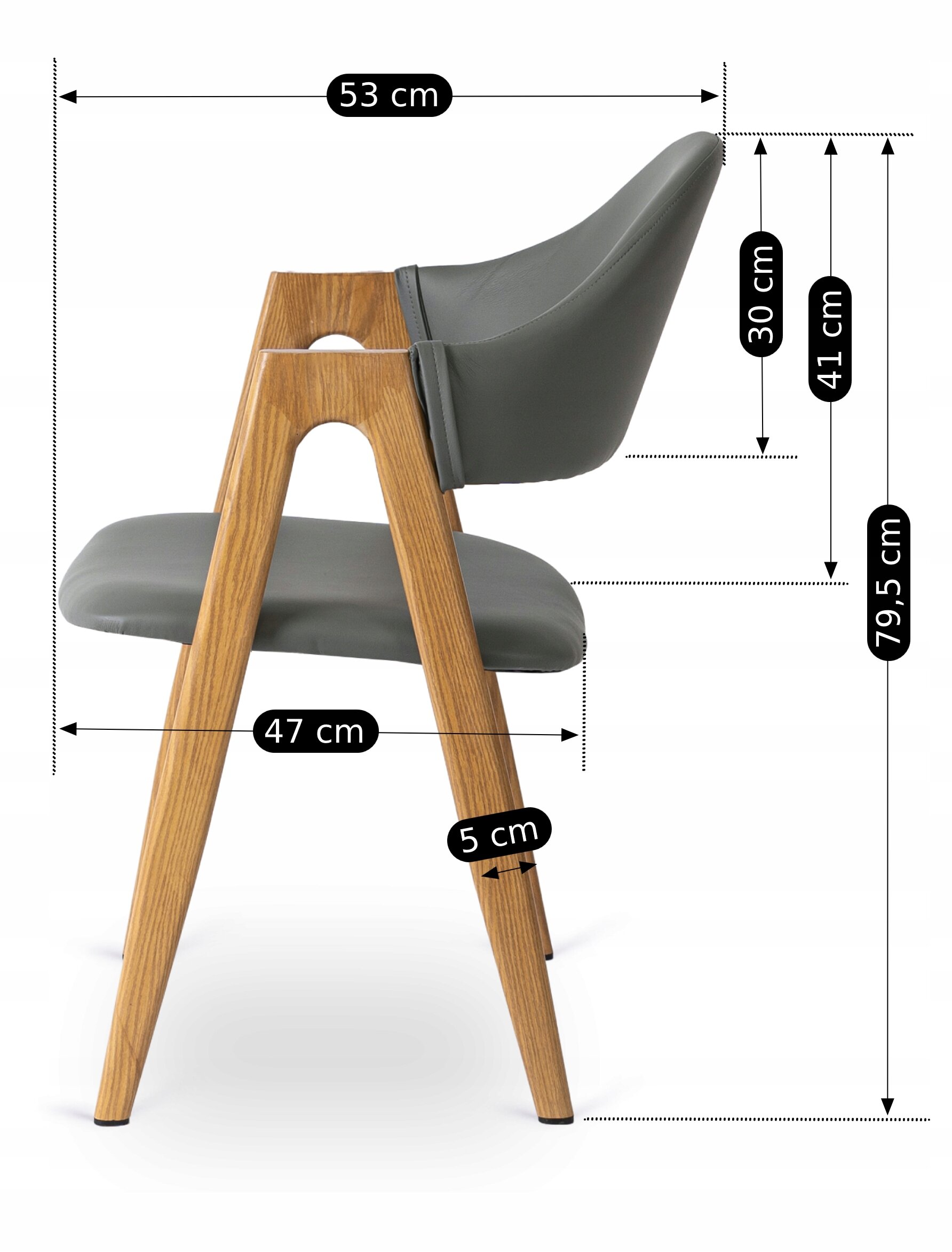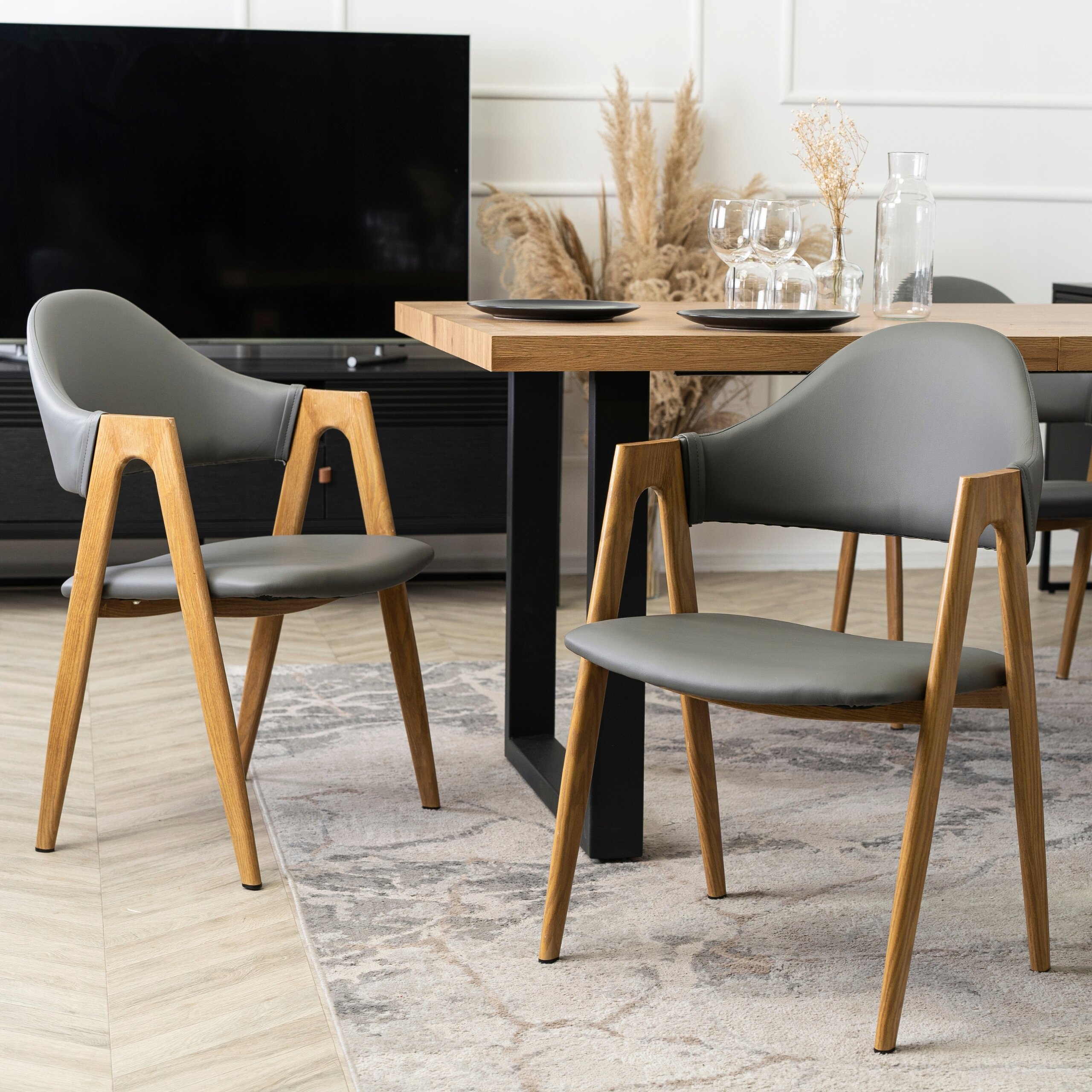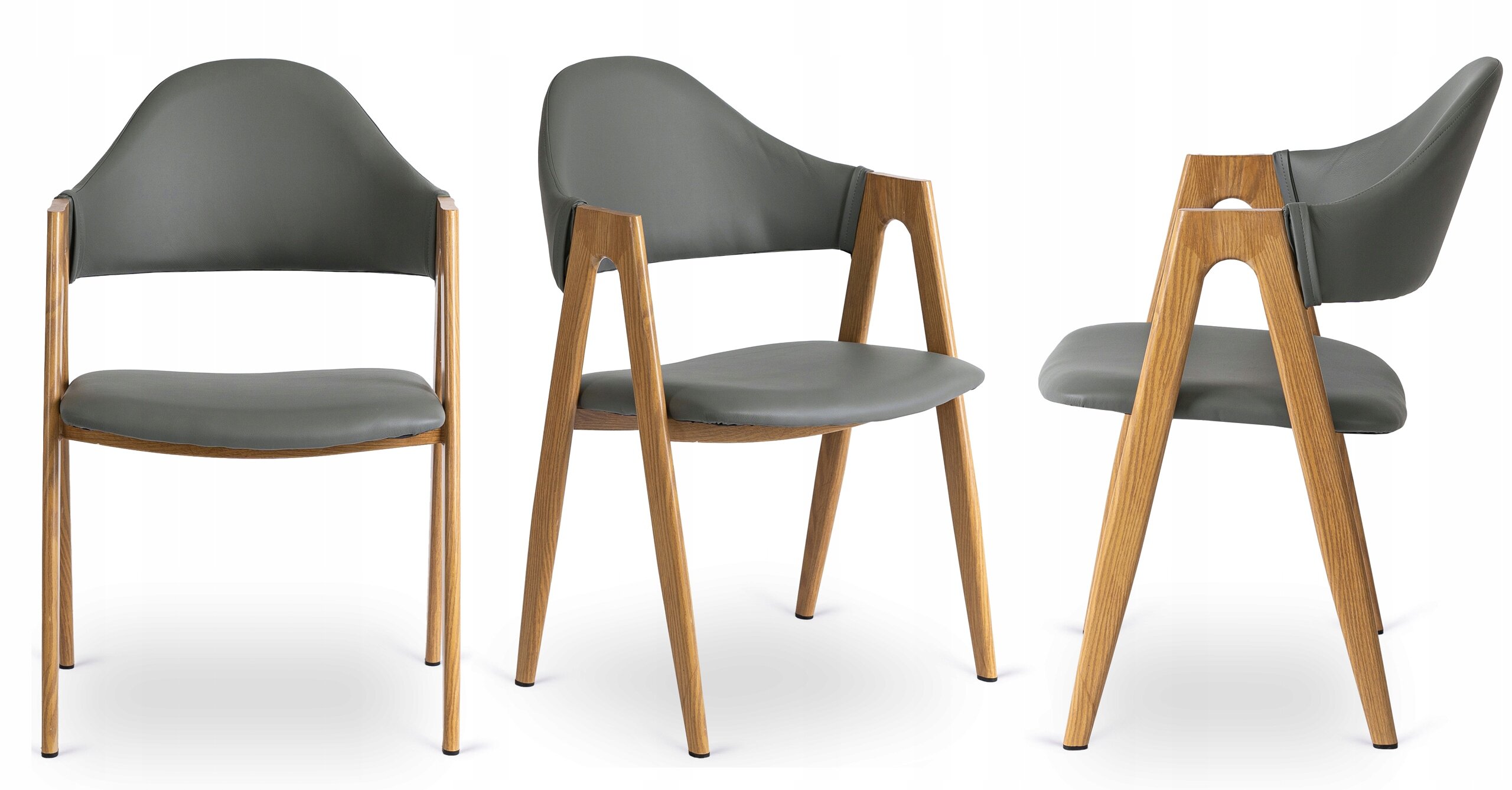 Krzesło Skandynawskie Tapicerowane Z Eko Skóry Do Jadalni Szare Dąb WILLY