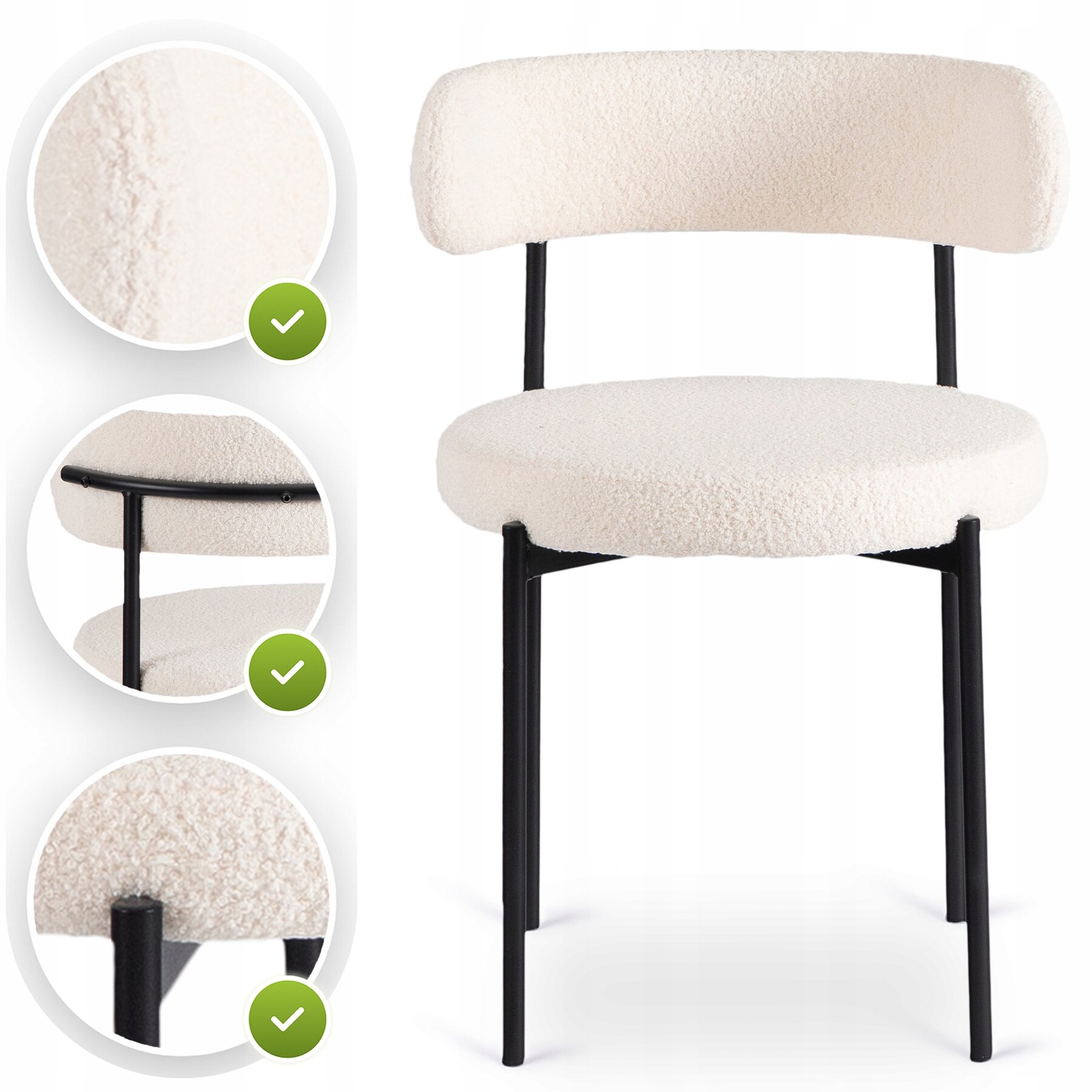 Tak – uniwersalny design, połączenie kremowej tapicerki z tkaniny teddy i eleganckich nóg w kolorze czarnym sprawiają, że krzesło świetnie wygląda nie tylko w jadalni, ale także w salonie, biurze czy pokoju gościnnym.