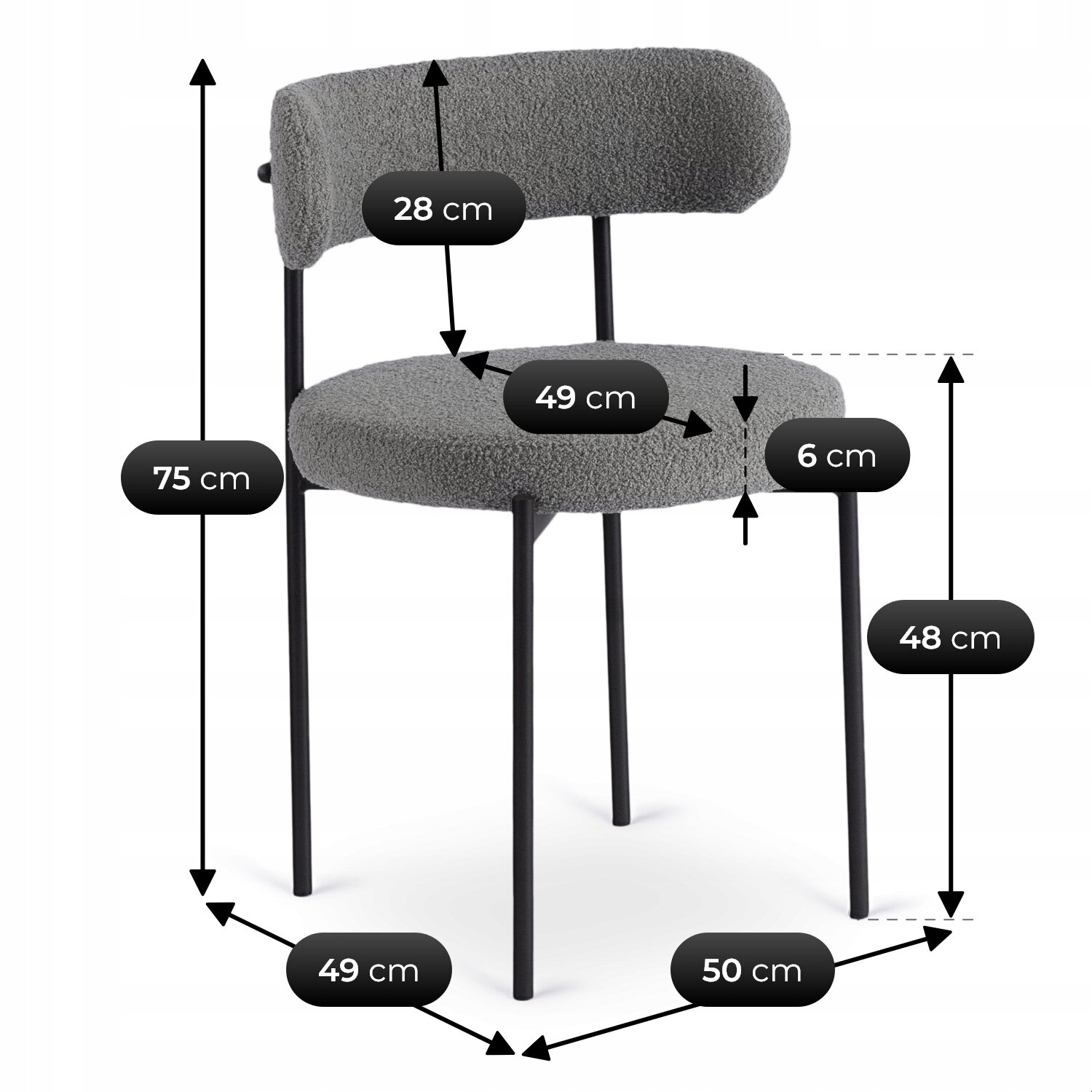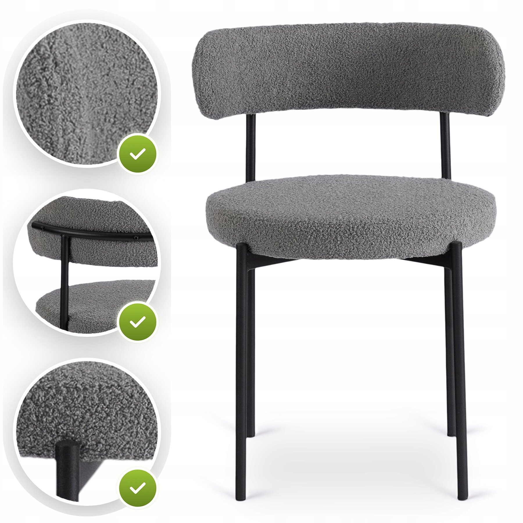 Tak – uniwersalny design, połączenie szarej tapicerki z tkaniny teddy i eleganckich nóg w kolorze czarnym sprawiają, że krzesło świetnie wygląda nie tylko w jadalni, ale także w salonie, biurze czy pokoju gościnnym.