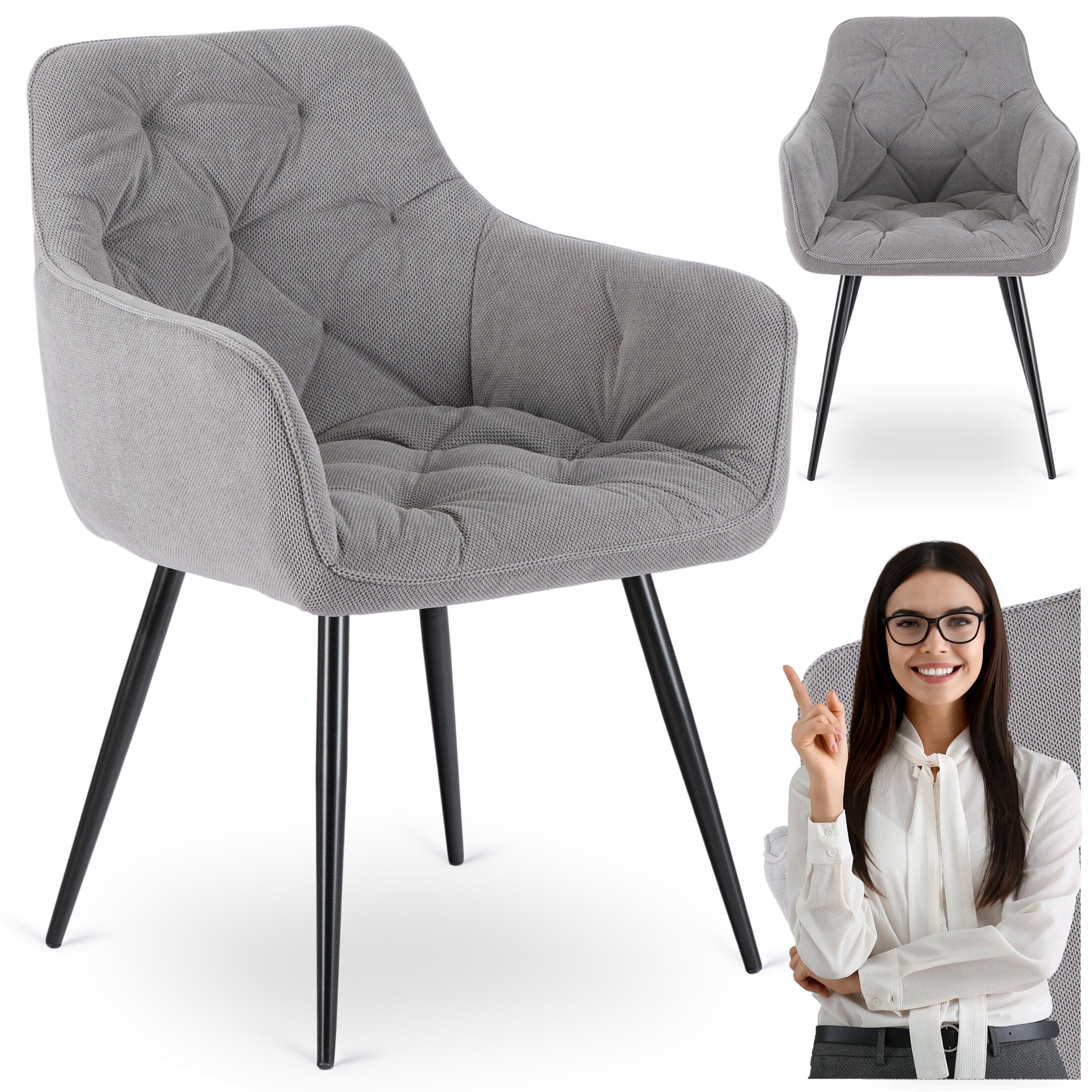 Krzesło MODESTO w kolorze szarym to połączenie elegancji i wygody, które idealnie dopełni wystrój nowoczesnych wnętrz. Miękkie siedzisko tapicerowane tkaniną oraz wyprofilowane oparcie z podłokietnikami gwarantują komfort podczas codziennych posiłków i dłuższych spotkań przy stole.