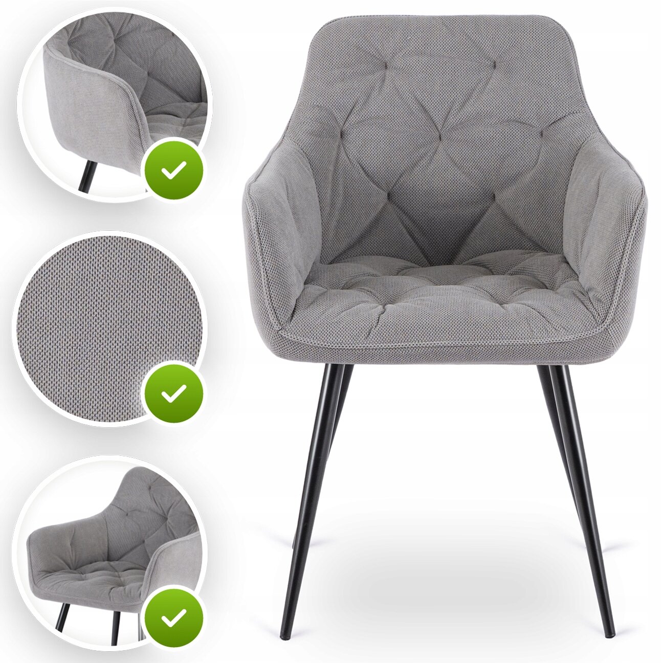 - Wysokiej jakości tkanina – szara tapicerka jest miękka, elegancka i odporna na codzienne użytkowanie, co sprawia, że krzesło przez długi czas zachowuje swój świetny wygląd.