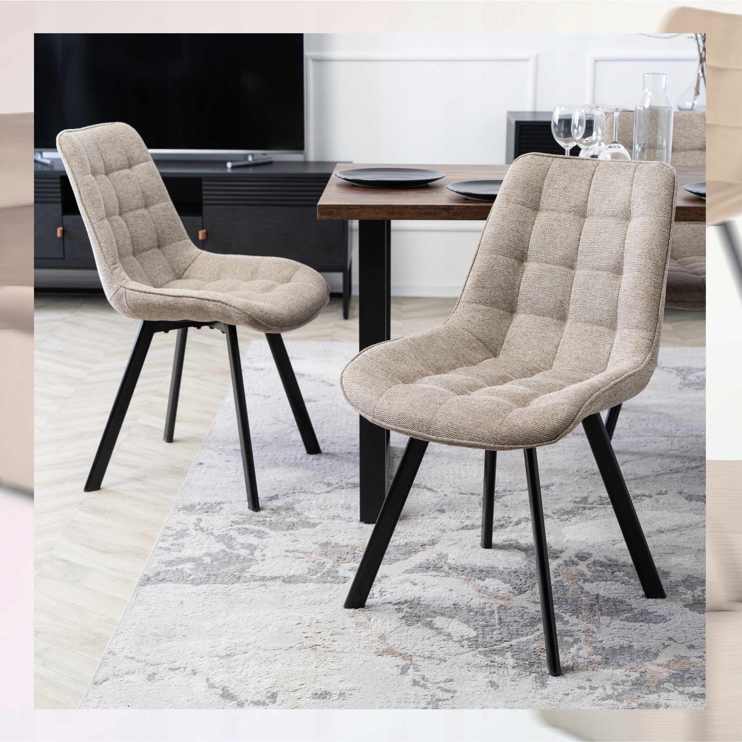 Krzesło Tapicerowane Do Jadalni Kuchni Salonu Loft Pikowane Beżowe RICK 2