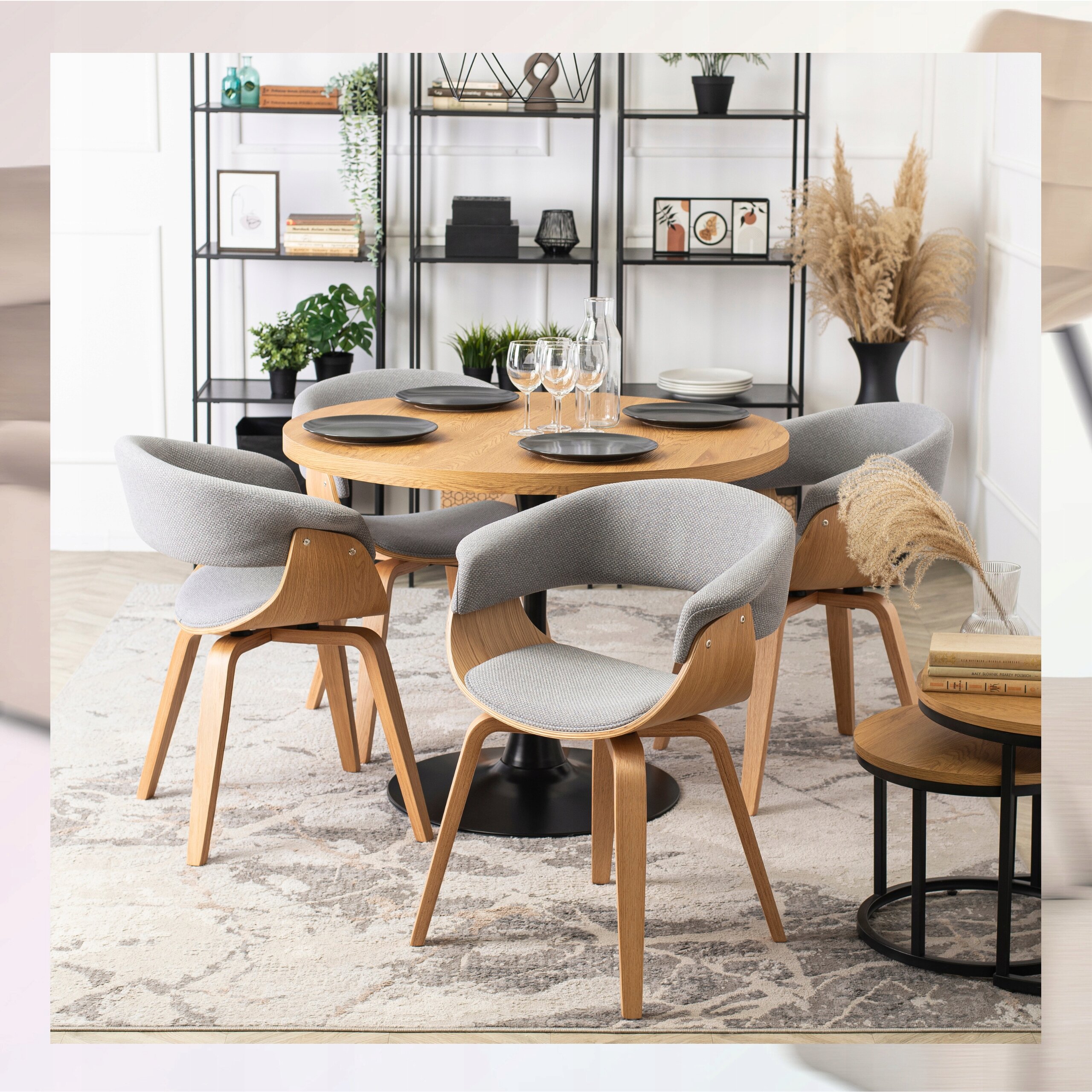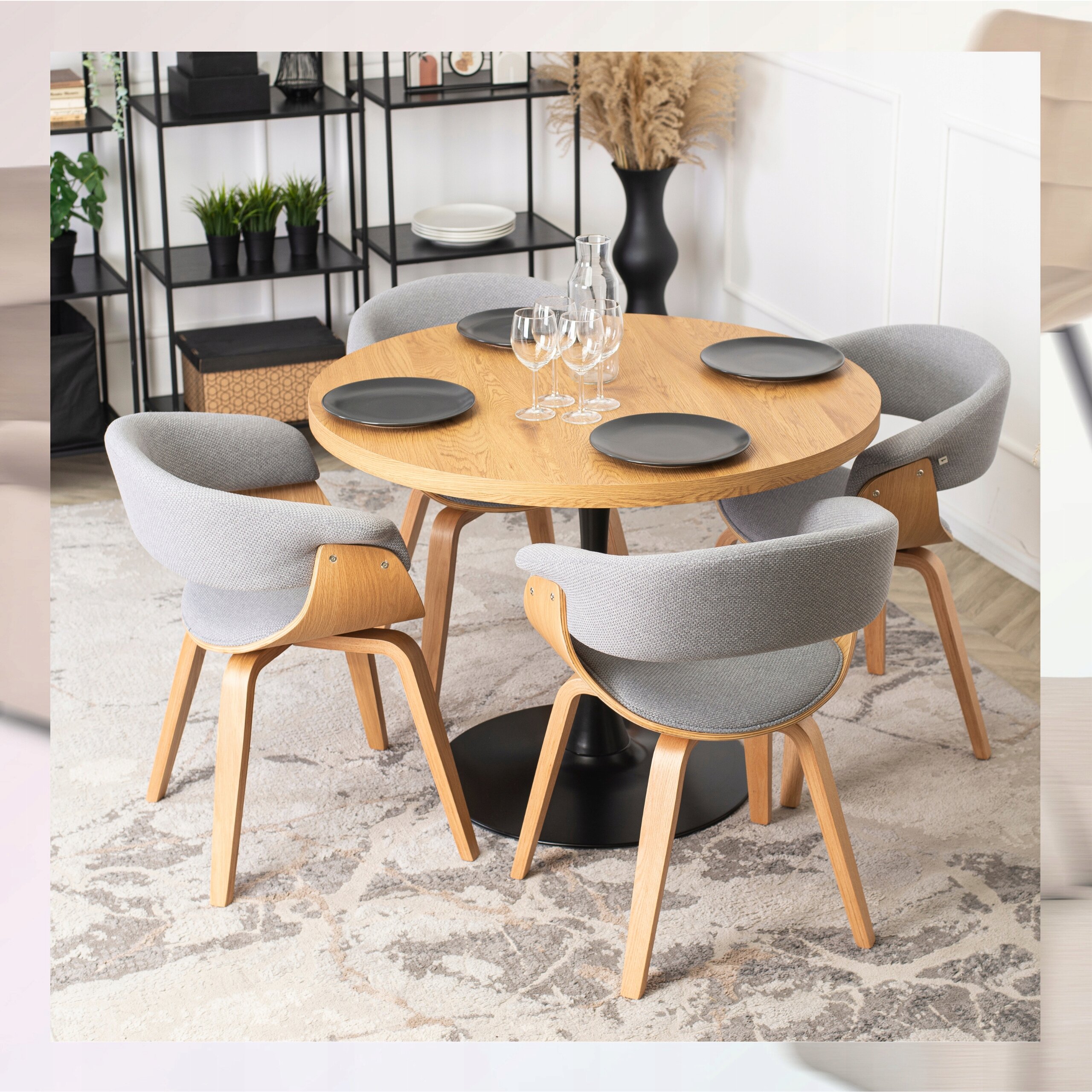 - Krzesło Tapicerowane Loftowe Drewno Gięte GARY 2 Dąb Szare Do Salonu Loft