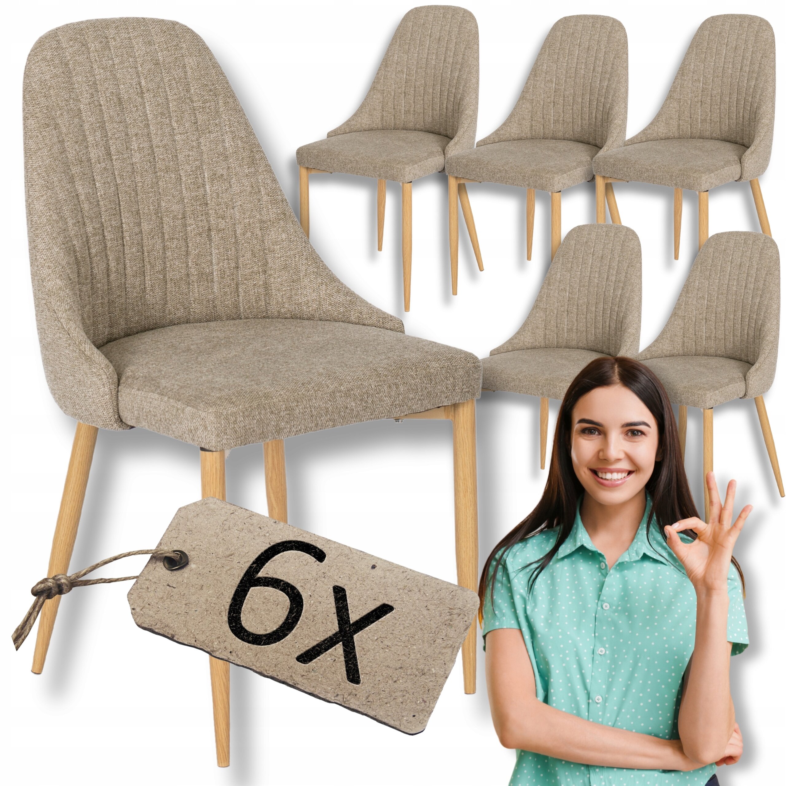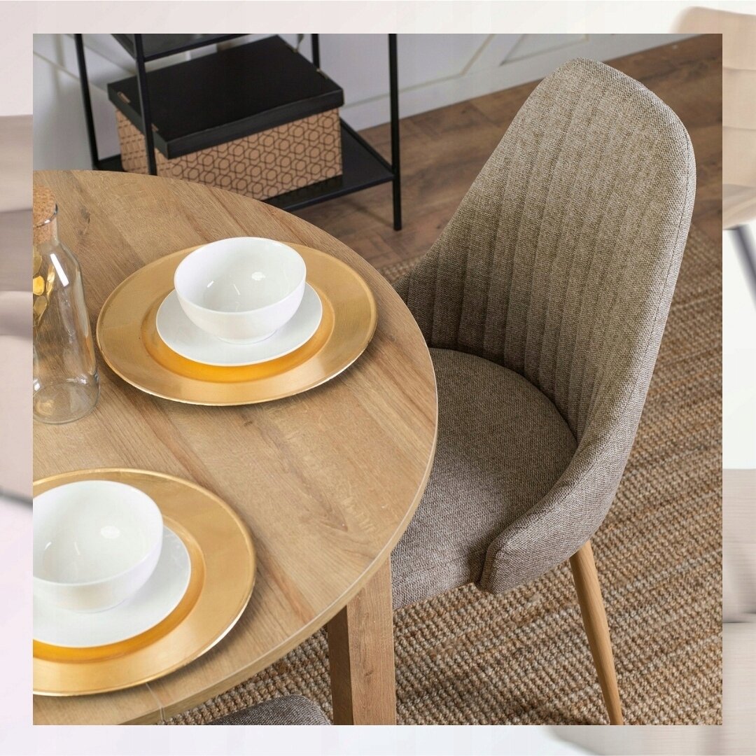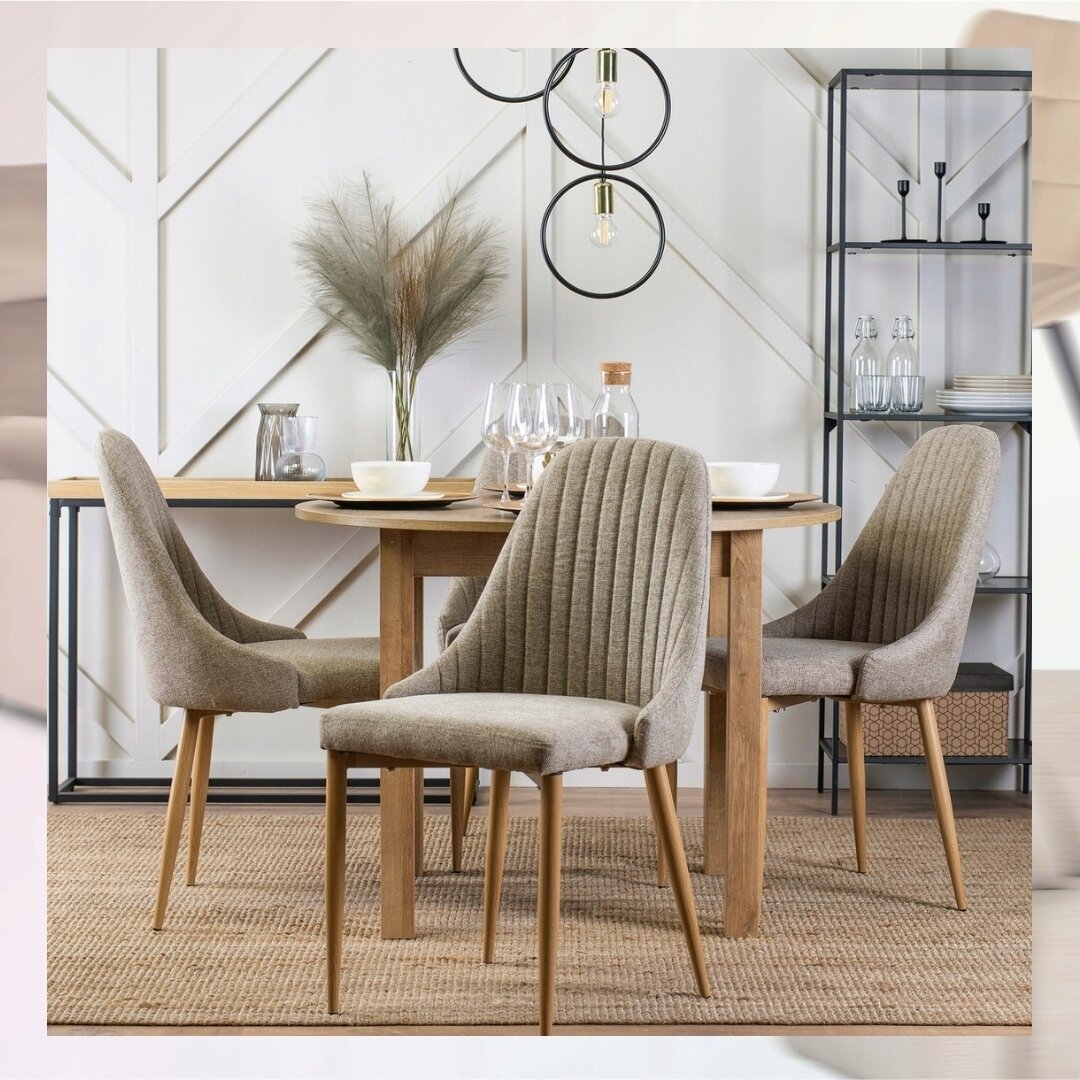 - 1× Krzesło Tapicerowane TORINO w kolorze beż – dąb złoty
