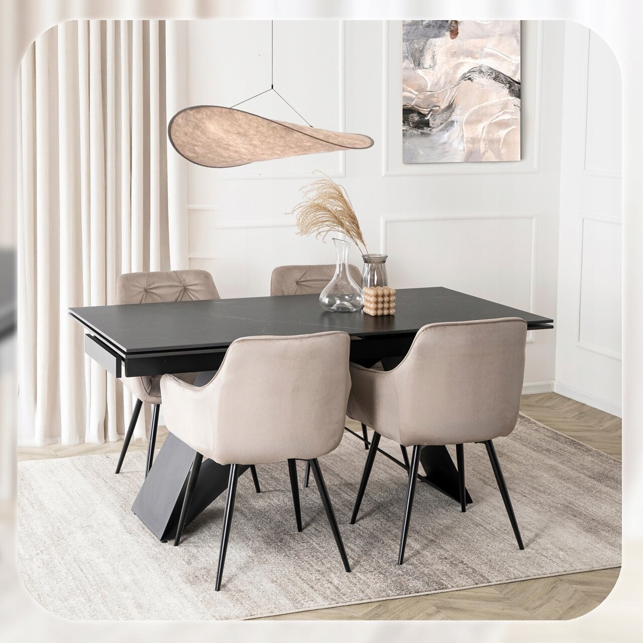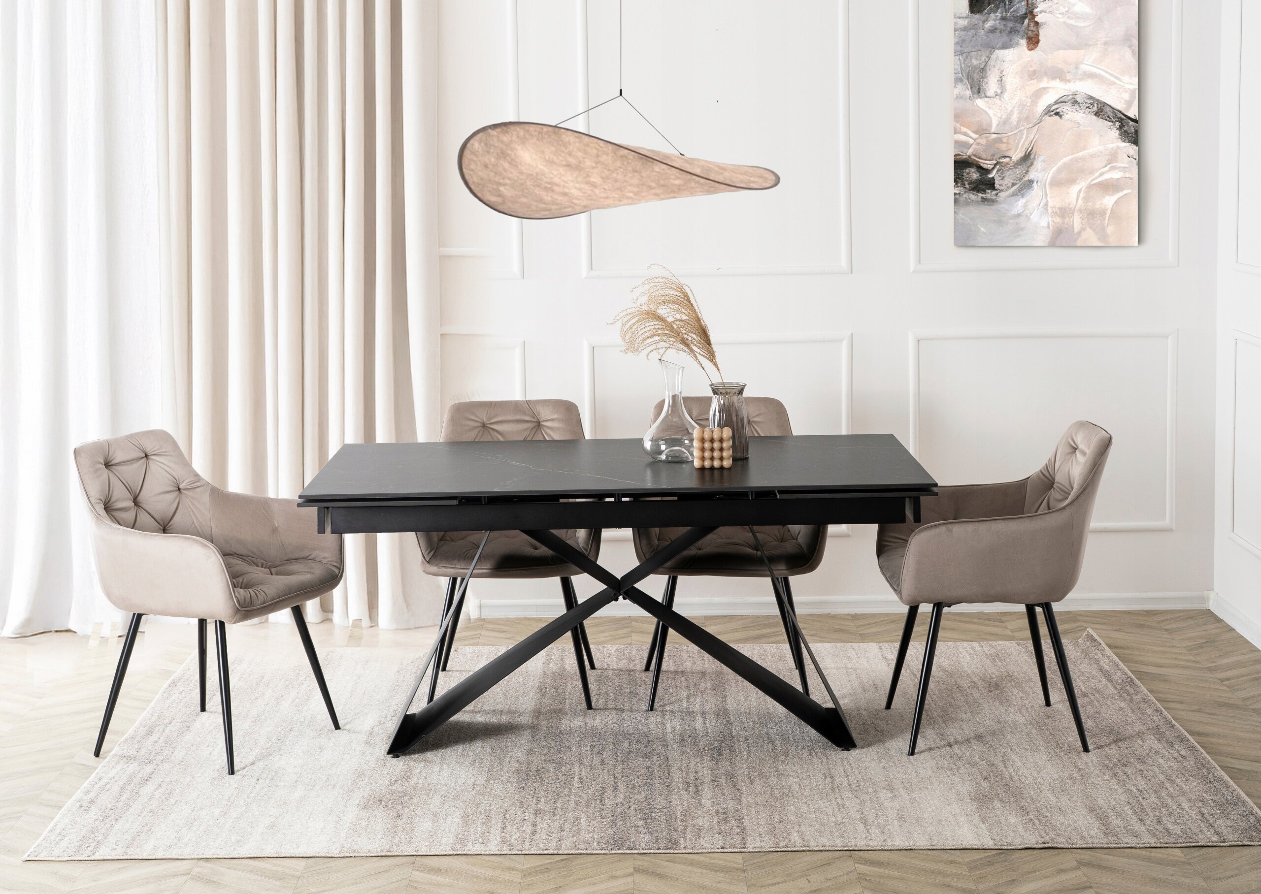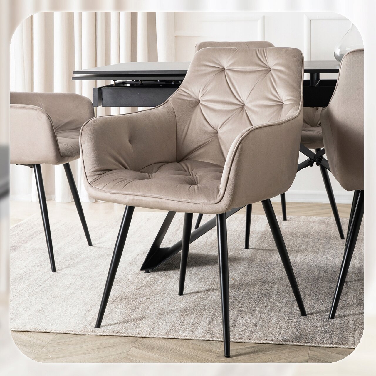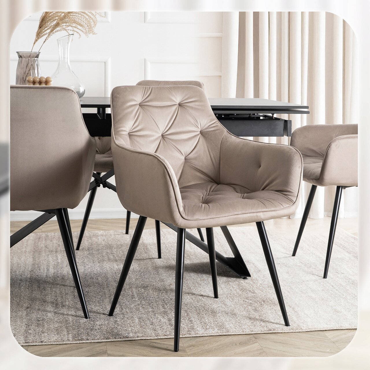 Krzesło MODESTO łączy w sobie wszystko, czego szukasz w idealnym krześle. Zachwyca eleganckim odcieniem beżu, który świetnie komponuje się z każdym wnętrzem – od nowoczesnego po klasyczne. Miękkie, welurowe siedzisko i starannie wyprofilowane, pikowane oparcie gwarantują nie tylko styl, ale też wygodę podczas codziennych posiłków i długich spotkań z bliskimi.