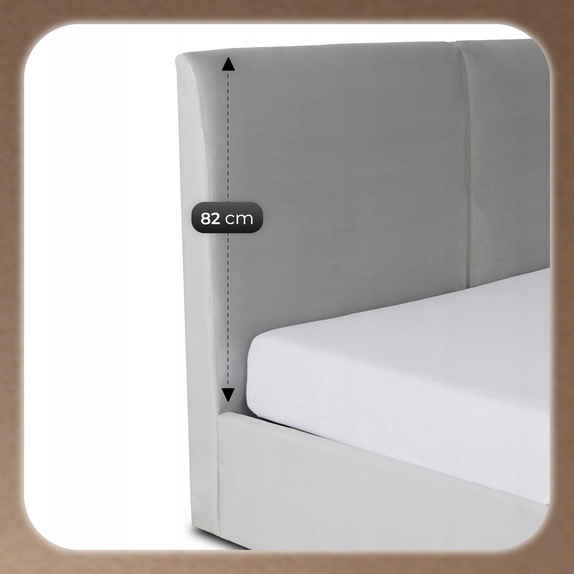 Tapicerowany zagłówek o wysokości 82 cm to gwarancja wygody podczas wieczornego czytania, oglądania telewizji czy relaksu z ulubioną kawą. Jego miękka pikowana konstrukcja i eleganckie wykończenie w szarej barankowej tkaninie dodają wnętrzu nowoczesnego charakteru, a jednocześnie sprawiają, że łóżko prezentuje się niezwykle stylowo i przytulnie.