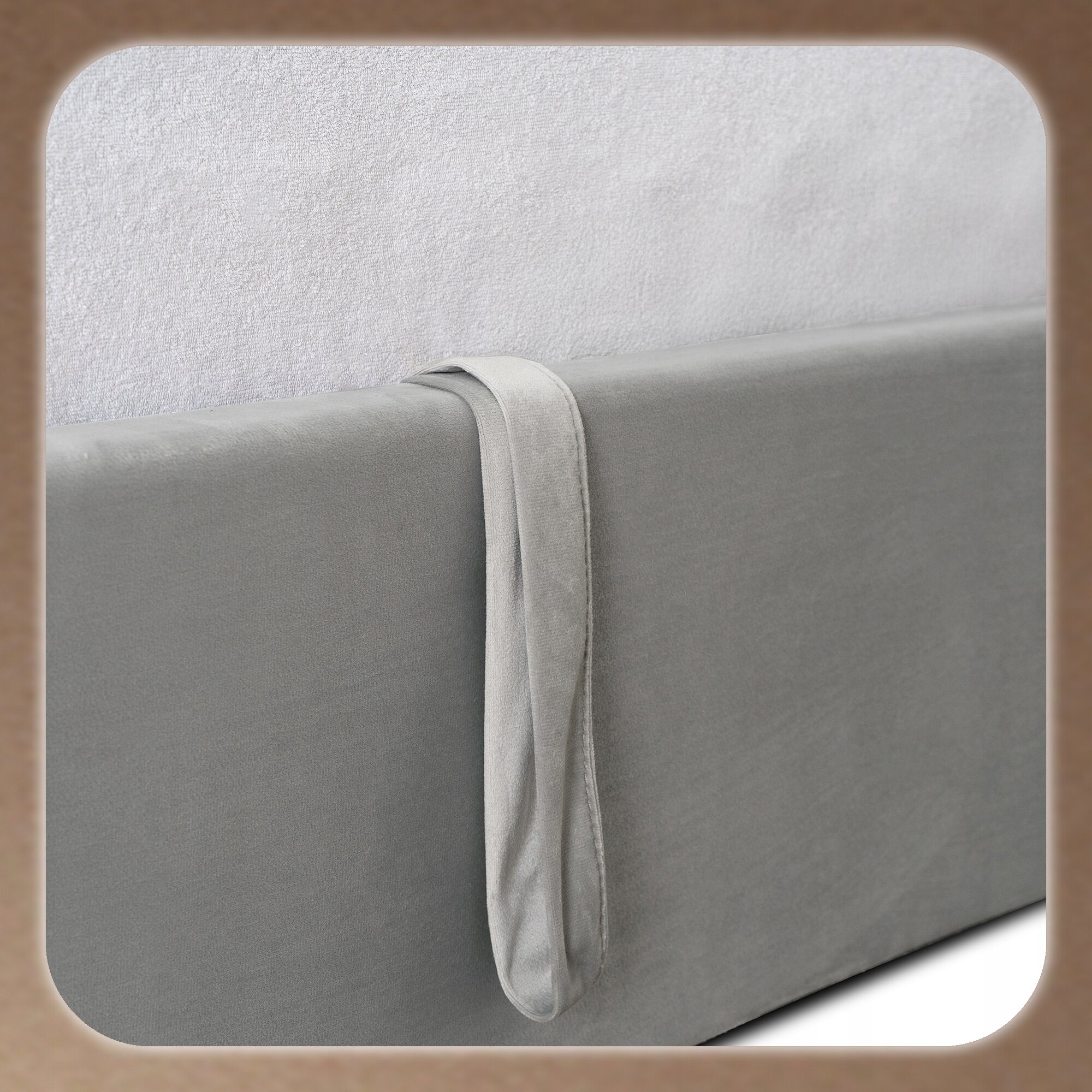 Łóżko MARSYLIA zostało obite eleganckim welurem w odcieniu szarości, który łączy w sobie nowoczesny wygląd i wyjątkowy komfort. Subtelny połysk weluru podkreśla luksusowy charakter mebla, dodając sypialni ciepła, przytulności i wyrafinowanego stylu.