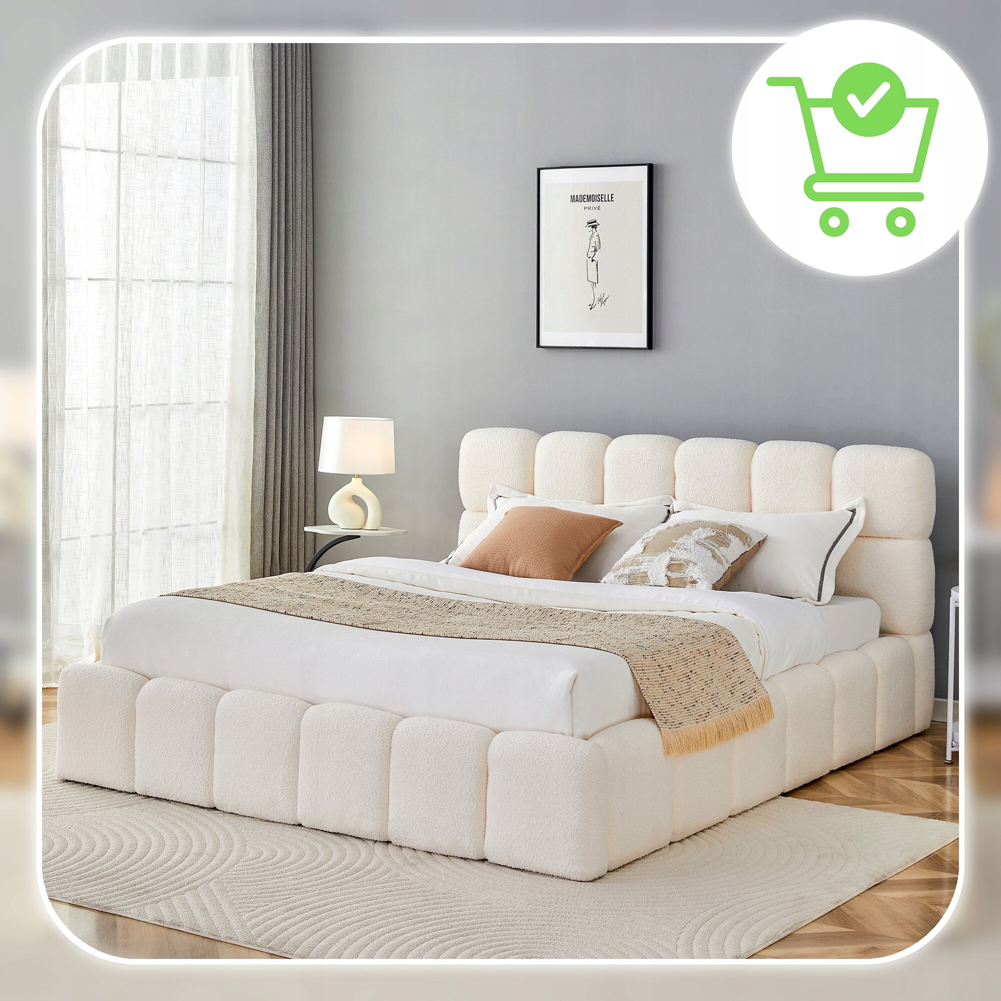 ✨ Łóżko 160x200 Tapicerowane Dwuosobowe Do Sypialni Baranek Krem MURCJA