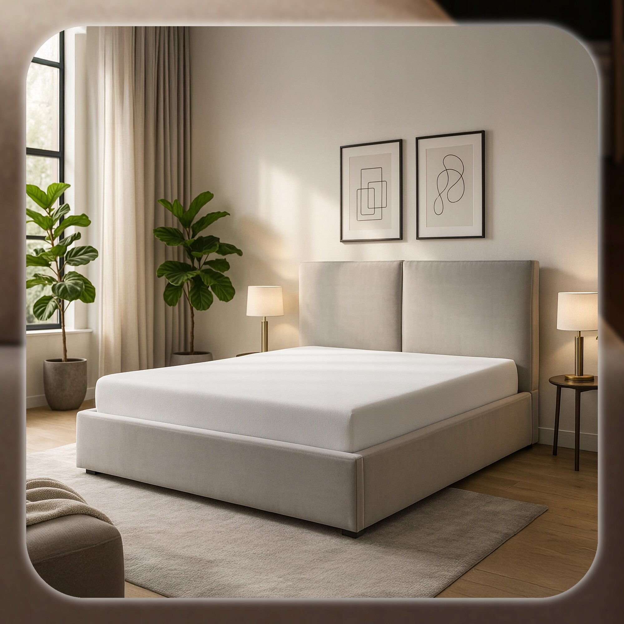 Tapicerowany zagłówek o wysokości 82 cm to gwarancja wygody podczas wieczornego czytania, oglądania telewizji czy relaksu z ulubioną kawą. Jego miękka pikowana konstrukcja i eleganckie wykończenie w szarej barankowej tkaninie dodają wnętrzu nowoczesnego charakteru, a jednocześnie sprawiają, że łóżko prezentuje się niezwykle stylowo i przytulnie.