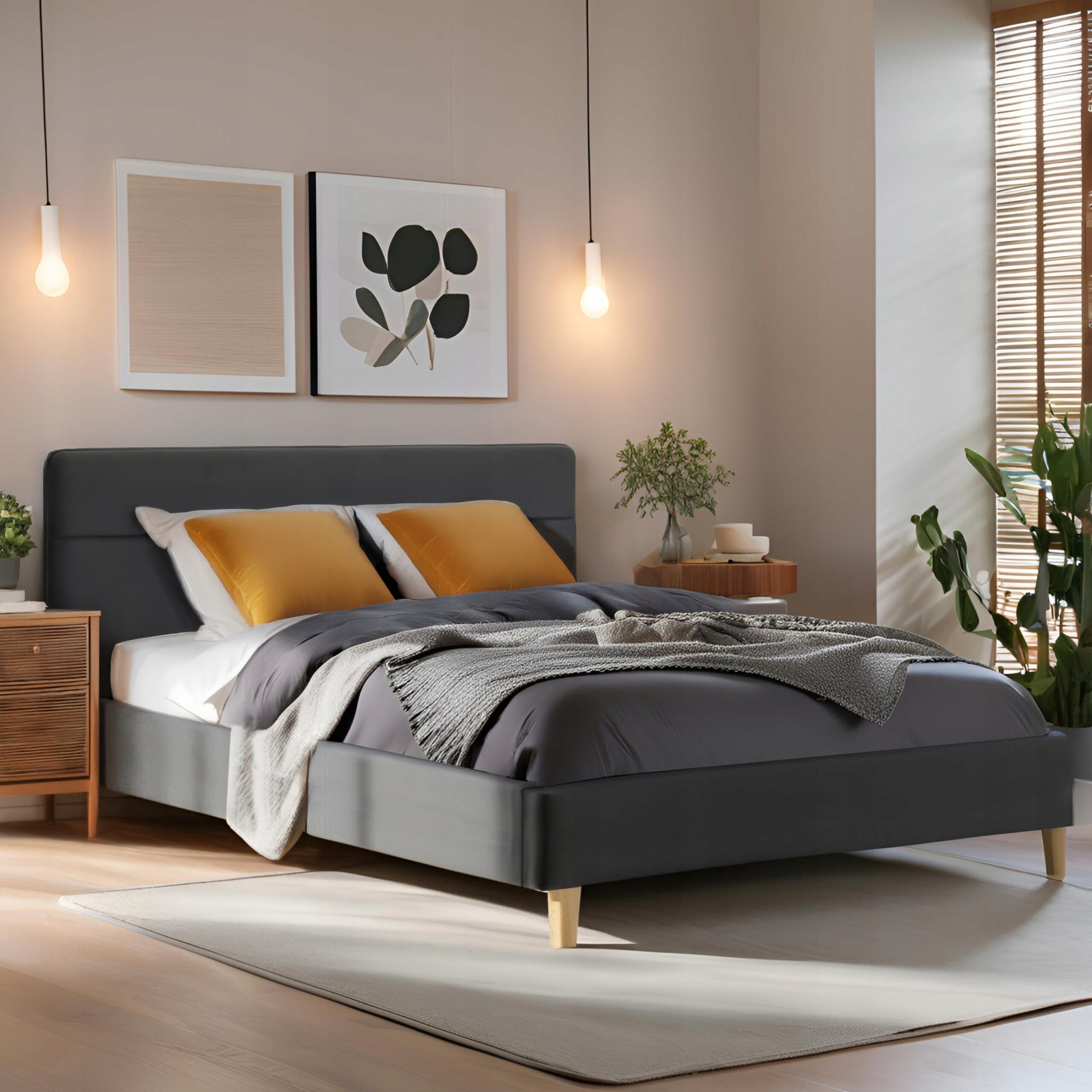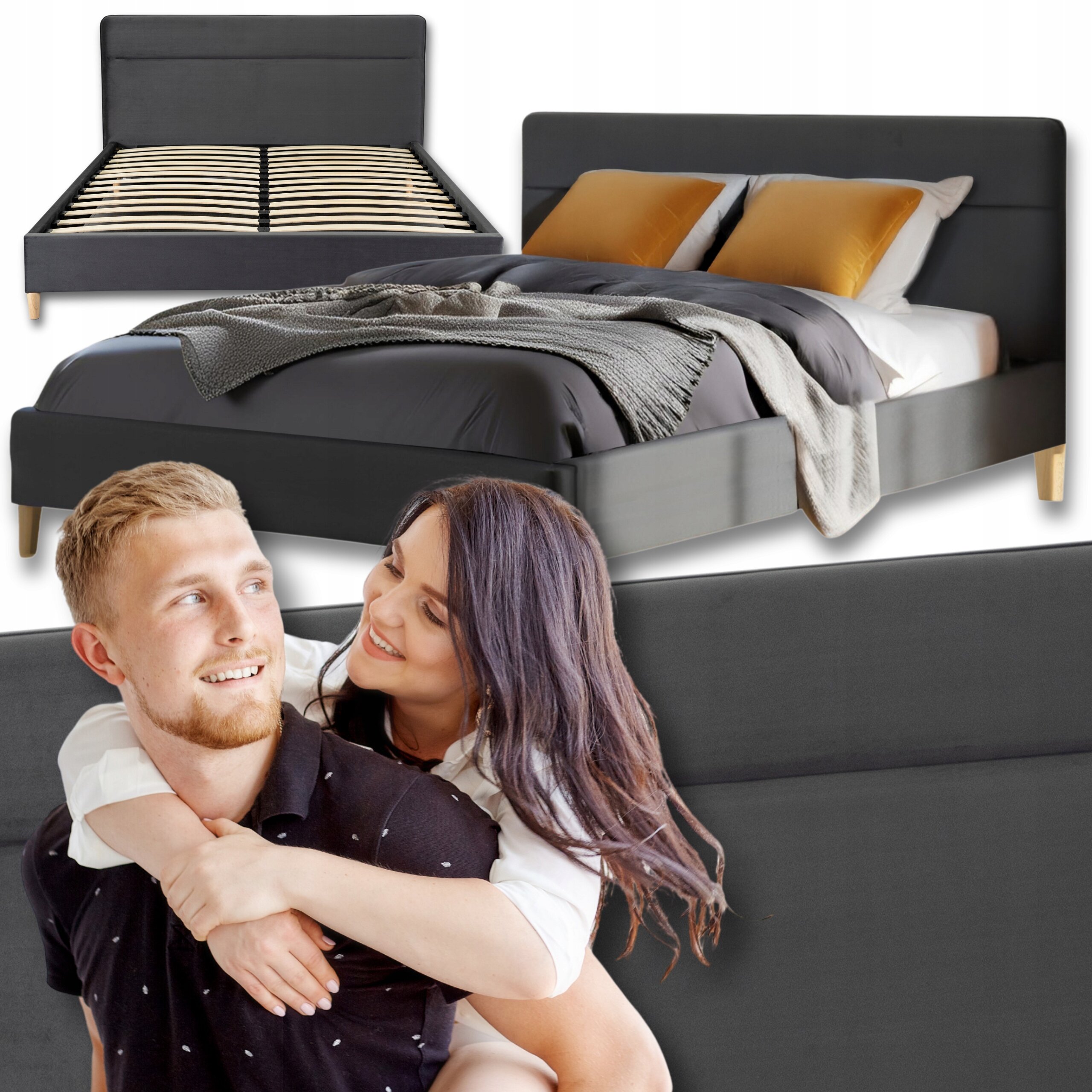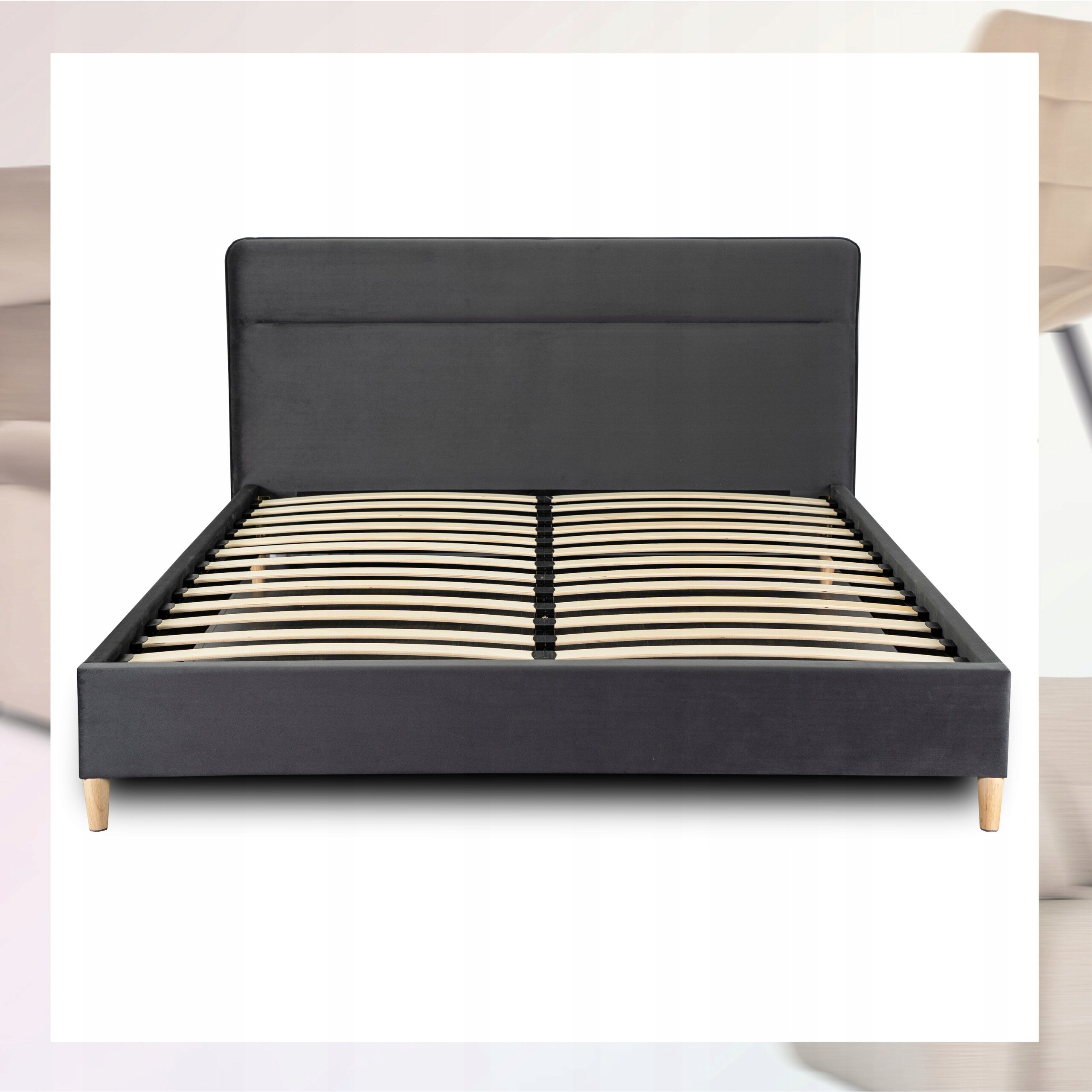 Łóżko 160x200 Tapicerowane Podwójne NICEA Do Sypialni Szare Welurowe