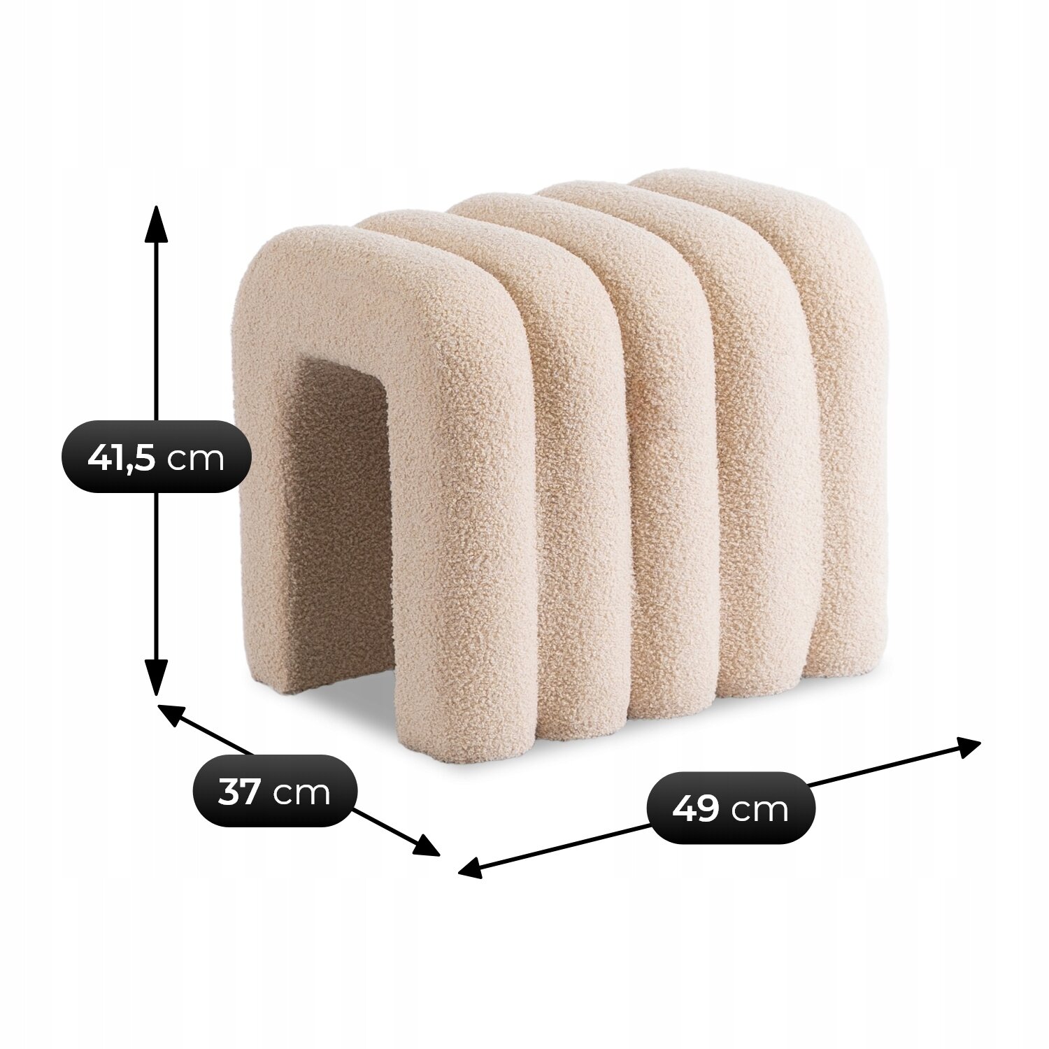 PIKSEL to nowoczesna pufa w kolorze beżowym, która zachwyca swoim oryginalnym, falistym kształtem. Dzięki kompaktowym wymiarom 41,5 cm wysokości, 37 cm głębokości i 49 cm szerokości, idealnie wpasuje się w różne wnętrza – salon, sypialnię czy przedpokój. Miękka, przyjemna w dotyku tkanina boucle sprawia, że jest nie tylko wygodna, ale także elegancka. To praktyczny i designerski dodatek, który świetnie sprawdzi się jako siedzisko, podnóżek lub element dekoracyjny.