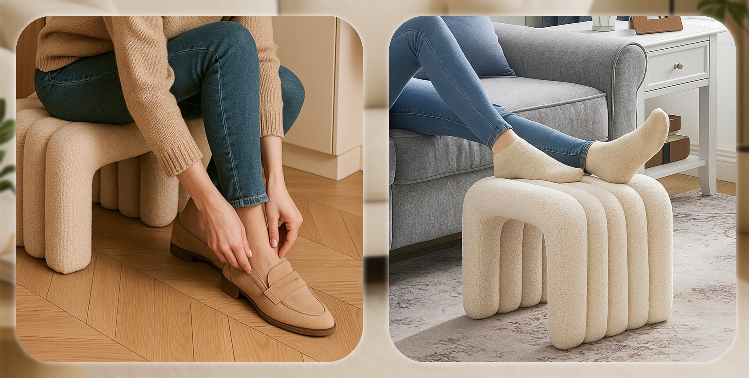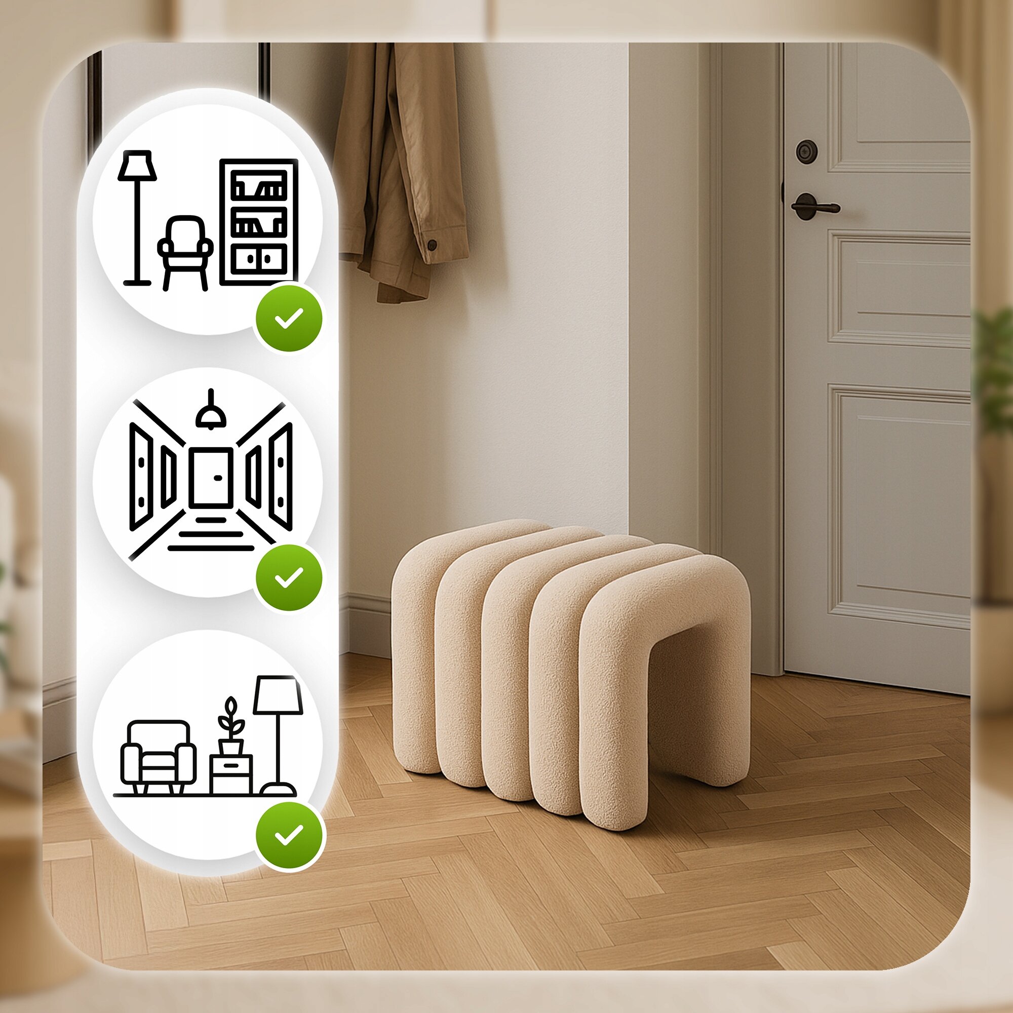 Pufa Siedzisko Do Przedpokoju Toaletki Teddy Puf Beżowa PIKSEL ✨