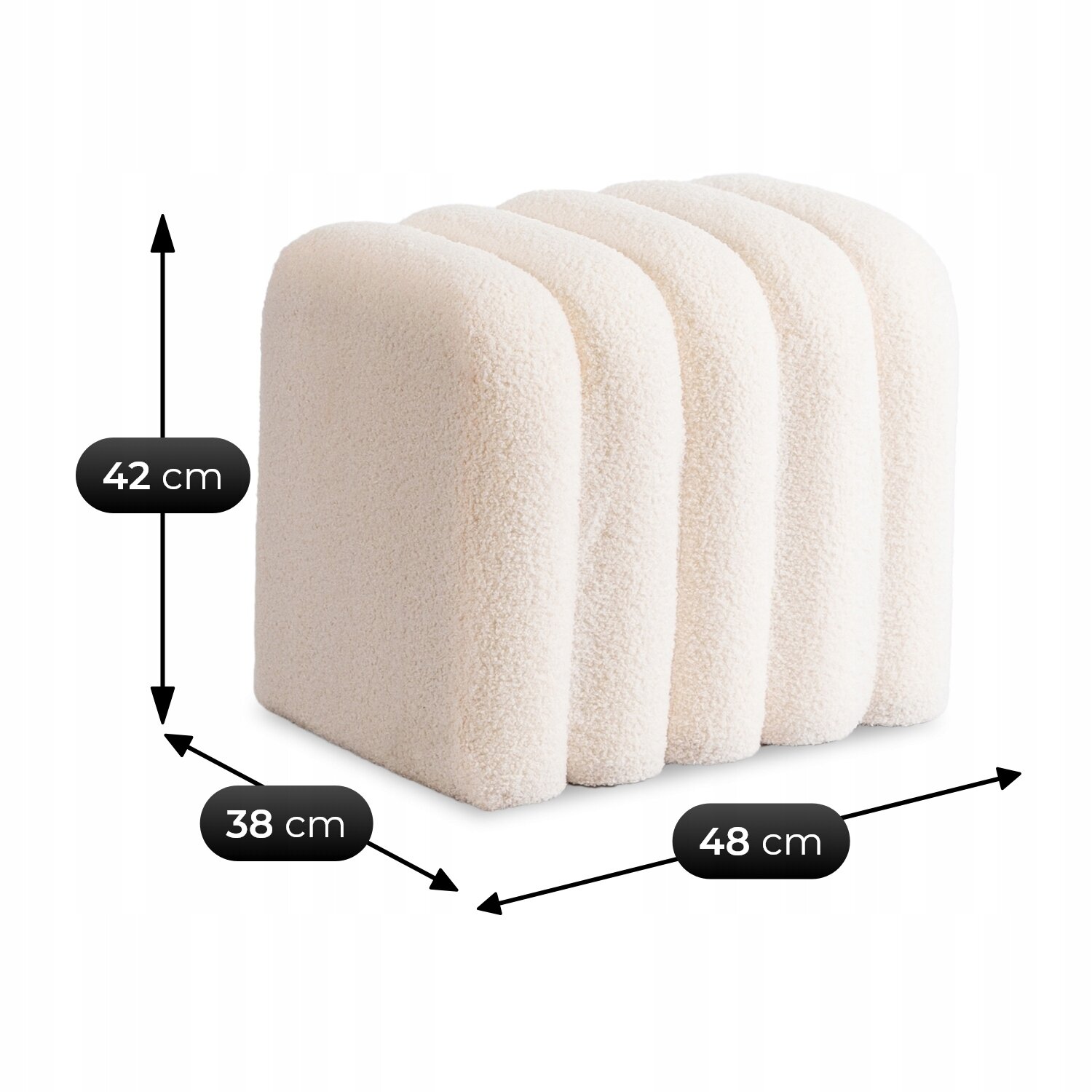 KARBON to nowoczesna pufa w kolorze kremowym, która zachwyca swoim oryginalnym, falistym kształtem. Dzięki kompaktowym wymiarom 42 cm wysokości, 38 cm głębokości i 48 cm szerokości, idealnie wpasuje się w różne wnętrza – salon, sypialnię czy przedpokój. Miękka, przyjemna w dotyku tkanina boucle sprawia, że jest nie tylko wygodna, ale także elegancka. To praktyczny i designerski dodatek, który świetnie sprawdzi się jako siedzisko, podnóżek lub element dekoracyjny.