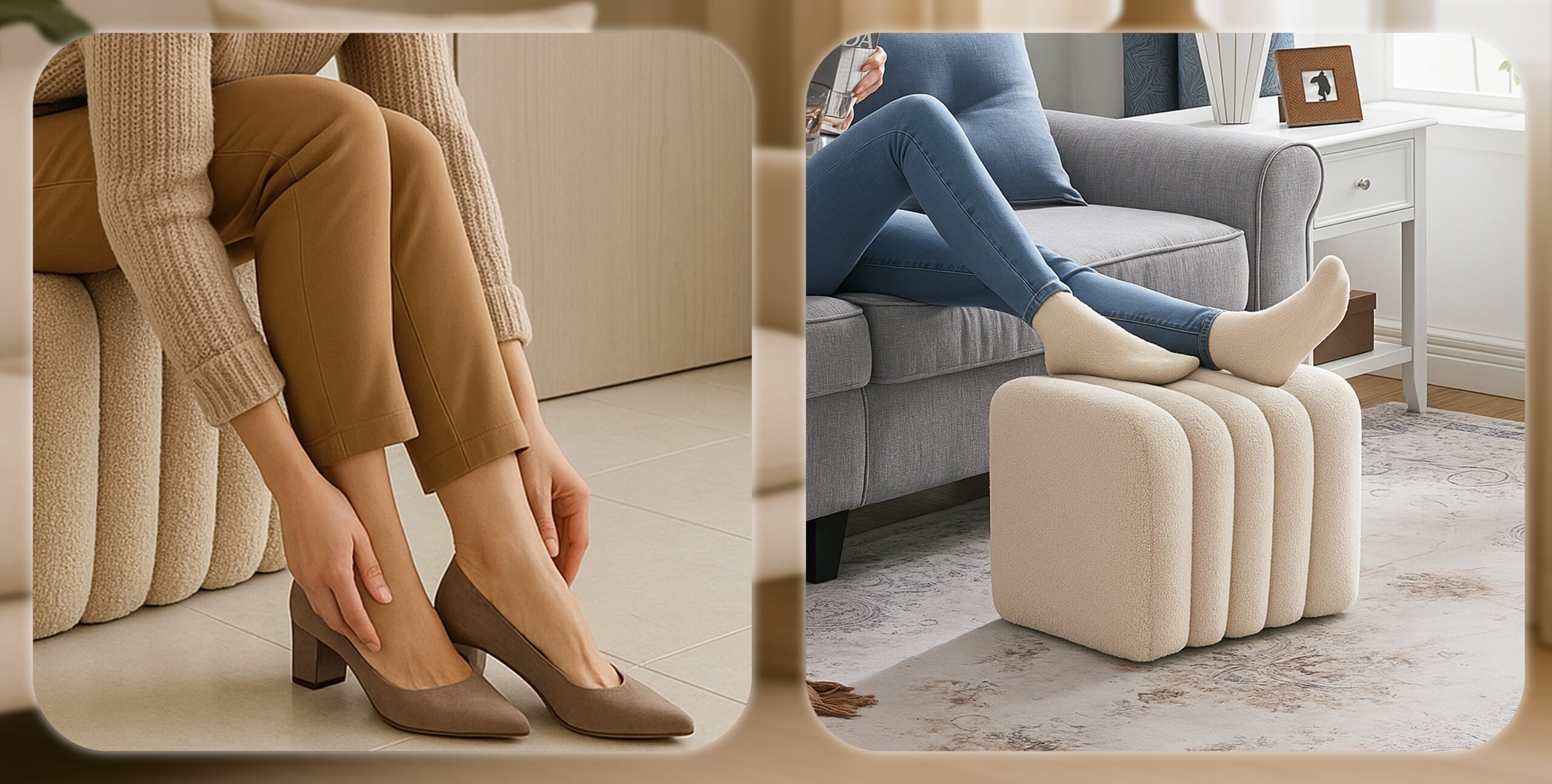 W salonie pufa świetnie sprawdzi się jako podnóżek – wystarczy usiąść na kanapie, wyprostować nogi i cieszyć się chwilą relaksu przy książce czy filmie. Jej kompaktowe wymiary sprawiają, że łatwo znajdziesz dla niej miejsce w każdym pomieszczeniu.