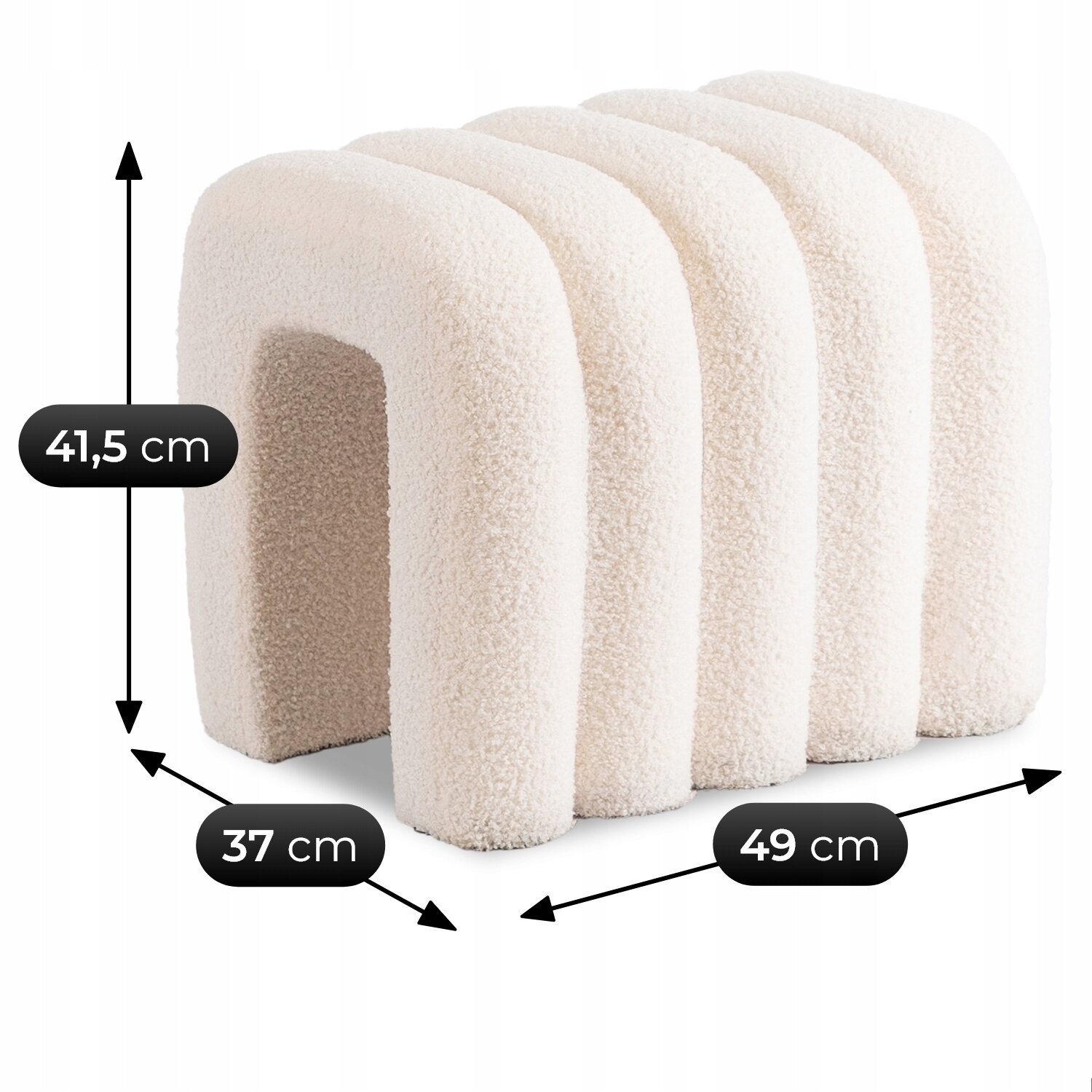 PIKSEL to nowoczesna pufa w kolorze kremowym, która zachwyca swoim oryginalnym, falistym kształtem. Dzięki kompaktowym wymiarom 41,5 cm wysokości, 37 cm głębokości i 49 cm szerokości, idealnie wpasuje się w różne wnętrza – salon, sypialnię czy przedpokój. Miękka, przyjemna w dotyku tkanina boucle sprawia, że jest nie tylko wygodna, ale także elegancka. To praktyczny i designerski dodatek, który świetnie sprawdzi się jako siedzisko, podnóżek lub element dekoracyjny.