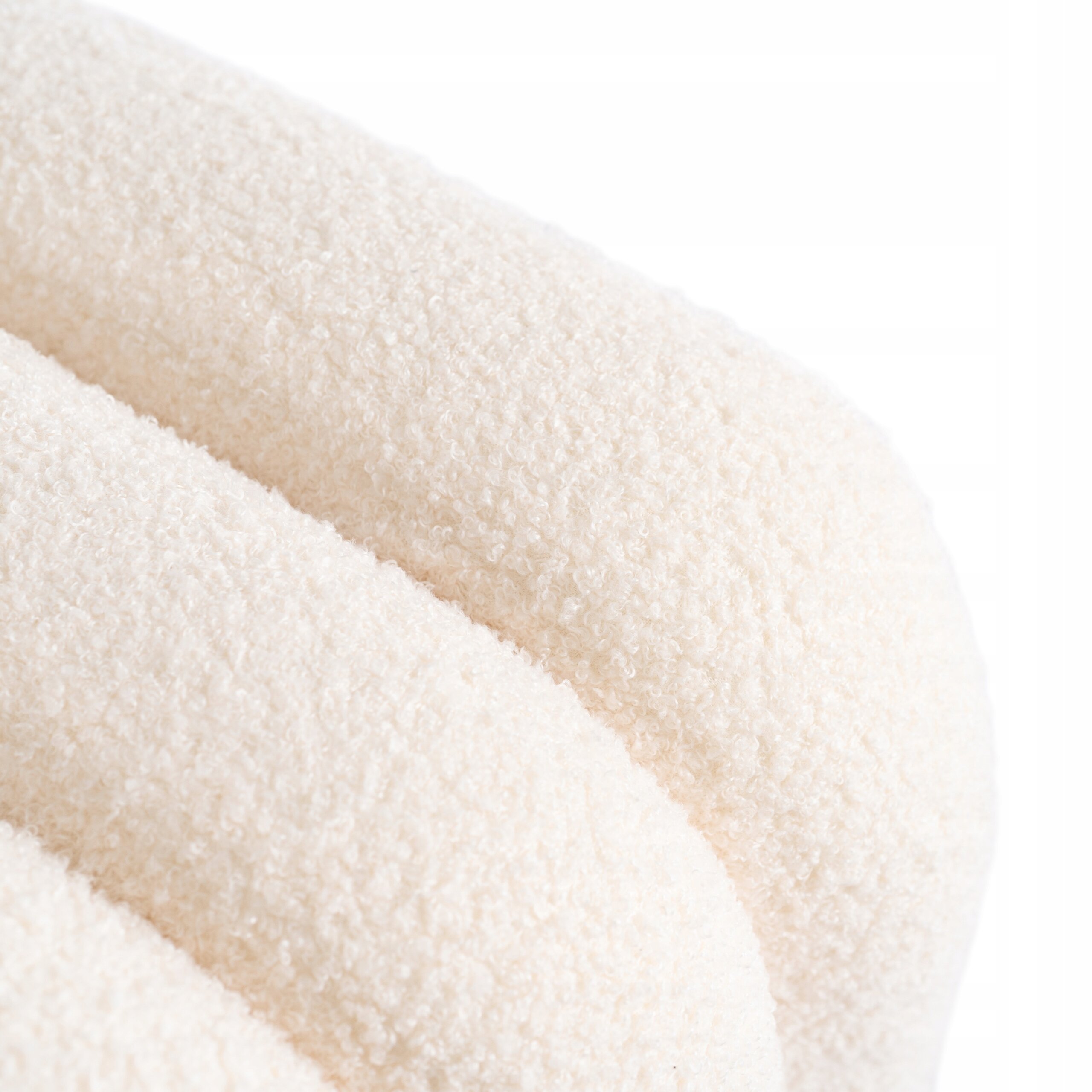 - Miękka tkanina boucle – wyjątkowo przyjemna w dotyku i elegancka, dodaje wnętrzu klasy i nowoczesnego charakteru.