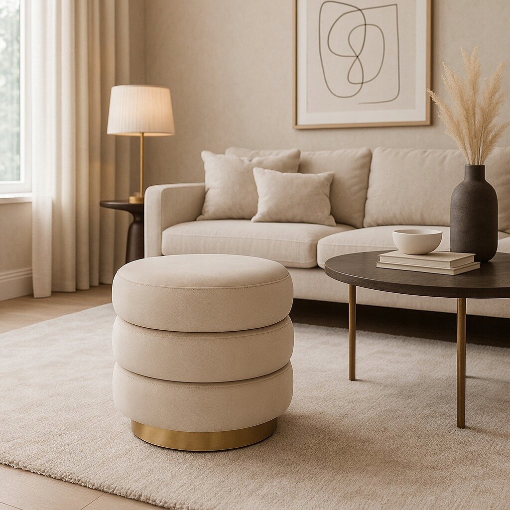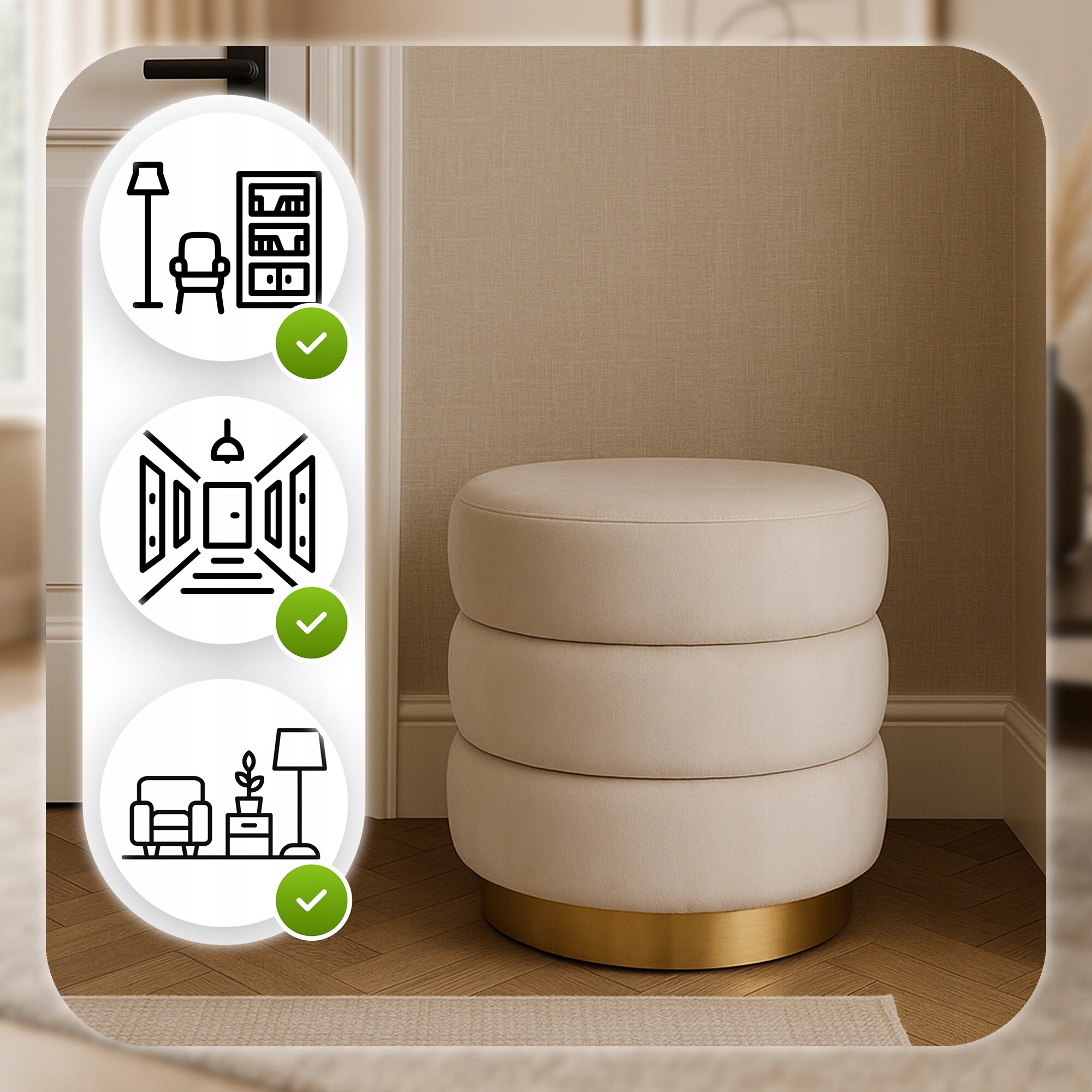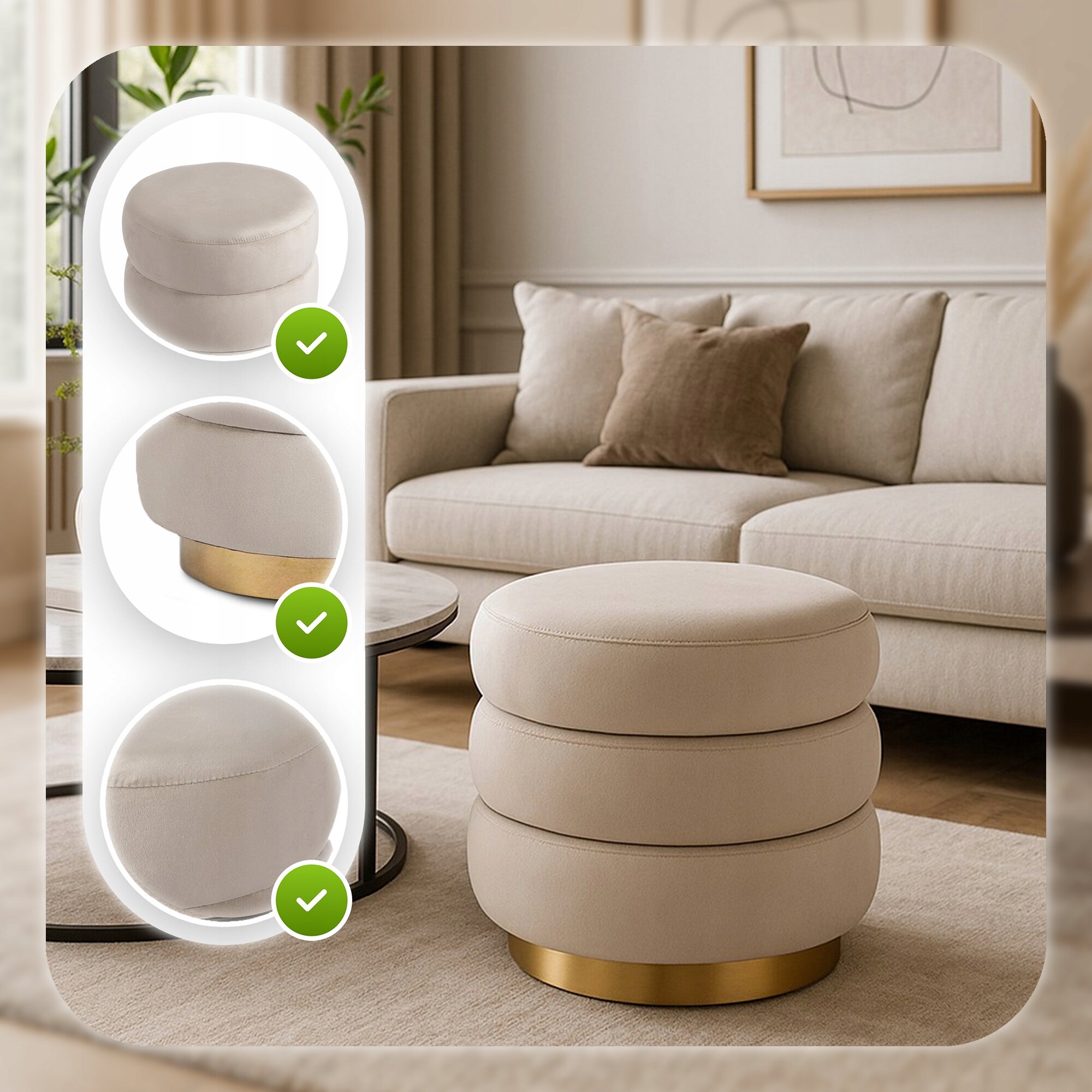 Pufa Siedzisko Do Przedpokoju Toaletki Welurowa Puf Kremowa Złota AURA ✨