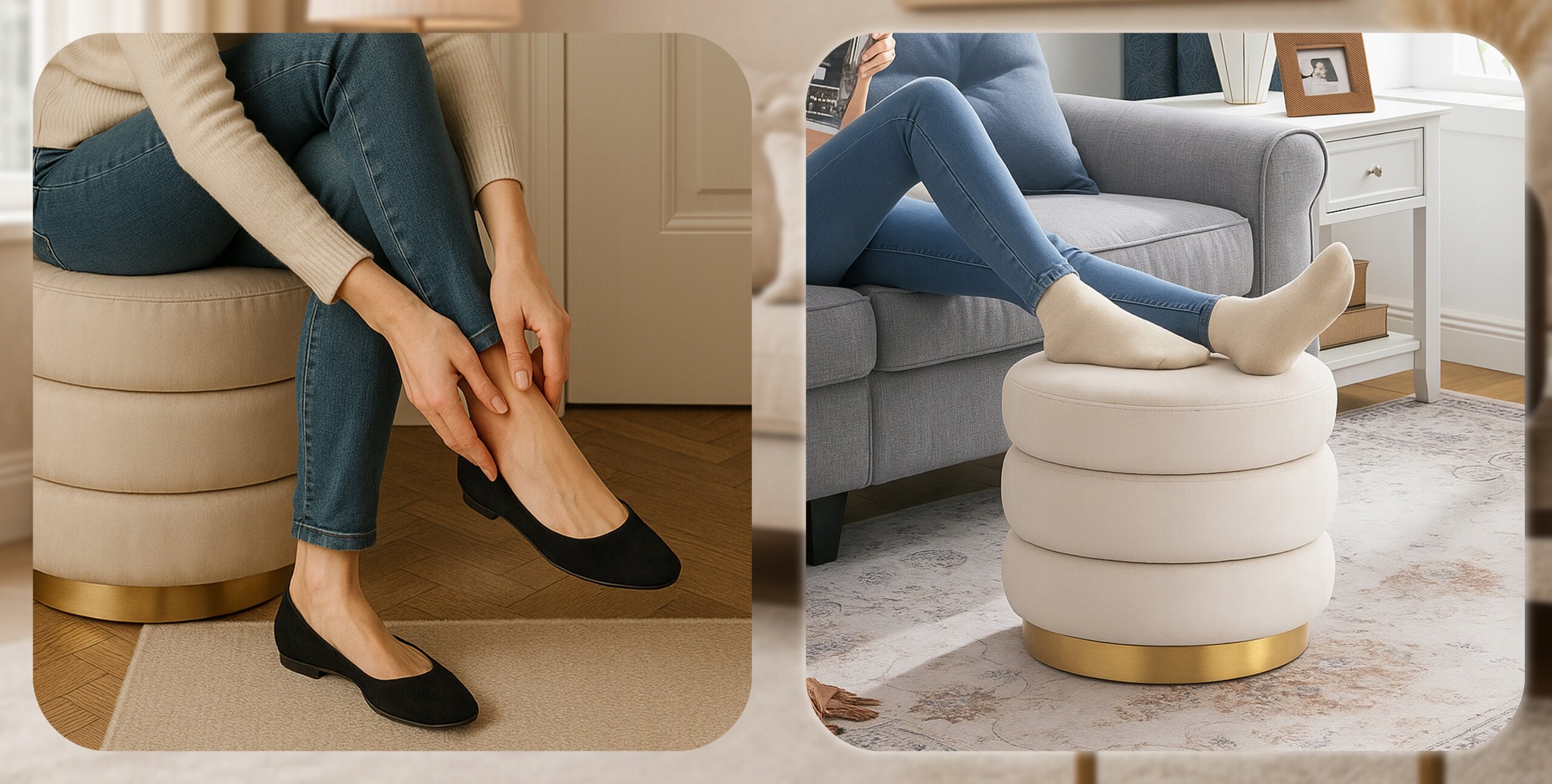 - W przedpokoju – jako wygodne siedzisko przy zakładaniu butów oraz stylowy dodatek, który od razu przyciąga wzrok gości.