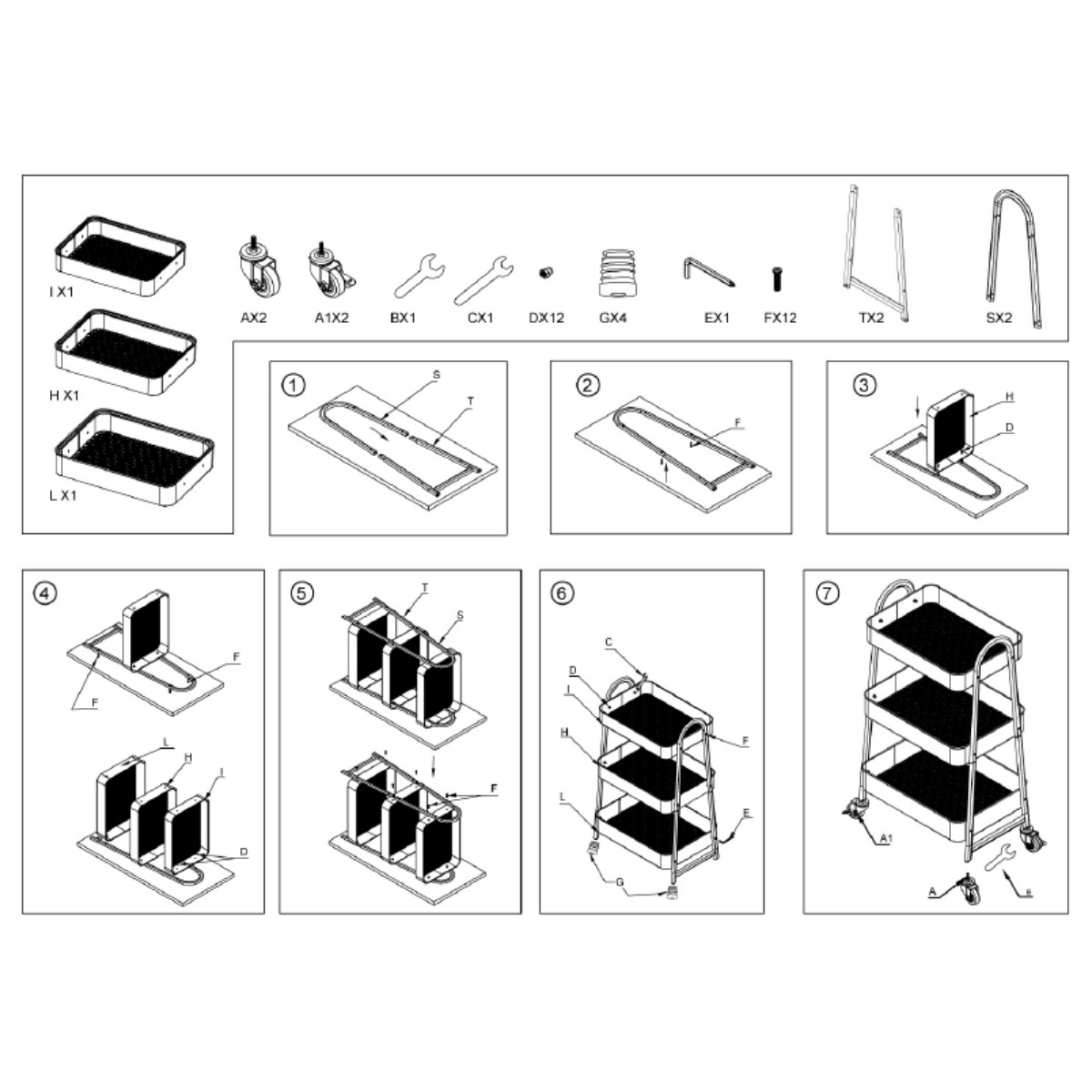 Regał na kółkach STORAGE SOLUTIONS 3 poziomy Czarny