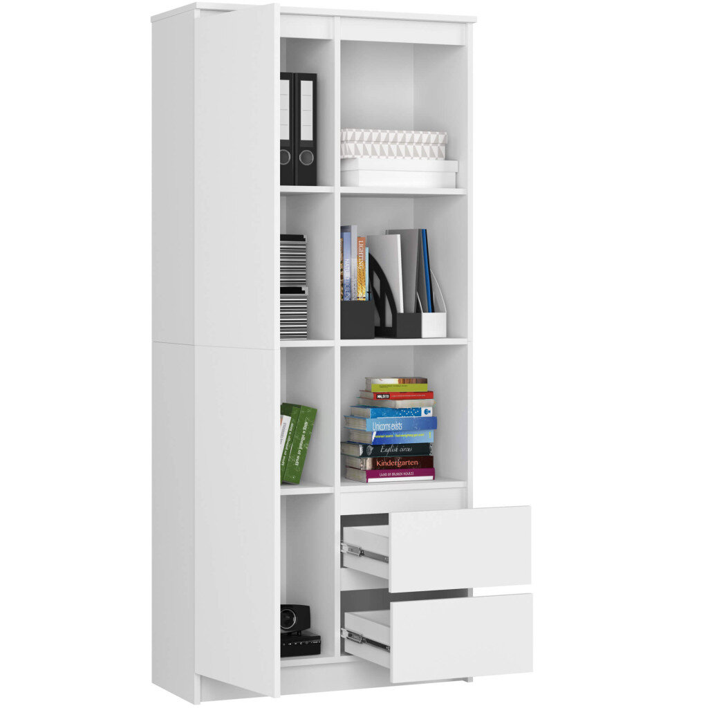 Regał AKORD R11 Biały 80 cm 1 drzwi 2 szuflady kolor Biały mat 7 półek 80x35x180 cm