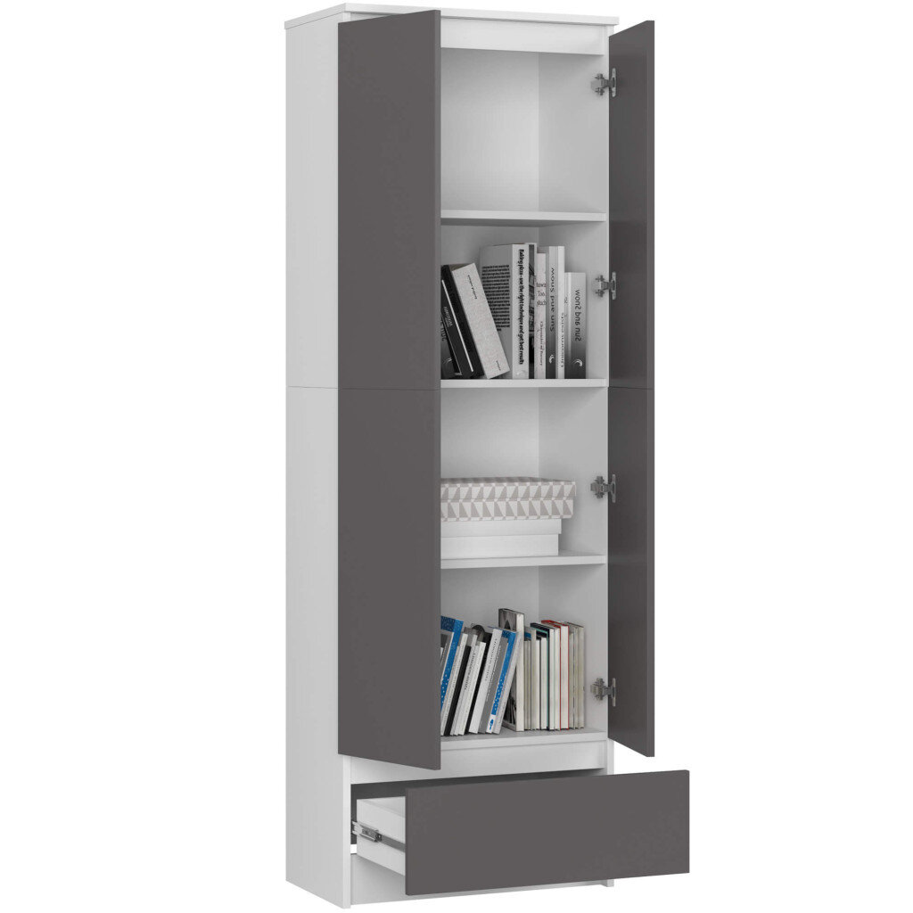 Regał AKORD R60 Biały 60 cm 2 drzwi 1 szuflada kolor Grafit Szary mat 4 półki 60x35x180 cm