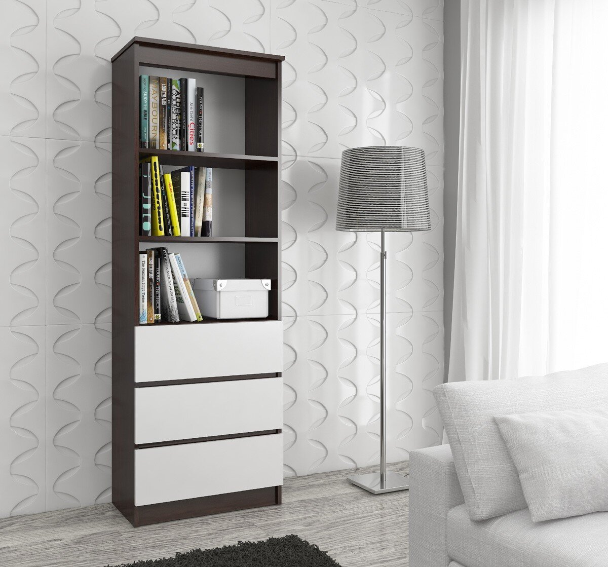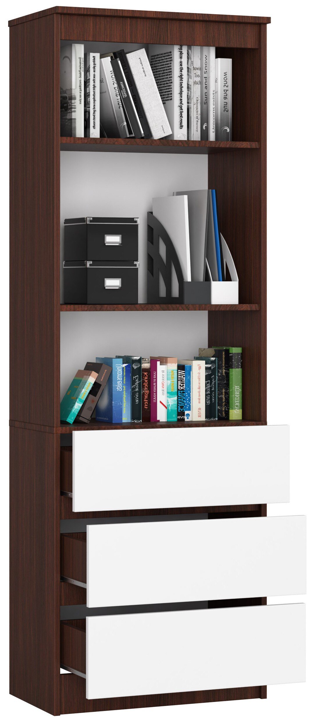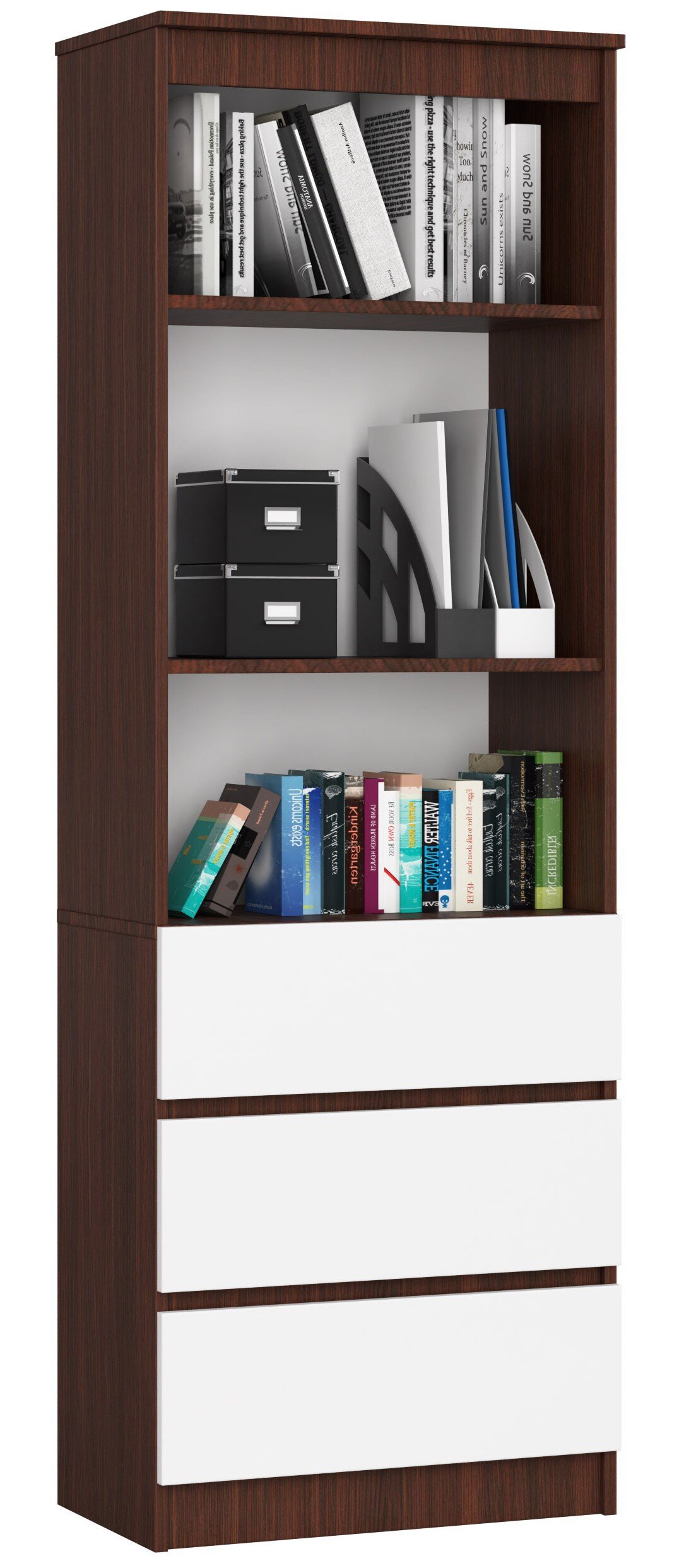 Regał AKORD R60 Wenge 60 cm 3 szuflady kolor Biały mat 3 półki 60x35x180 cm