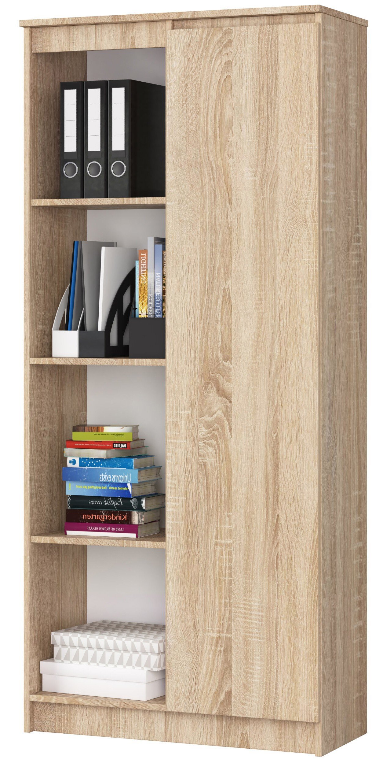 - Regał AKORD R80 Dąb Sonoma 80 cm 1 drzwi kolor Dąb Sonoma mat 8 półek 80x35x180 cm