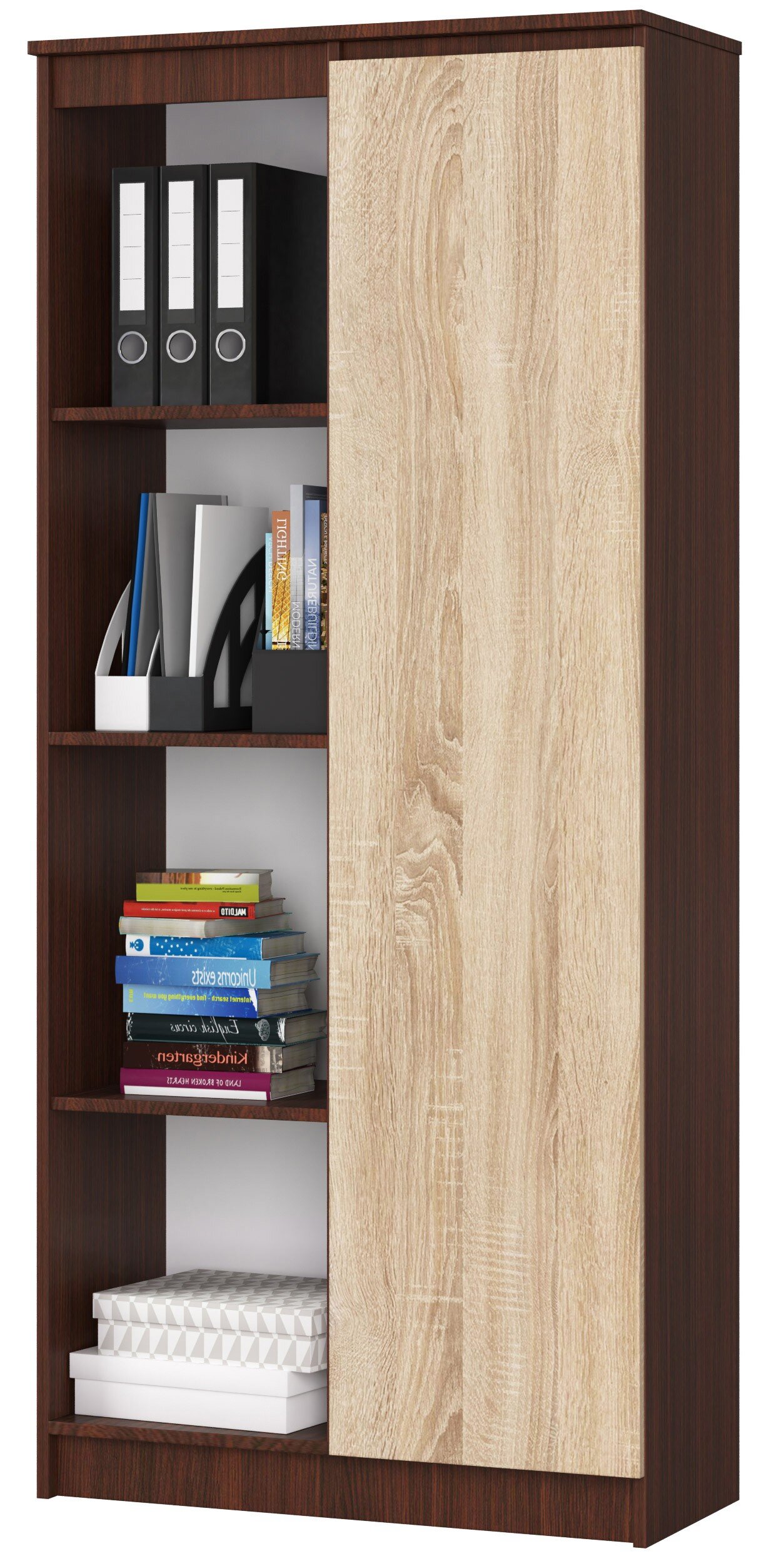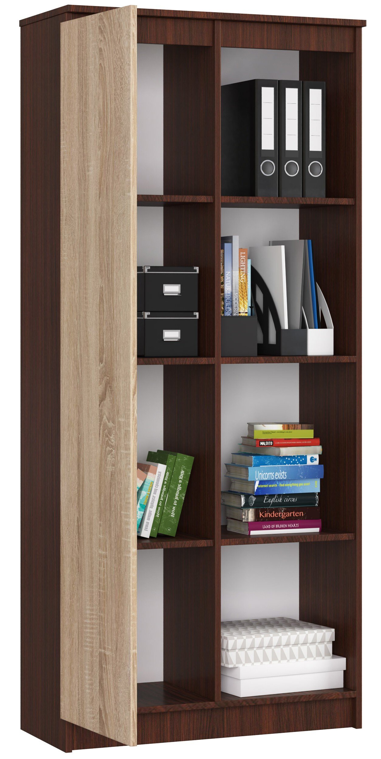 Regał AKORD R80 Wenge 80 cm 1 drzwi kolor Dąb Sonoma mat 8 półek 80x35x180 cm