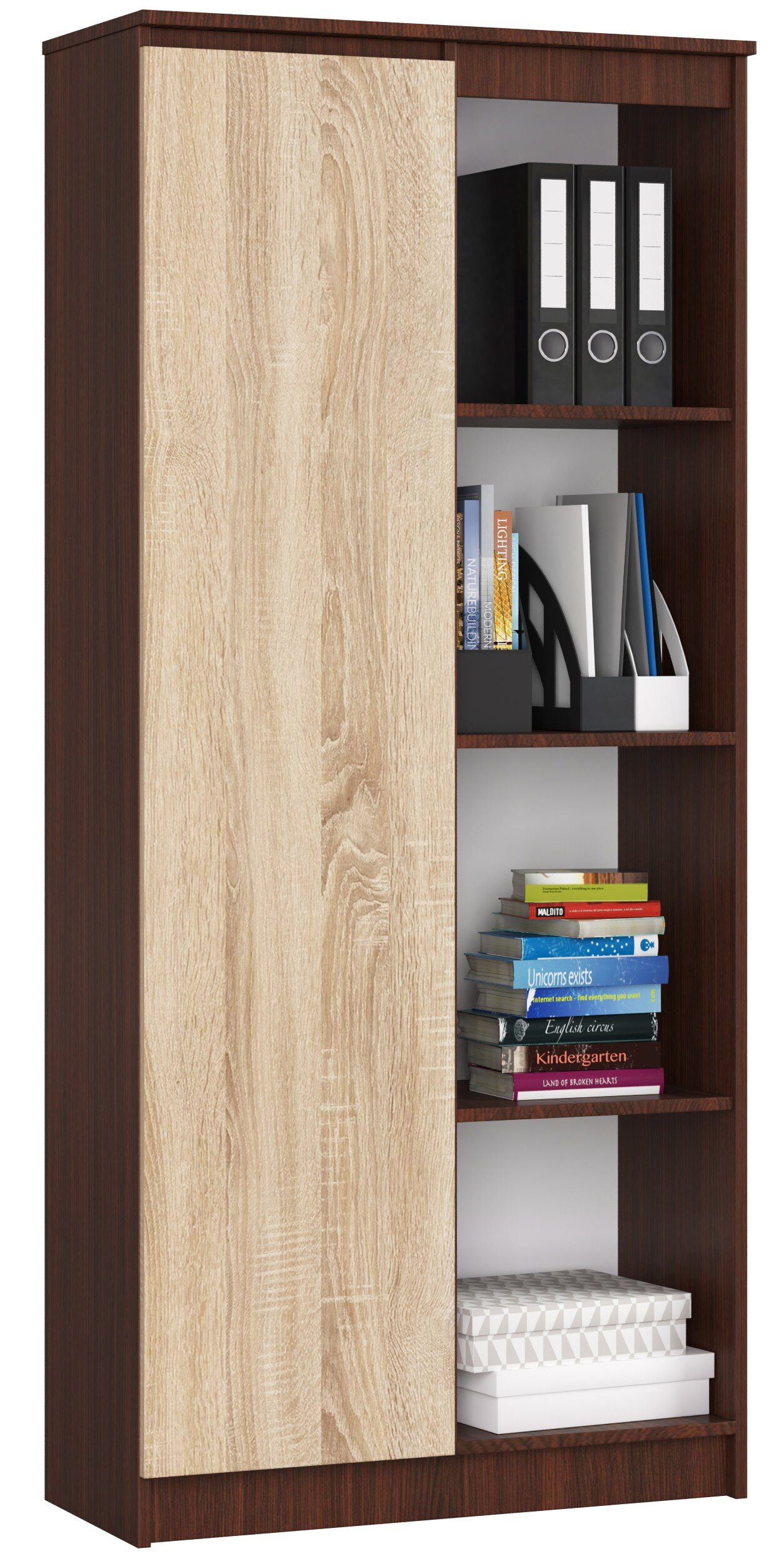 Regał Akord R80 Wenge 80 cm 1 drzwi kolor Dąb Sonoma mat 8 półek 80x35x180 cm