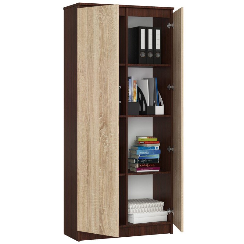 Regał AKORD R80 Wenge 80 cm 2 drzwi kolor Dąb Sonoma mat 8 półek 80x35x180 cm