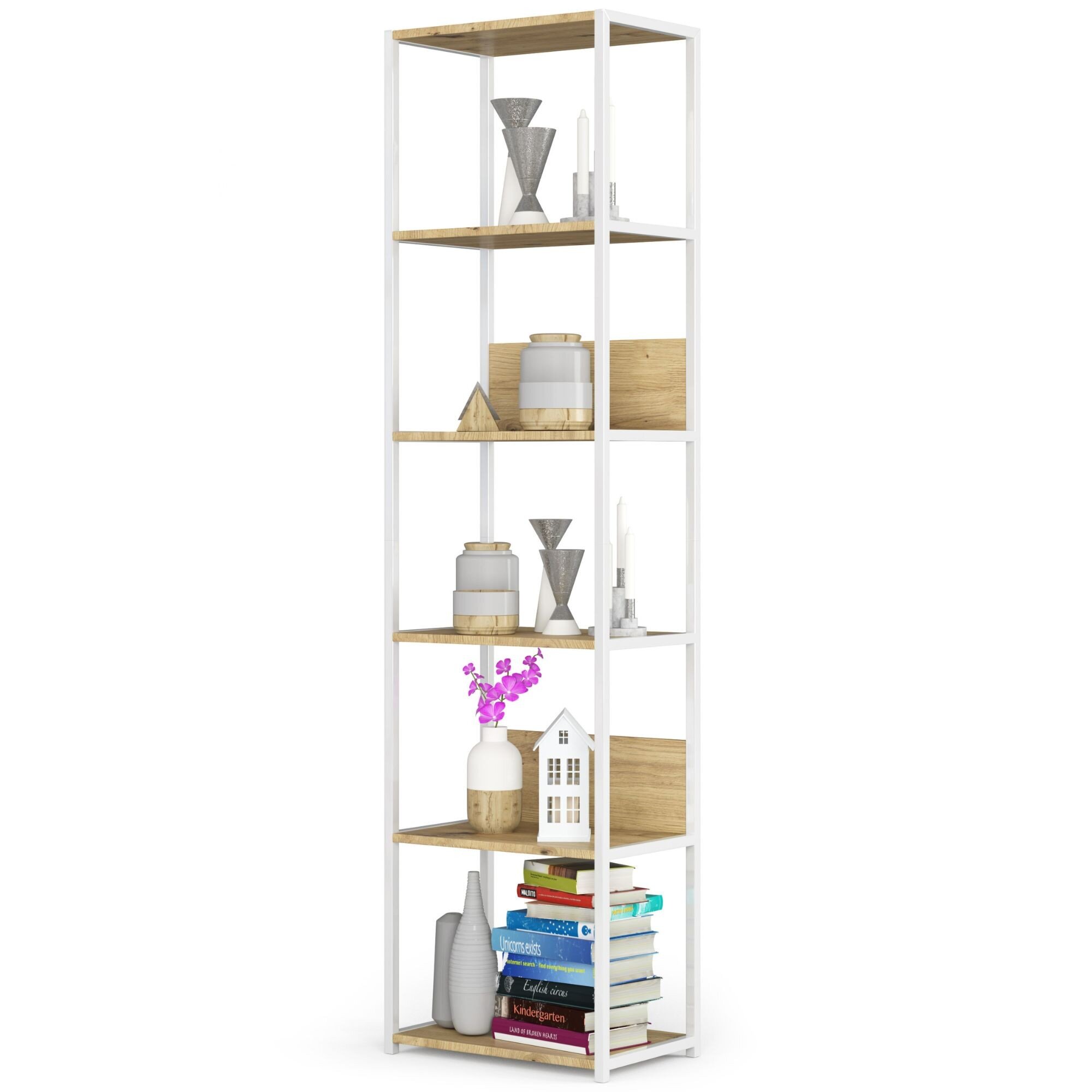 Regał loft Akord metalowy Biały 50 cm kolor Dąb Artisan mat 6 półek 50x32x192 cm