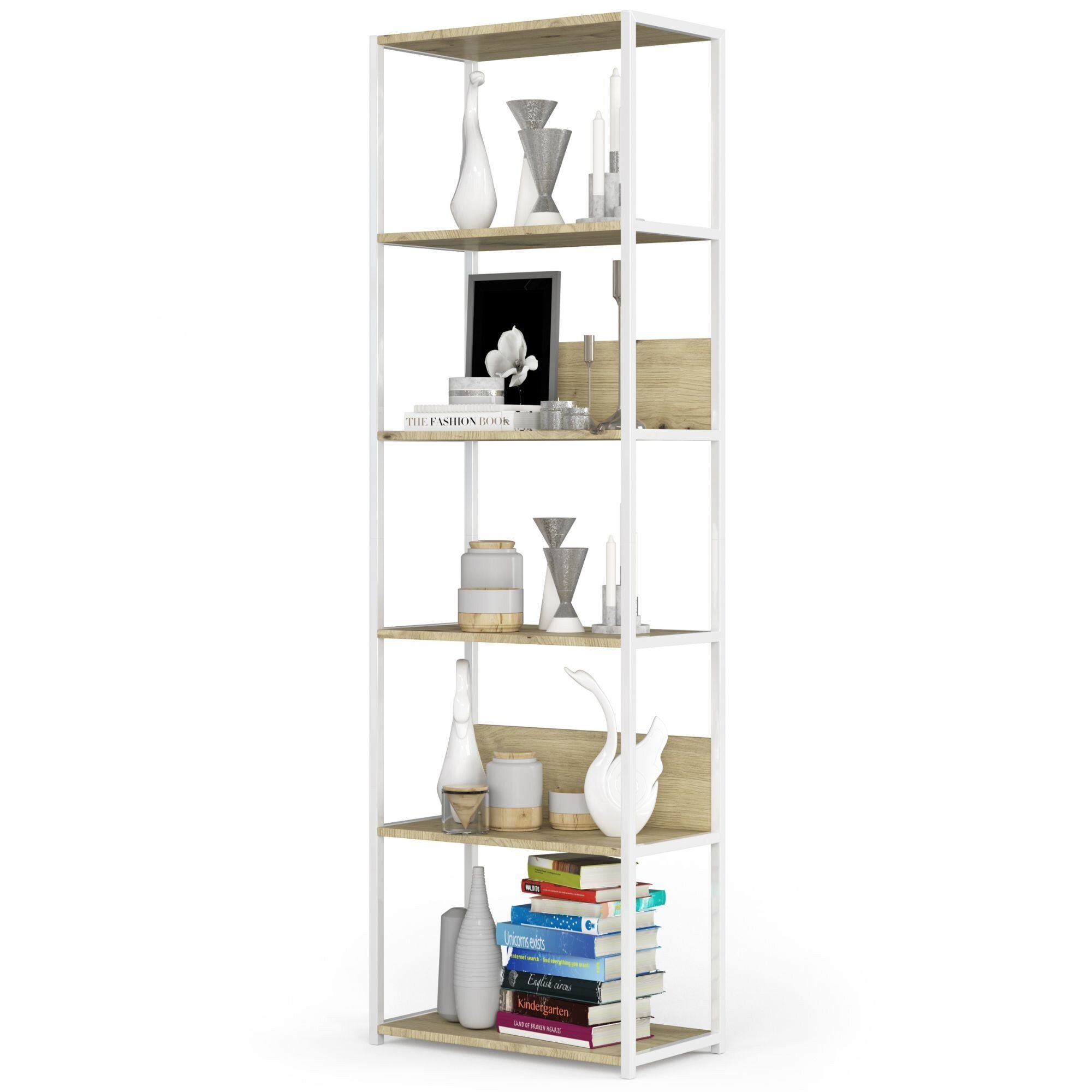 Regał loft Akord metalowy Biały 60 cm kolor Dąb Artisan mat 6 półek 60x32x192 cm