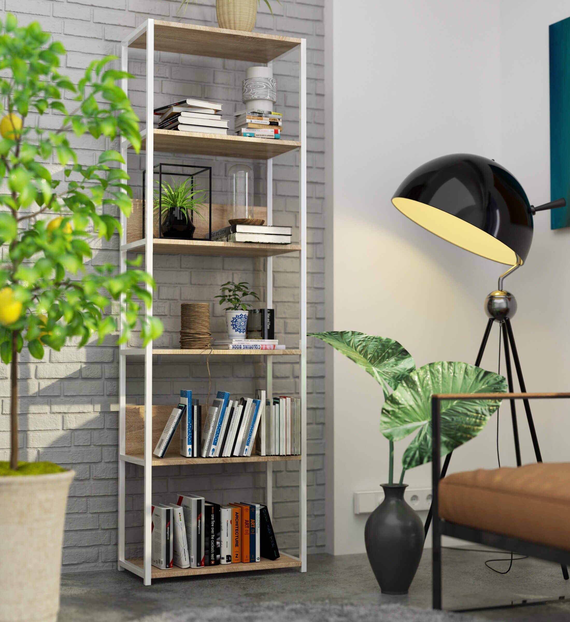 - NOWOCZESNY DESIGN: Regał Loft 60 cm Akord wyróżnia się minimalistycznym designem. Posiada 6 półek wspartych na metalowej ramie, co sprawia, że idealnie pasuje do nowoczesnych i industrialnych wnętrz.