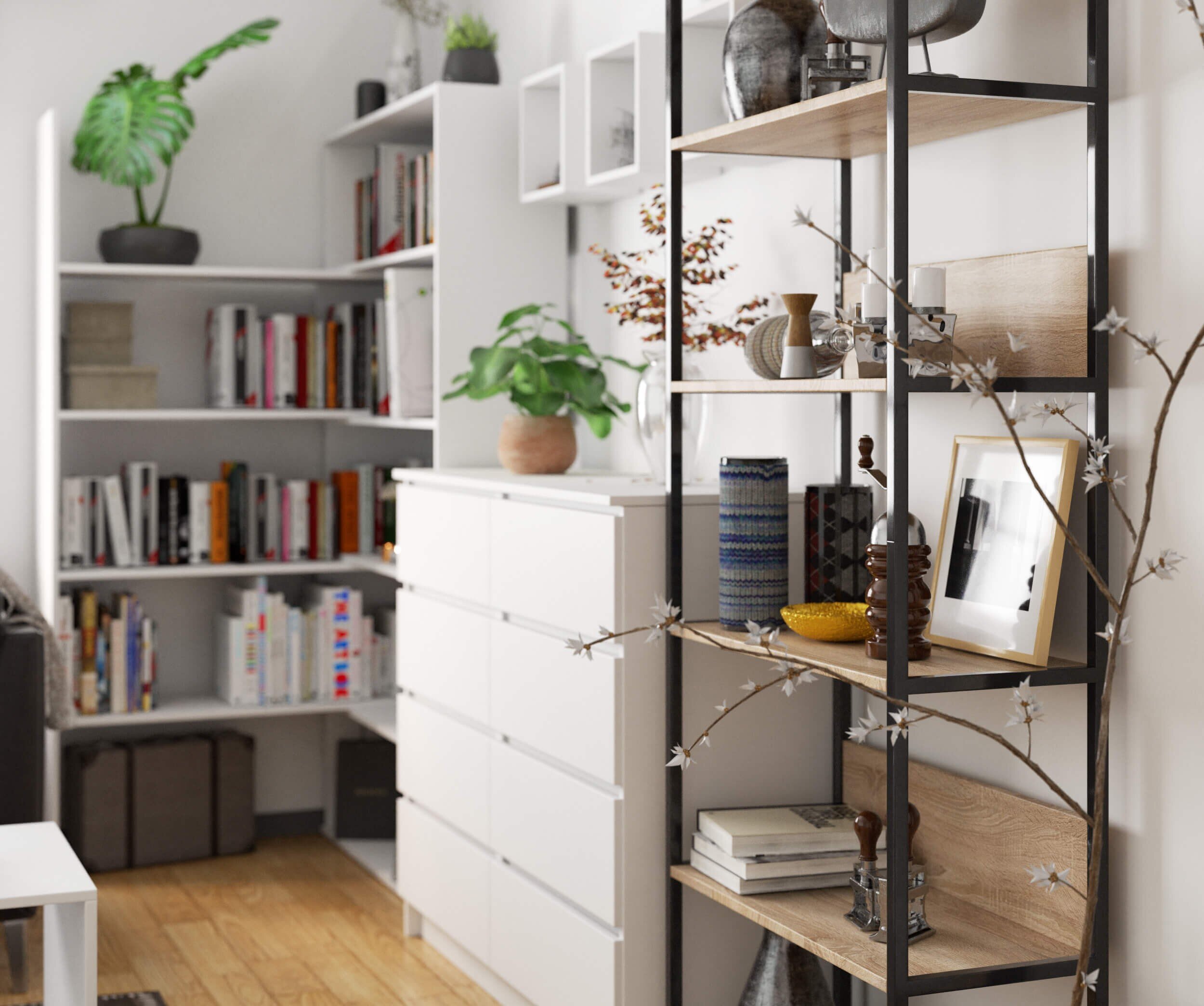 - WYTRZYMAŁOŚĆ: Półki regału Loft Akord wykonane są z wysokiej jakości laminowanej płyty z krawędziami zabezpieczonymi obrzeżem ABS. Połączenie z metalową ramą sprawia, że mebel jest odporny na uszkodzenia i wyróżnia się stabilnością.