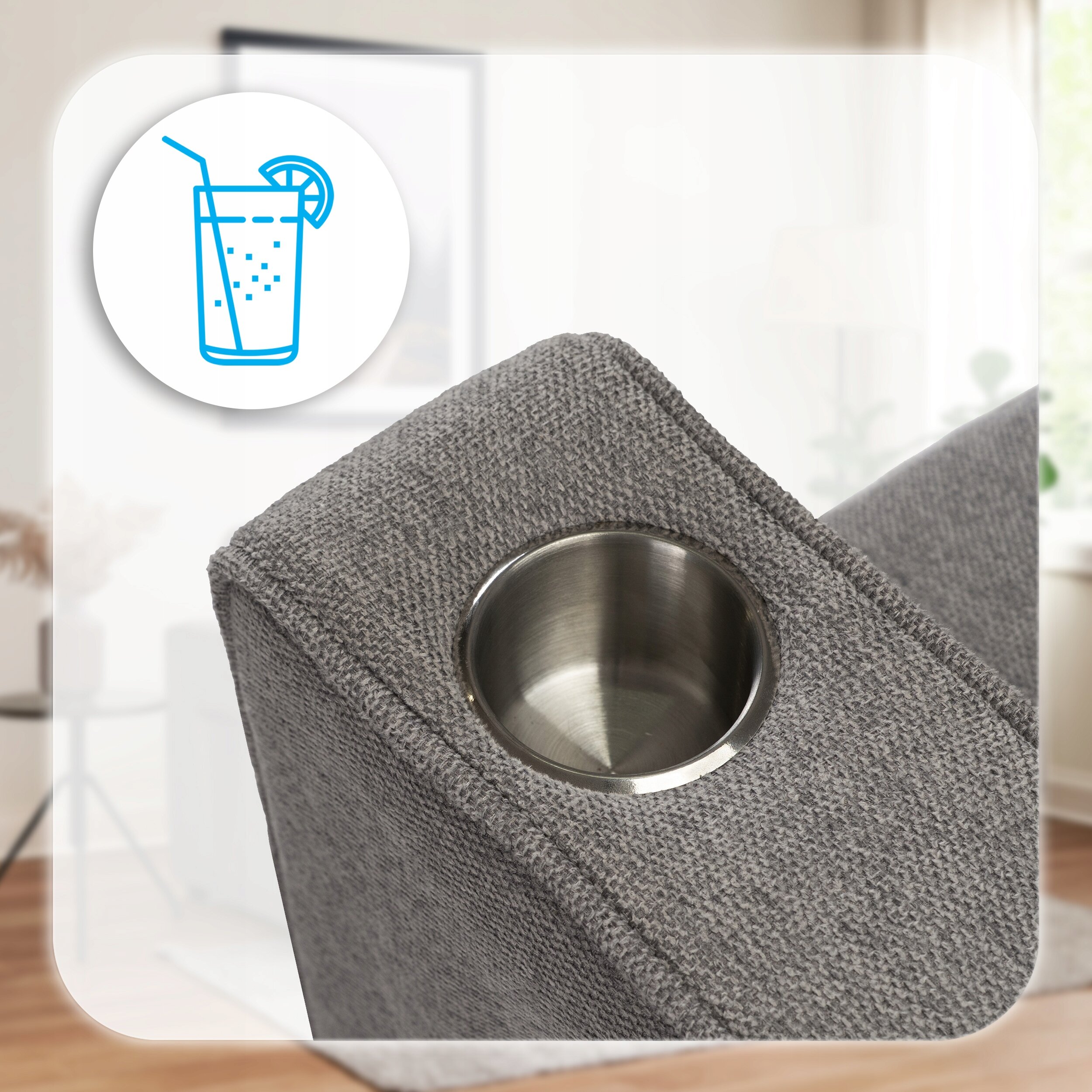 Fotel rozkładany ASTER wyposażony został w dwa praktyczne uchwyty na napoje, umieszczone w podłokietnikach. To rozwiązanie, które znacząco podnosi komfort codziennego użytkowania – możesz mieć zawsze pod ręką filiżankę kawy, kubek herbaty czy ulubiony napój podczas seansu filmowego - bez konieczności sięgania po dodatkowy stolik.