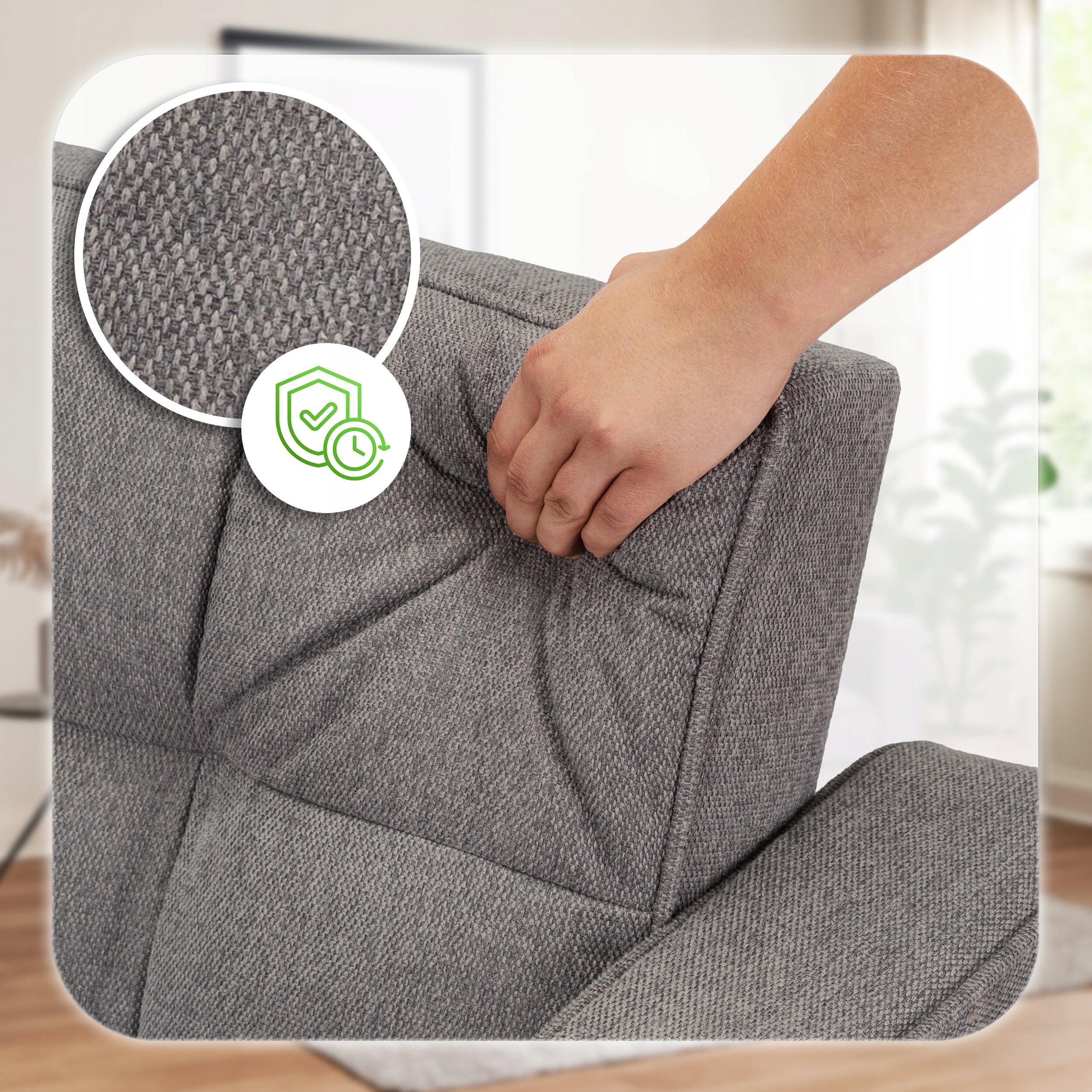 - Wytrzymała i odporna na ścieranie – doskonała do codziennego użytku, nawet przy intensywnym użytkowaniu fotela przez domowników, dzieci czy gości.