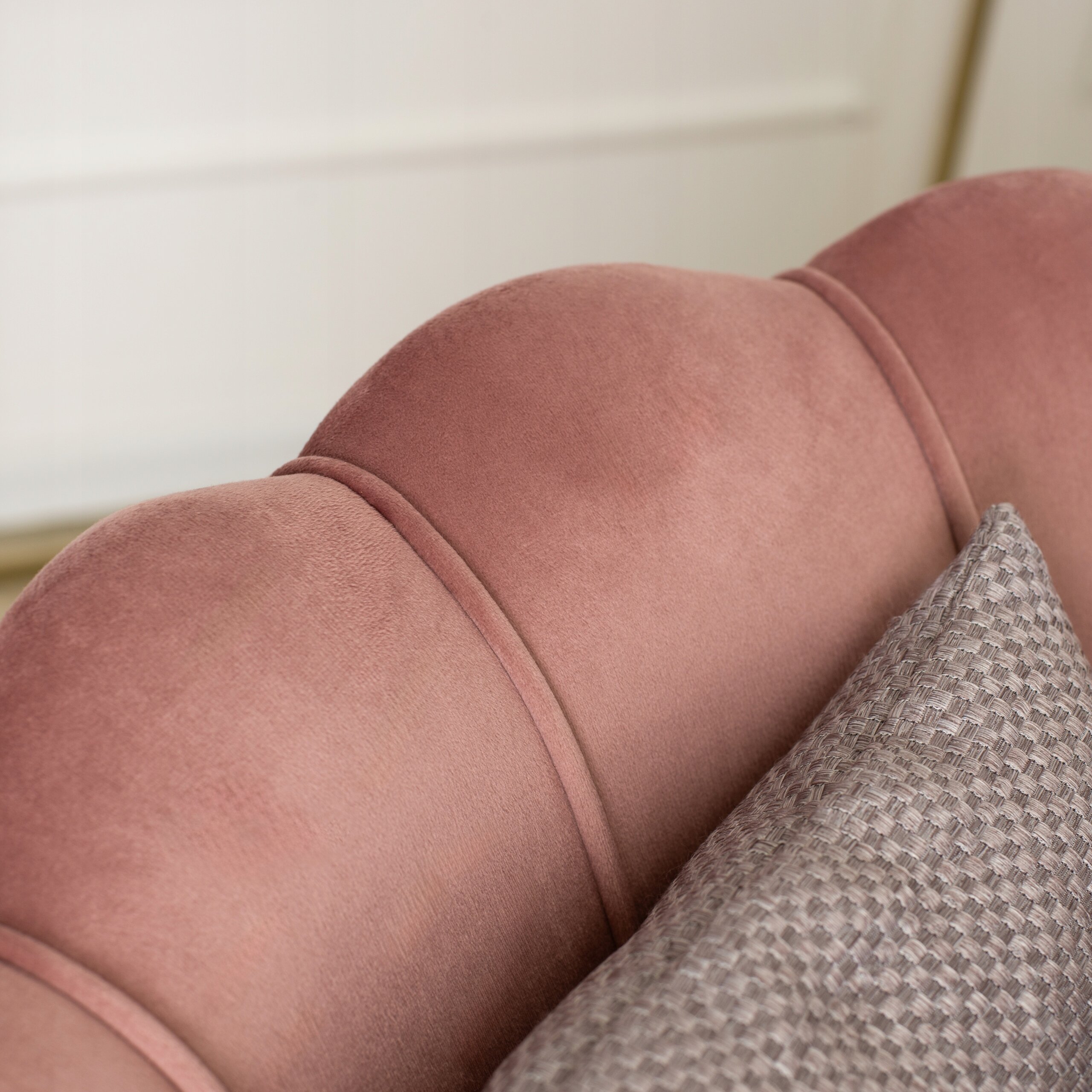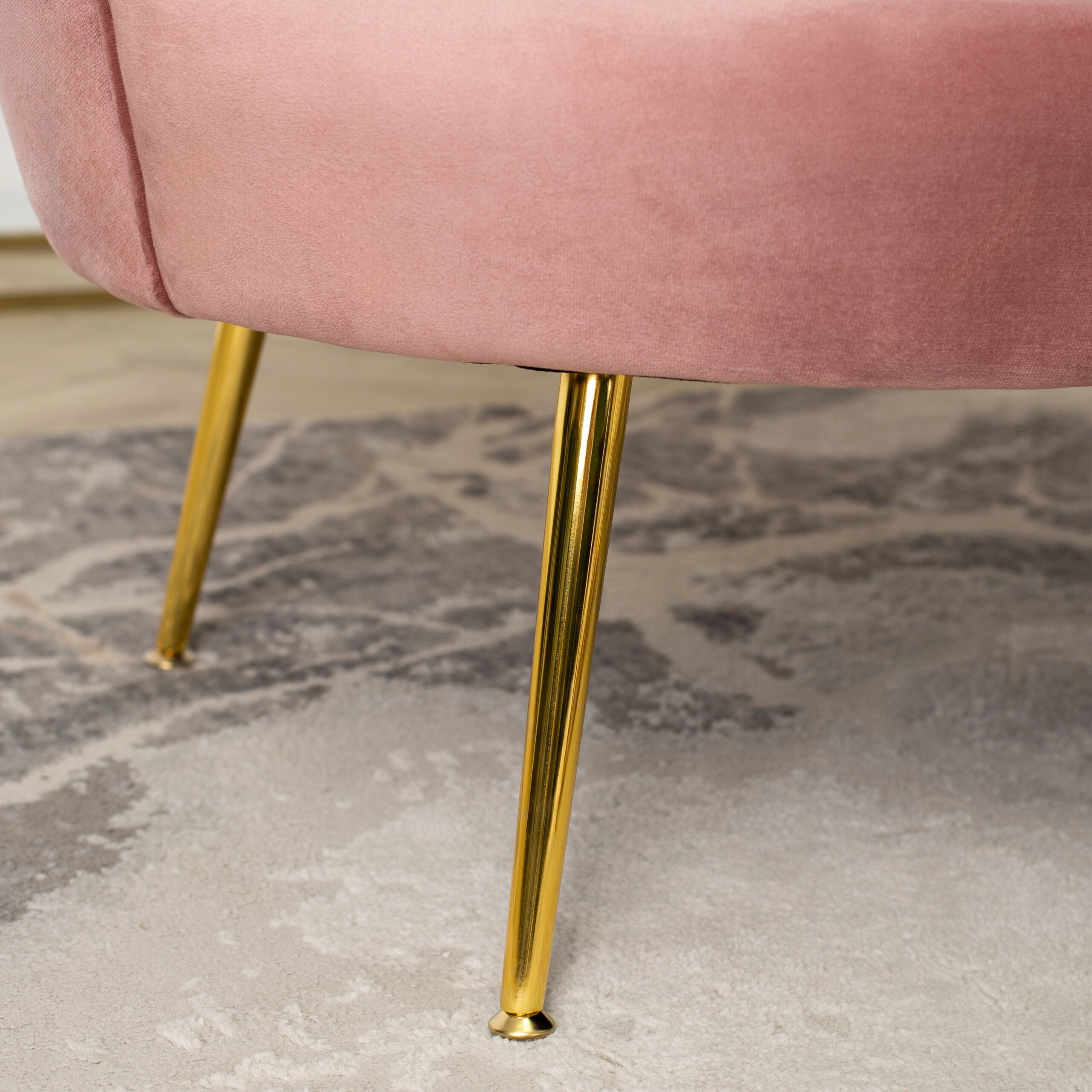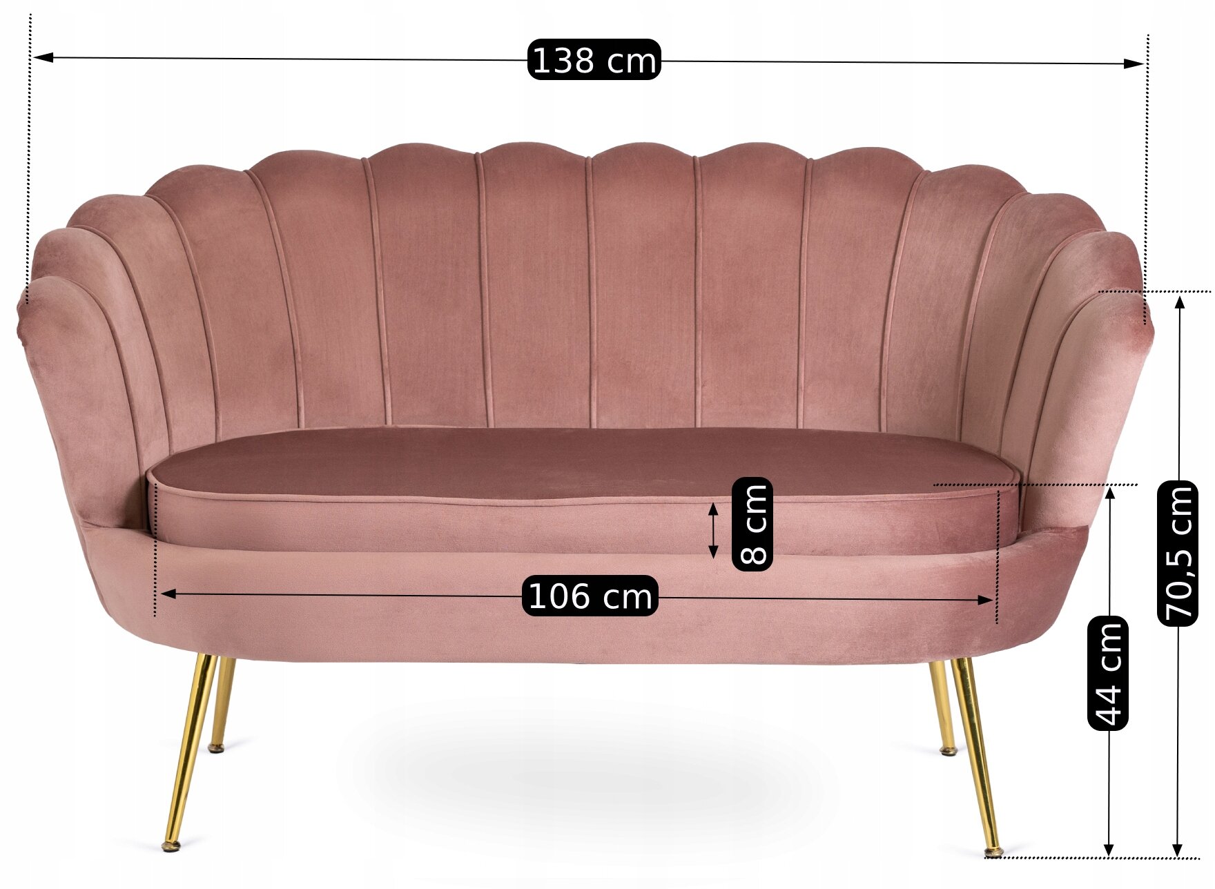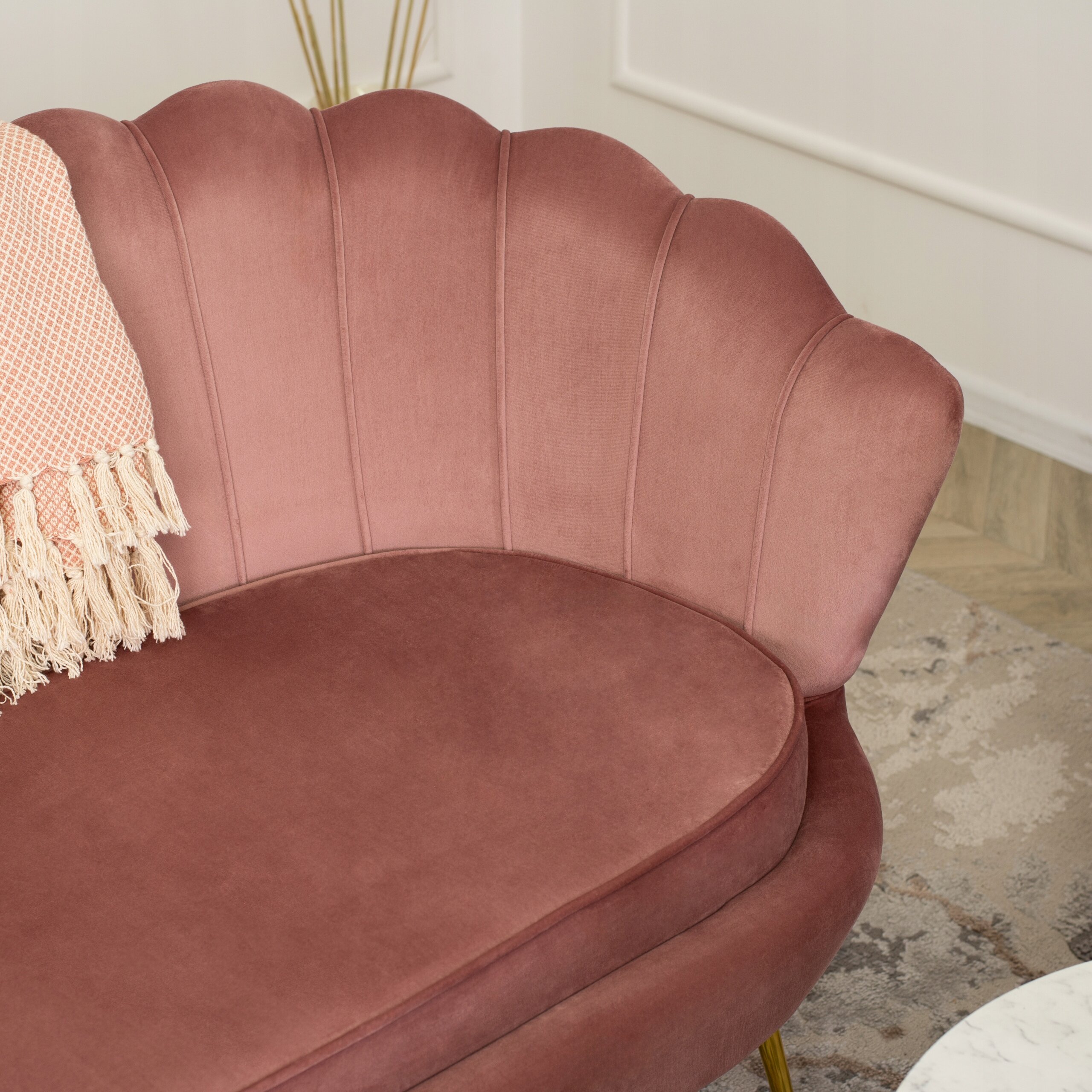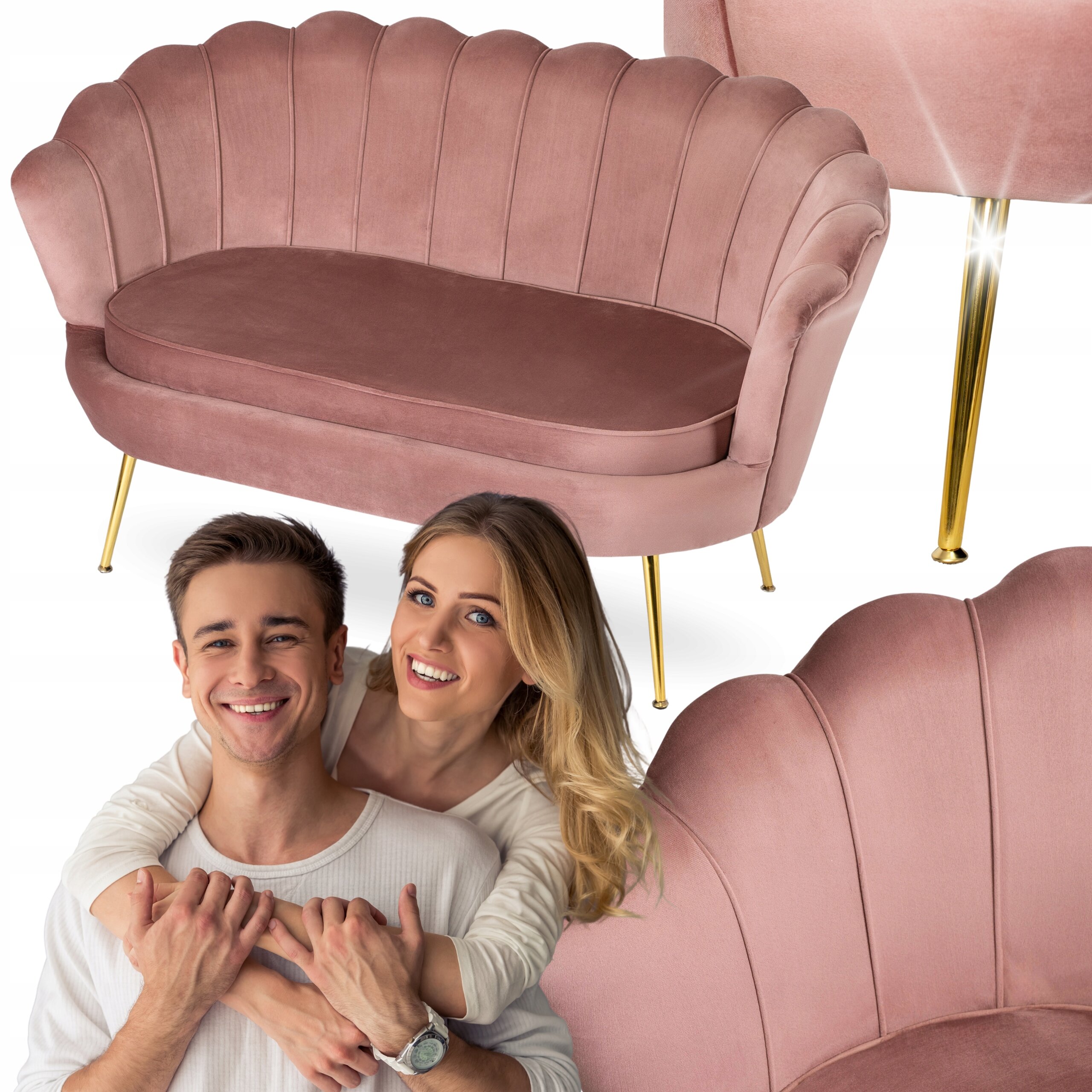 Fotel Wypoczynkowy Dwuosobowy ZENDAYA Sofa Muszelka Welur Róż Glamour Złoty ⭐⭐⭐⭐⭐