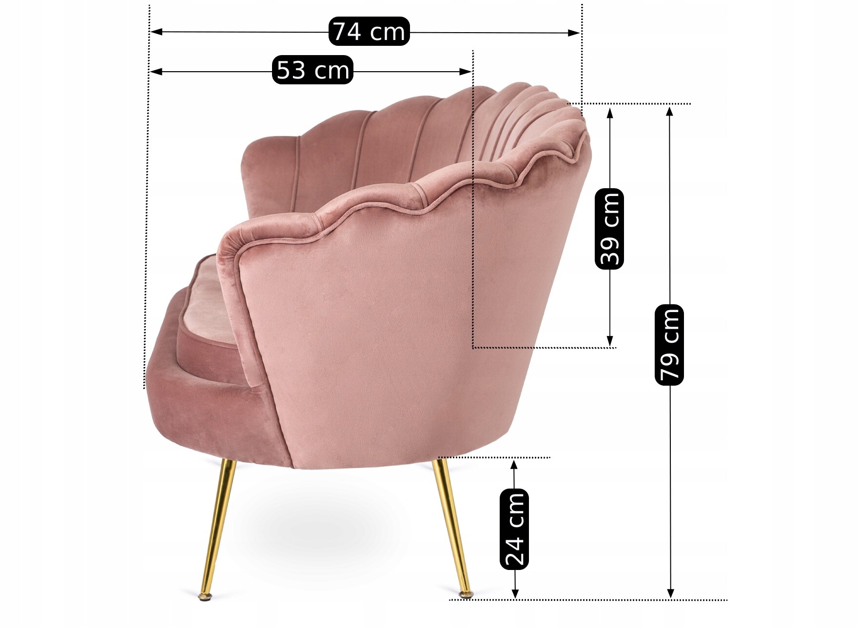 - Dwuosobowy fotel muszelka ZENDAYA kolor różowy - złoty