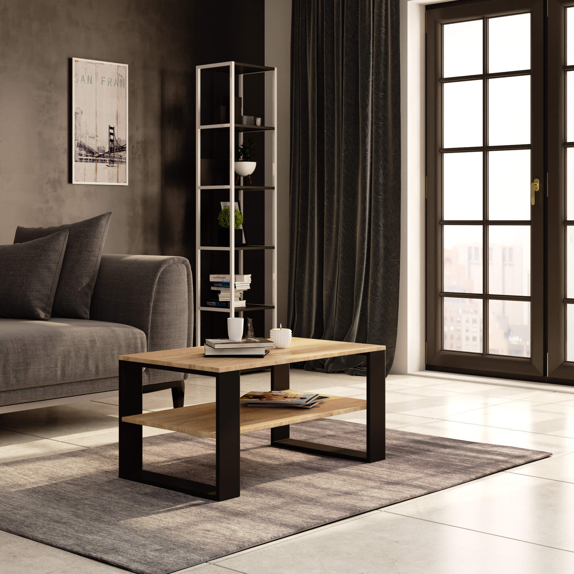 Stolik kawowy AKORD ALEX Dąb Sonoma 92 cm nogi kolor Czarny 92x53x45 cm