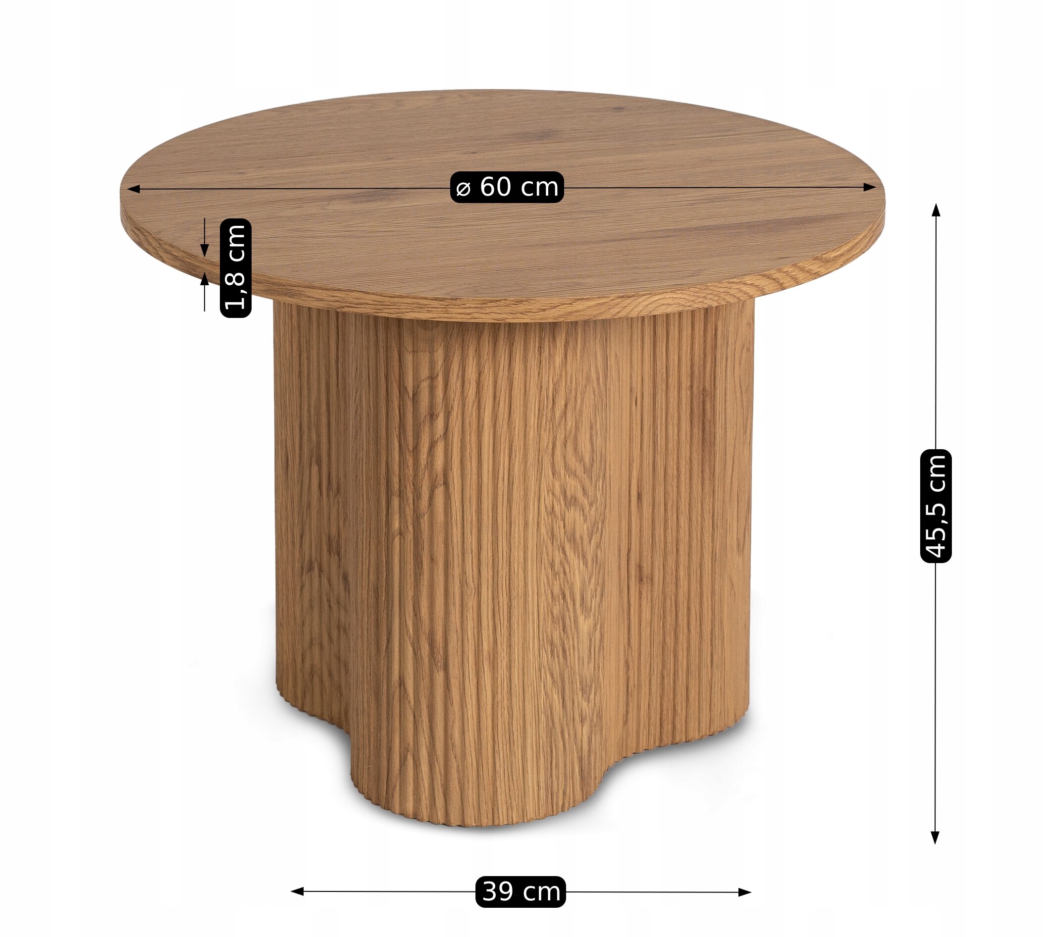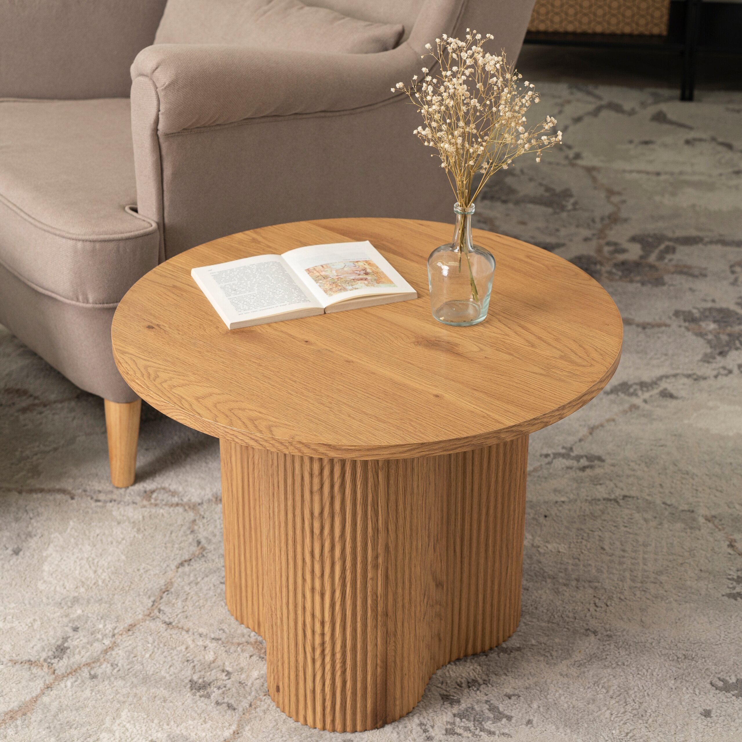 Stolik Kawowy Okrągły Mały Dąb Lamel Loft Nowoczesny Okrągła Ława ARION