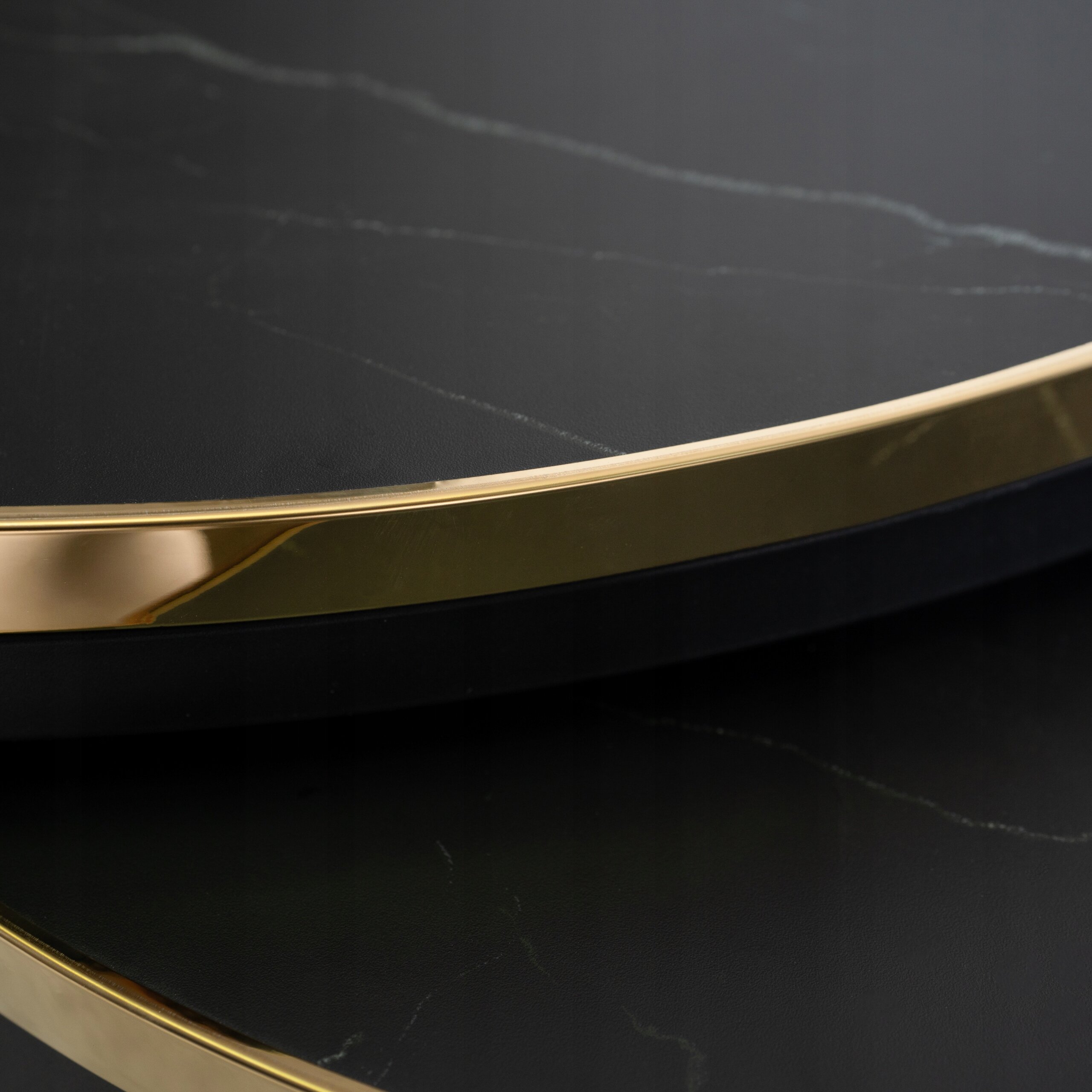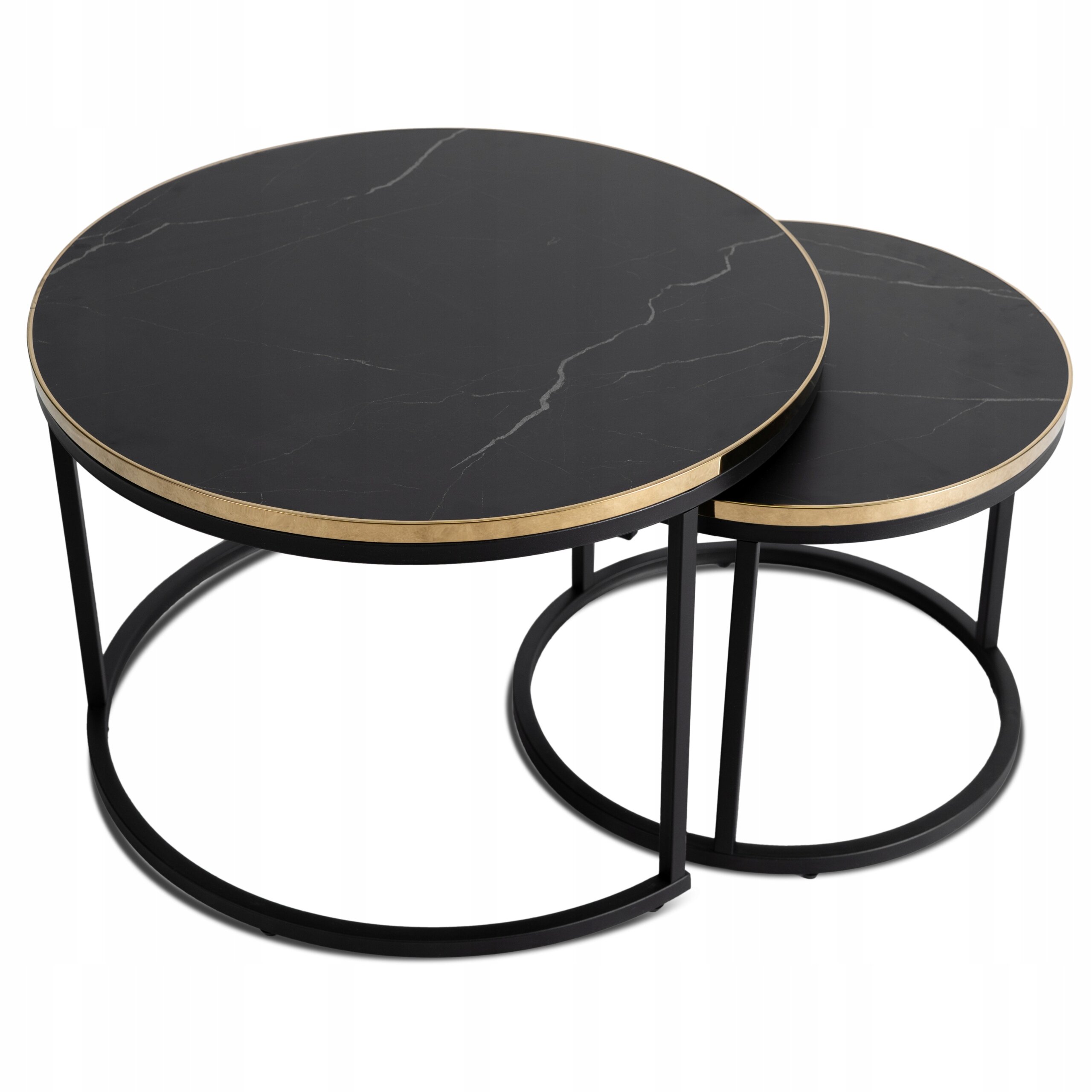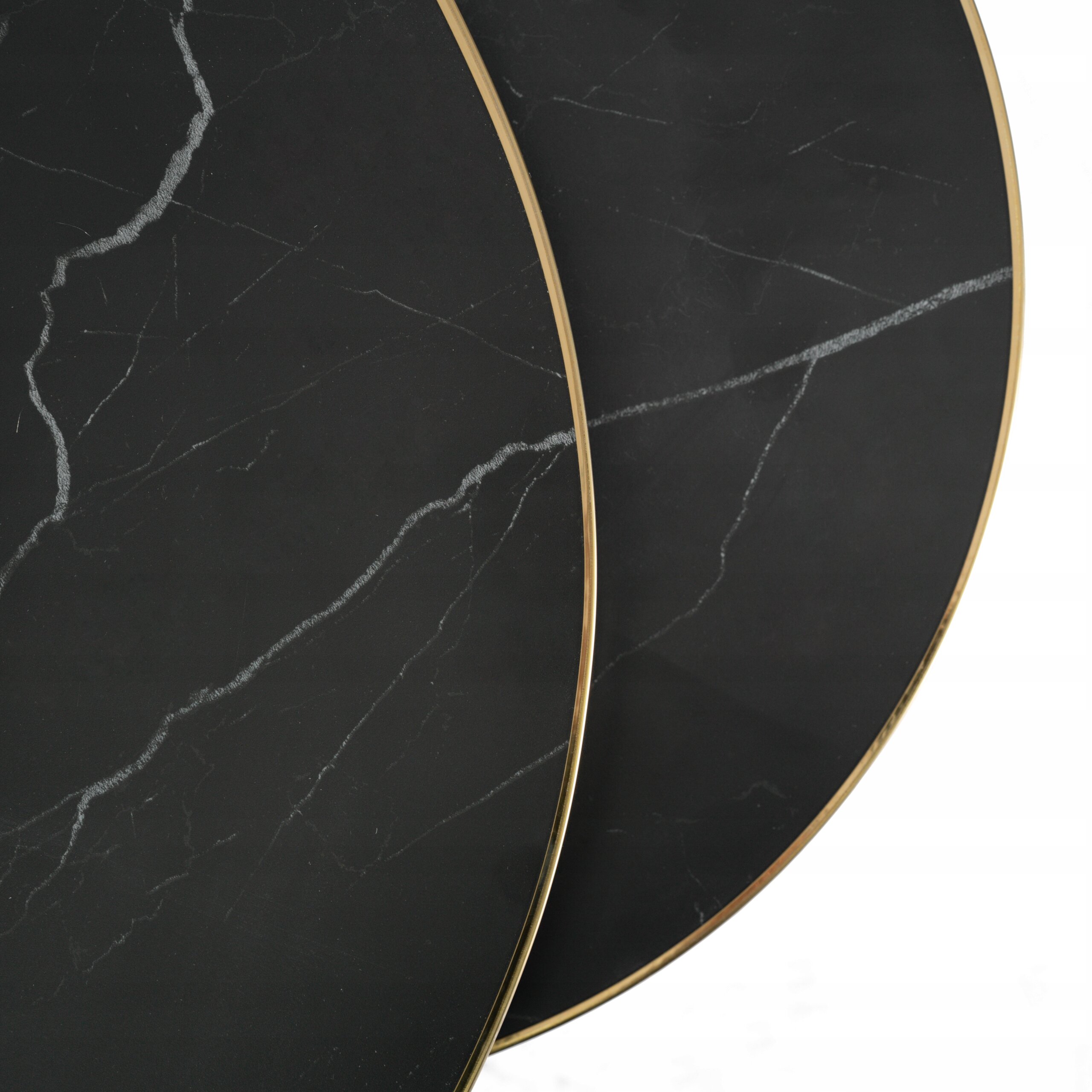 - Stolik Kawowy Okrągły Marmur Czarny Zestaw 2w1 Ława Glamour Złoty ARON