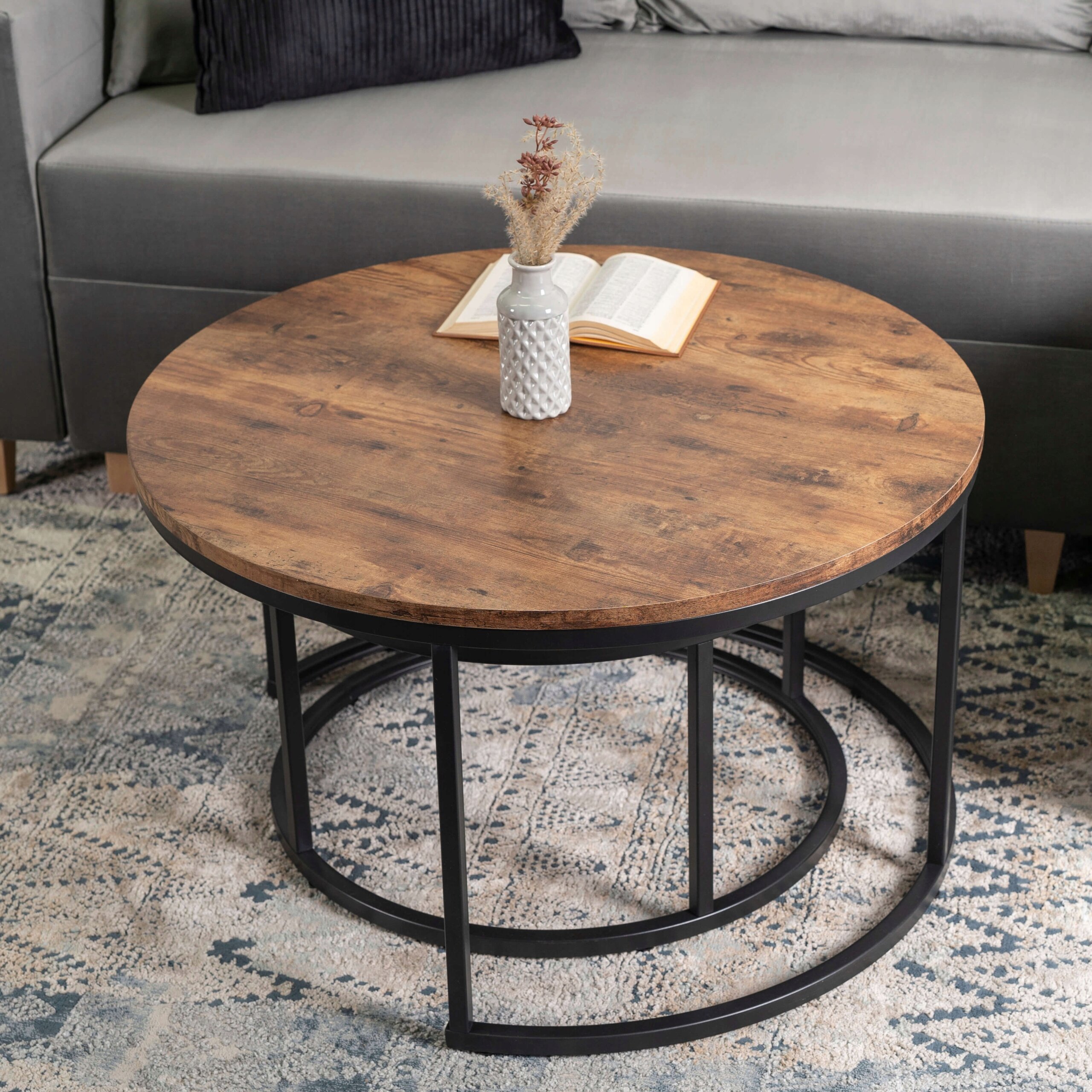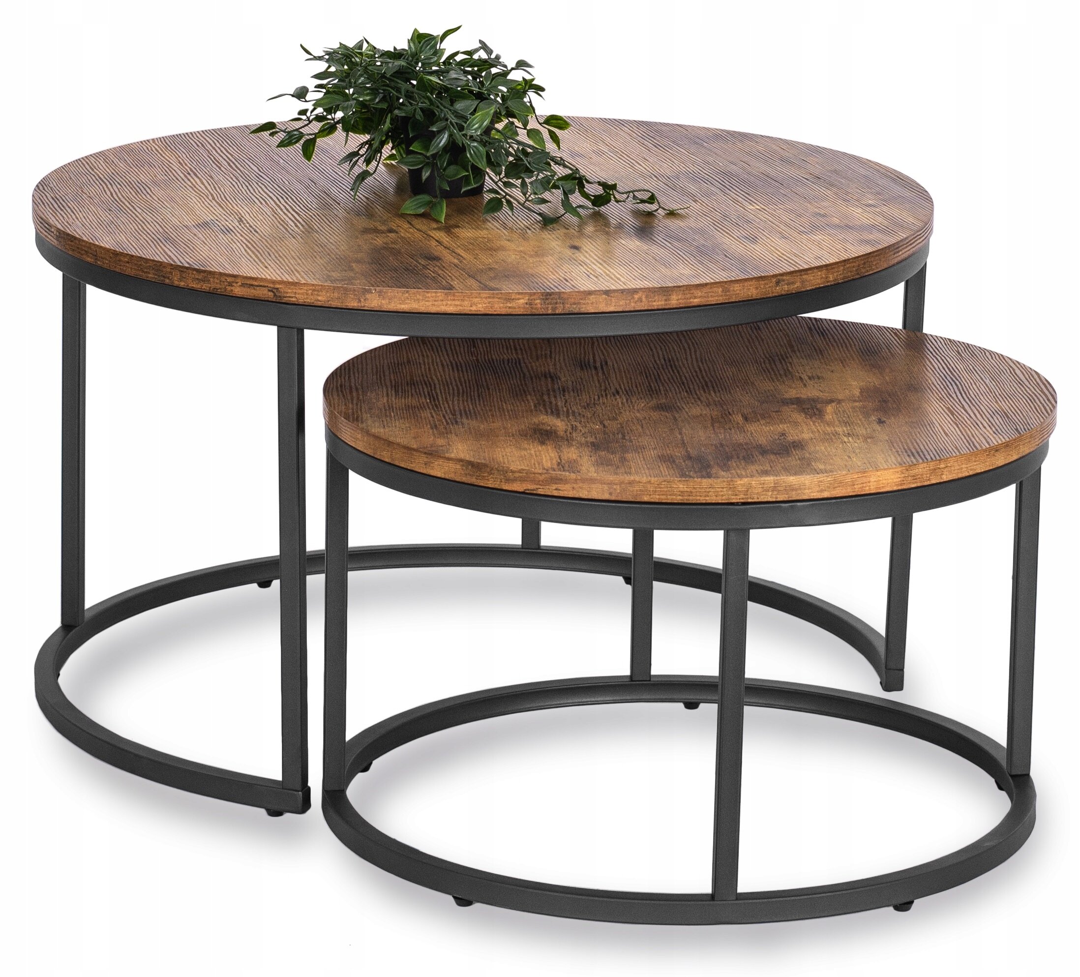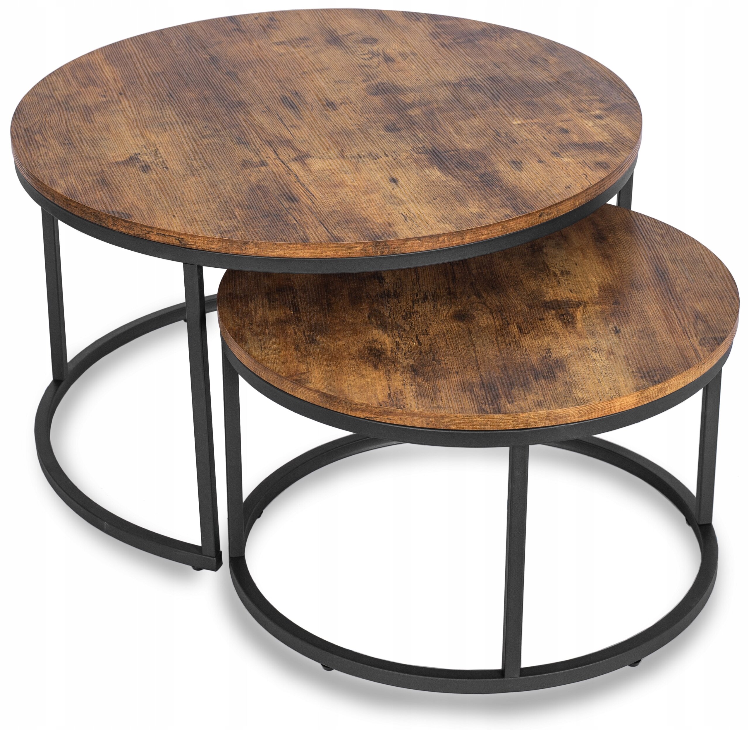 Zestaw Stolik Kawowy Okrągły 2w1 Ława Loft Dąb Rustykalny Czarny FIGO MAX ⭐⭐⭐⭐⭐