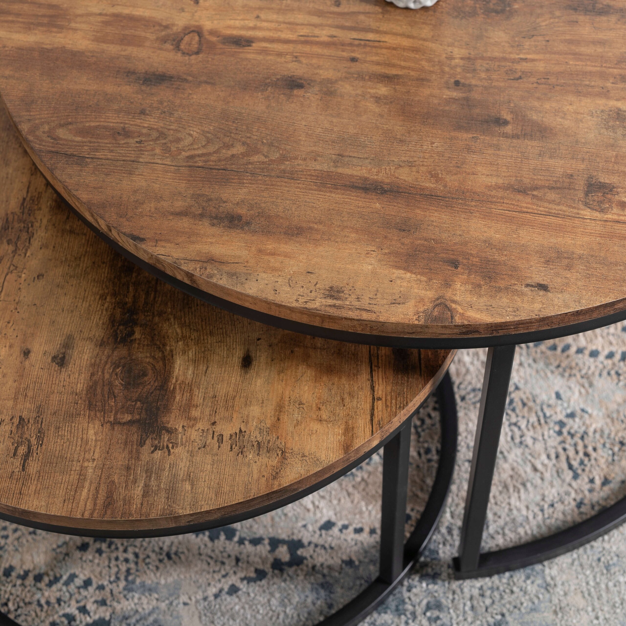 - Zestaw stolików kawowych 2w1 FIGO MAX w kolorze dębu rustykalnego z czarnym stelażem