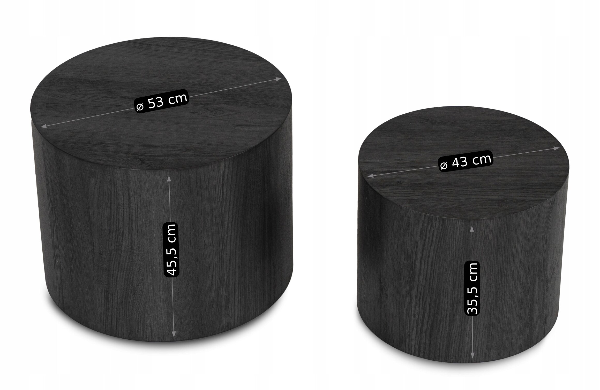 - Zestaw Stolik Kawowy Okrągły Loft Czarny Drewniany 2w1 Ława Czarna LEILA